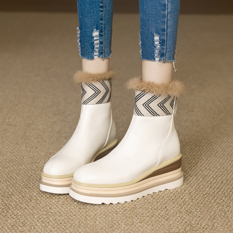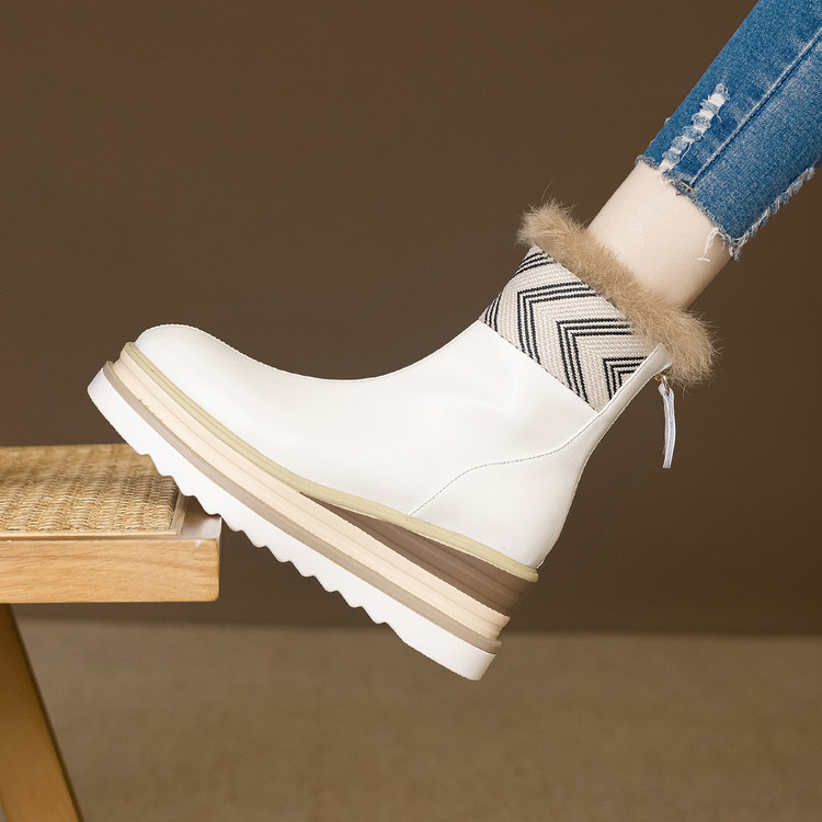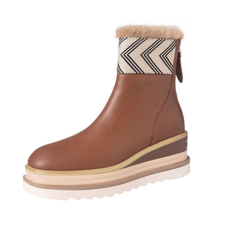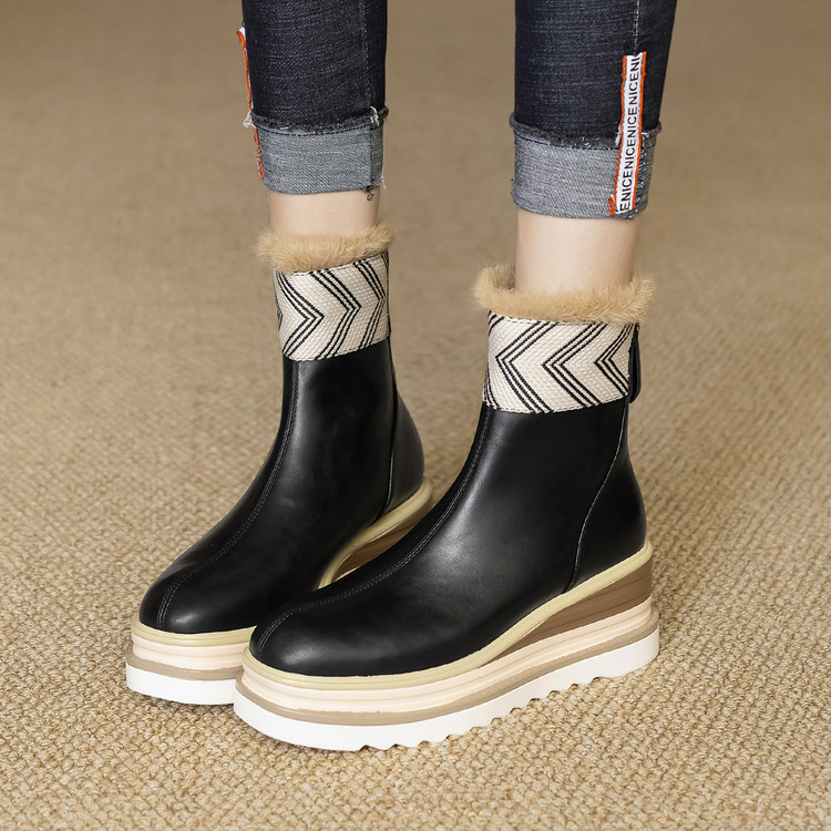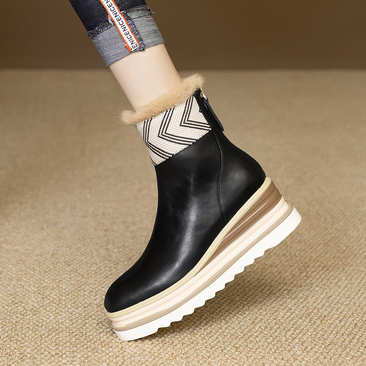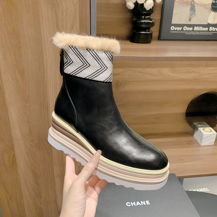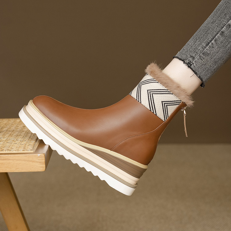 【预售5天】厚底马丁靴女坡跟高跟切尔西短靴秋冬真皮英伦加绒女靴ZMXY&ZM2567-1