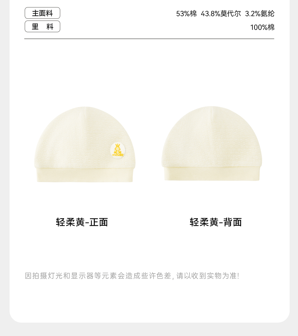 【商场同款】英氏婴儿帽子莫代尔无骨婴儿胎帽男宝女宝新款