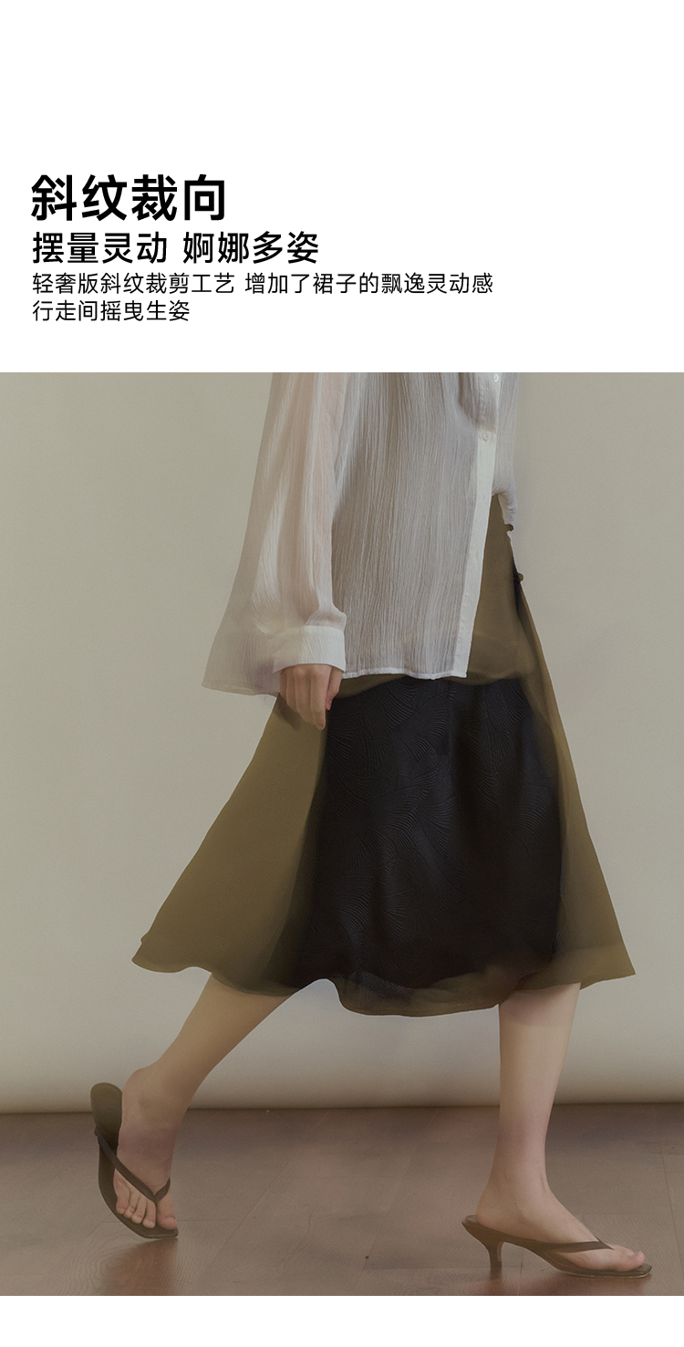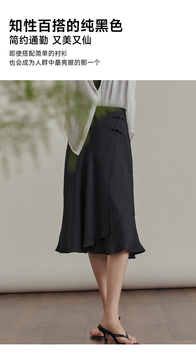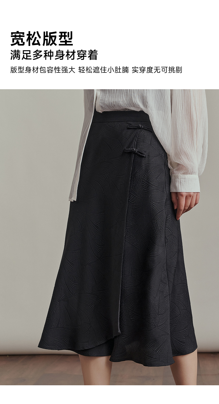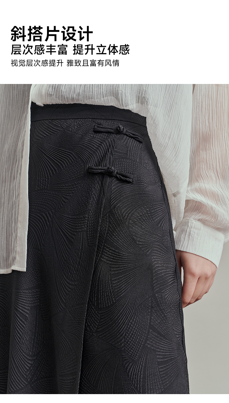 几何双绉斜纹裁向新中式真丝半裙(两色)FB4263236