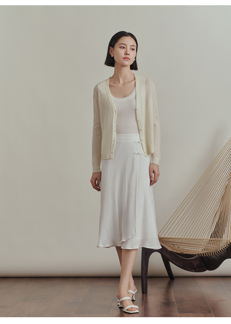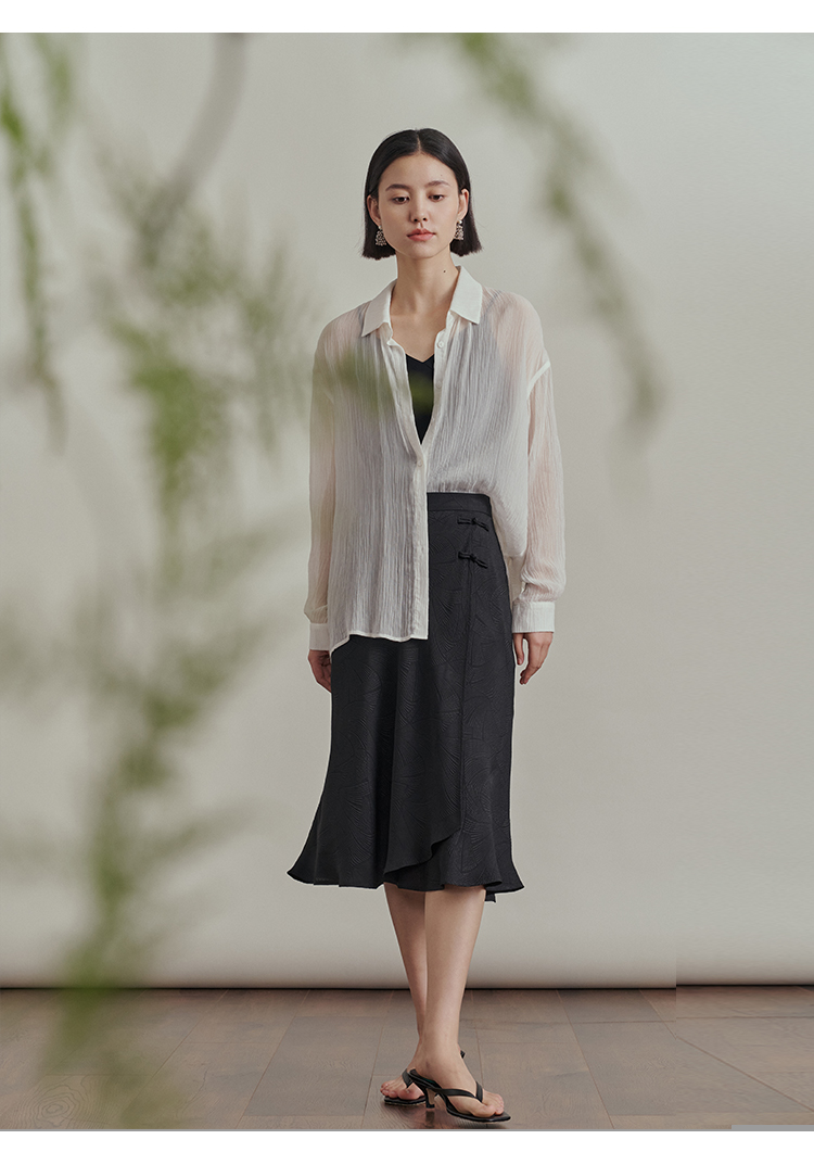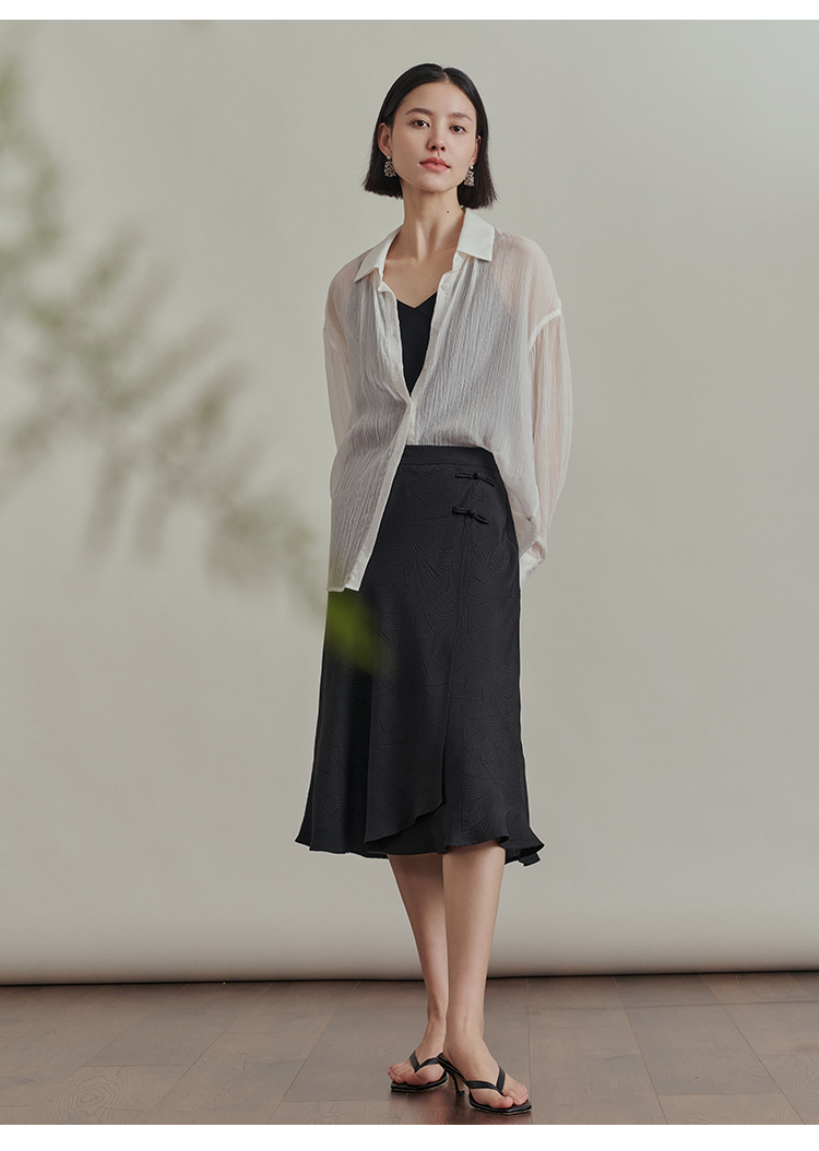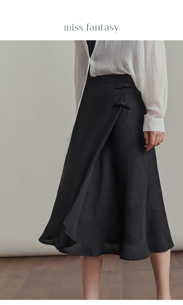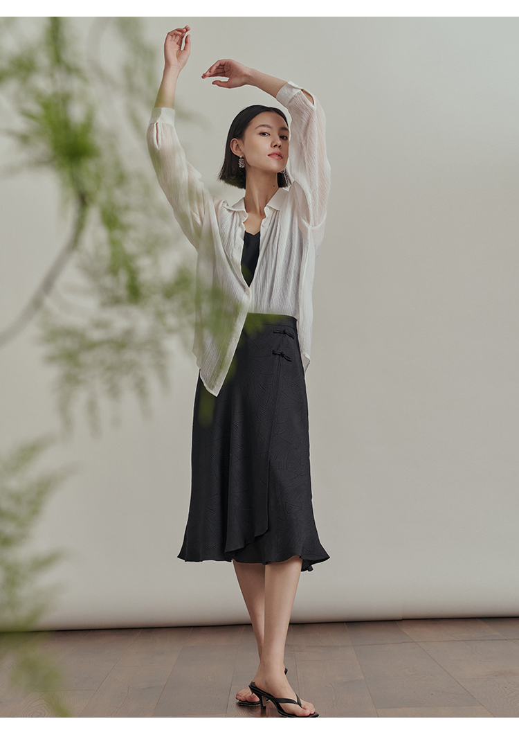 几何双绉斜纹裁向新中式真丝半裙(两色)FB4263236