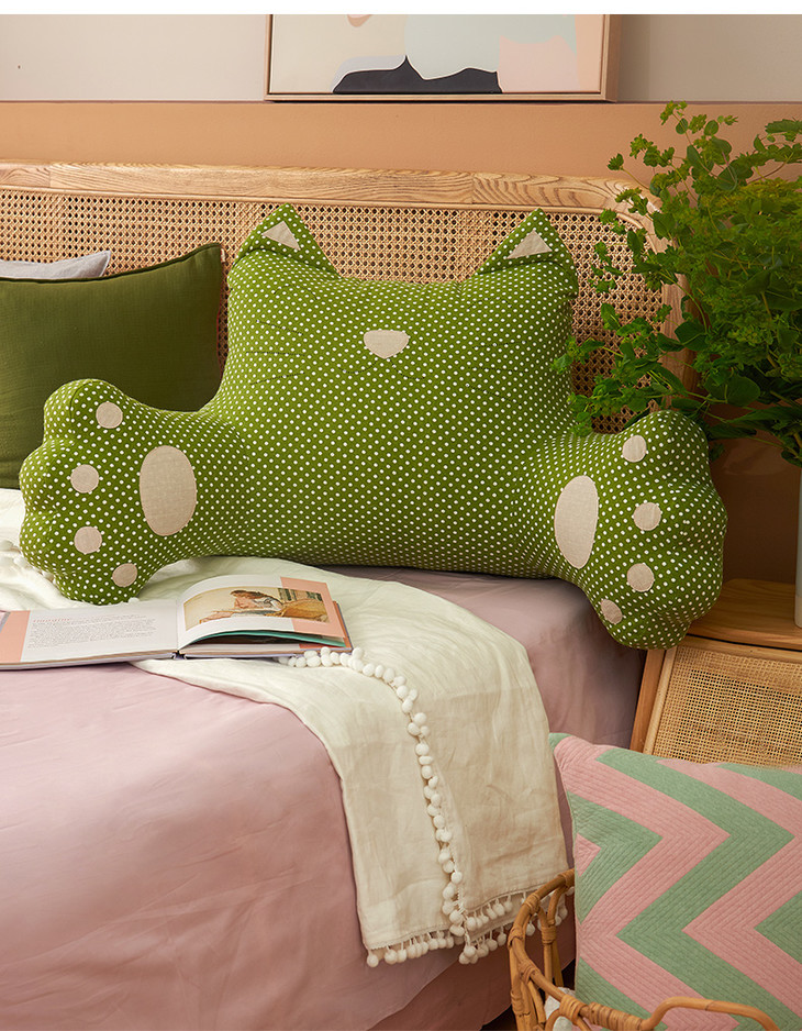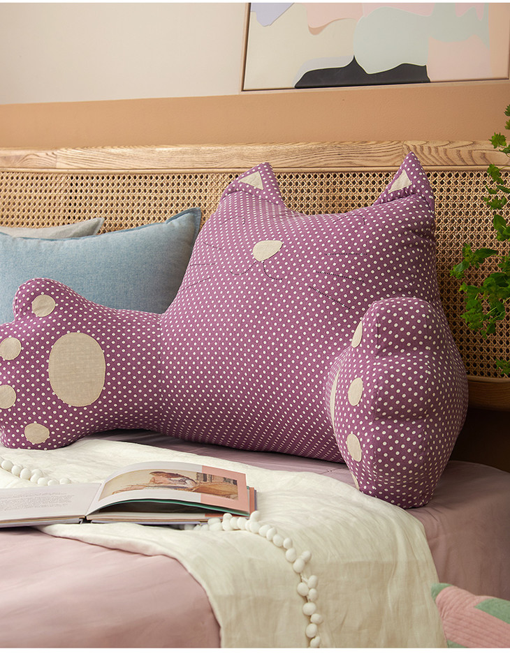 波点猫咪大靠背床头大靠垫榻榻米腰靠床上护腰枕宿舍卧室可爱儿童靠枕大号靠背垫
