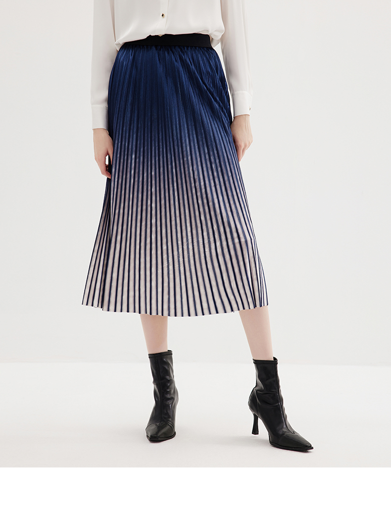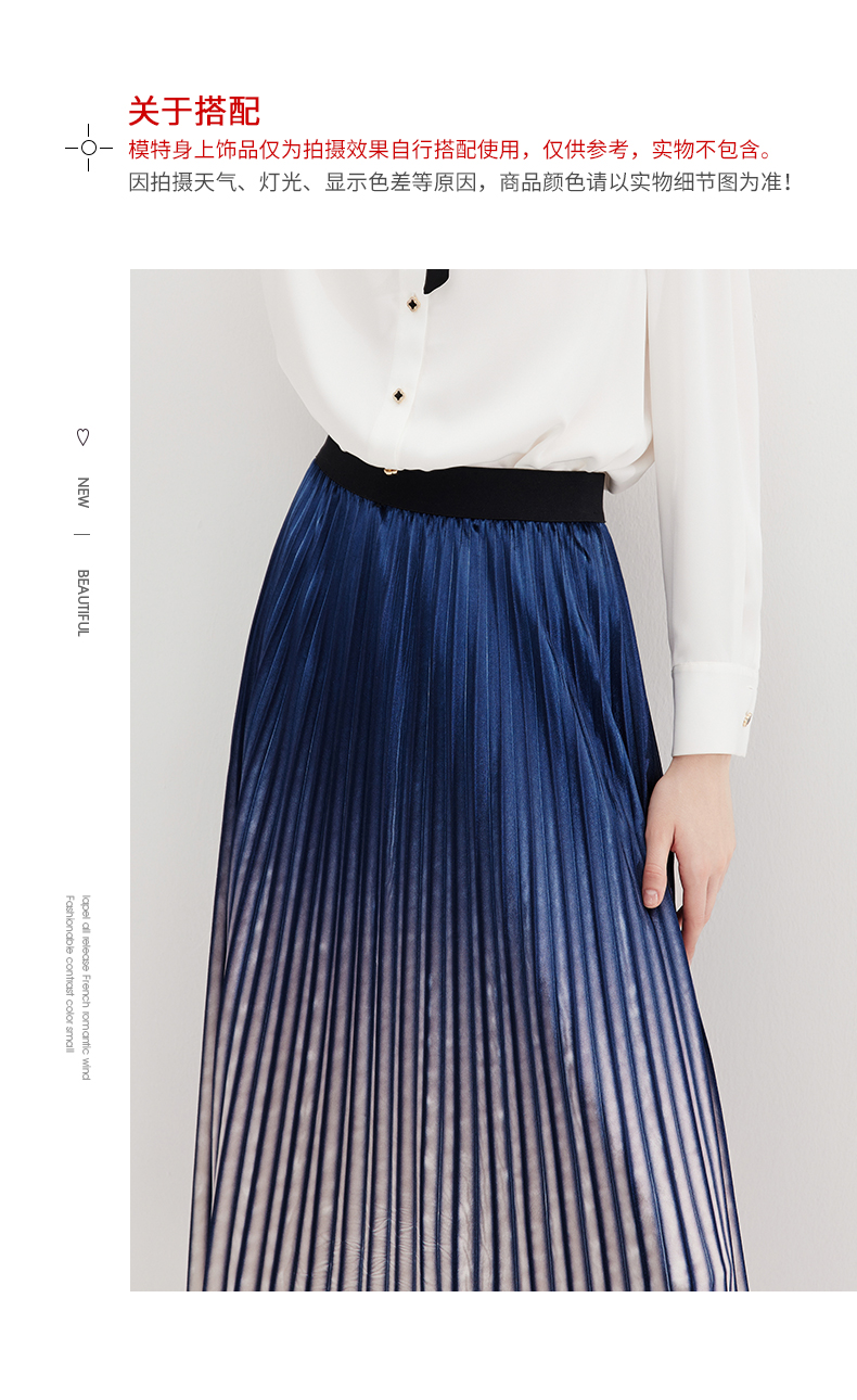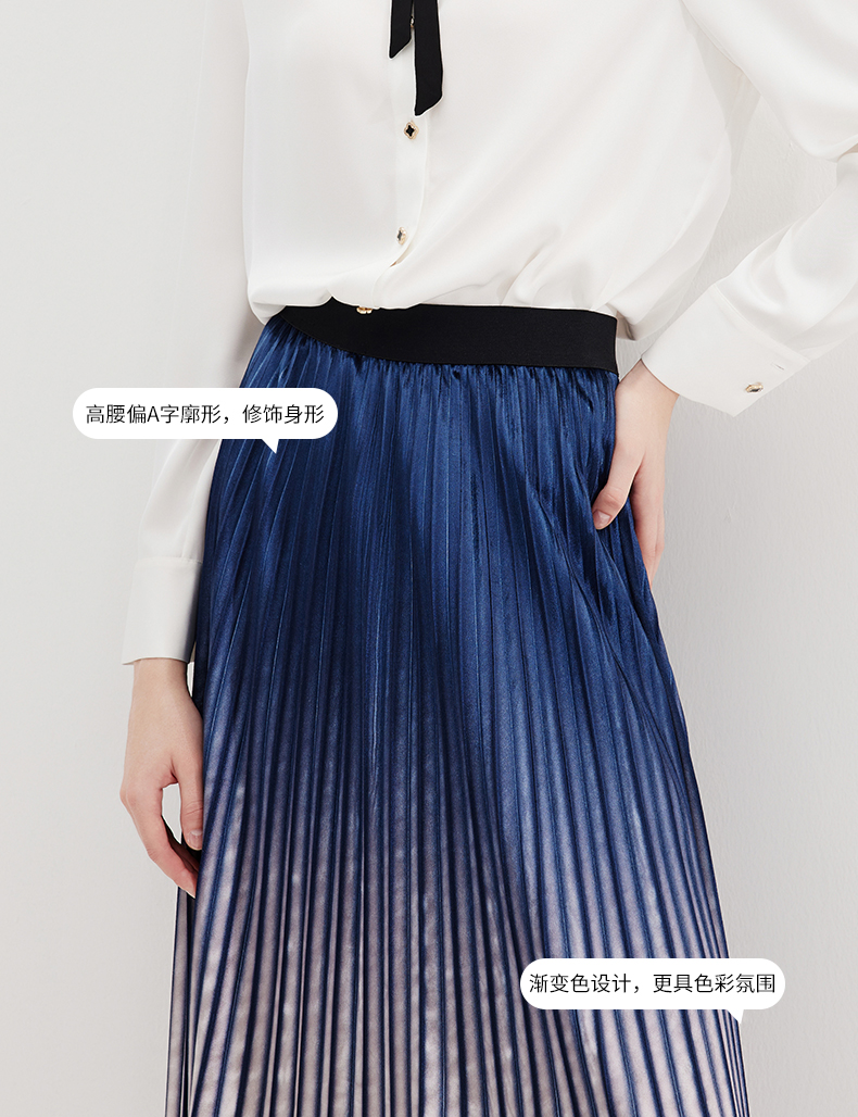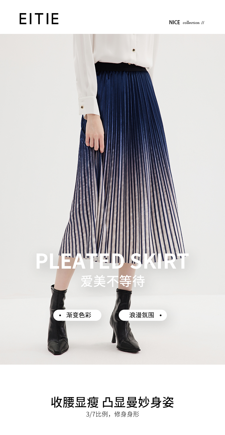 EITIE爱特爱秋季新款时尚撞色百褶A字垂感半身裙显瘦女C2306216