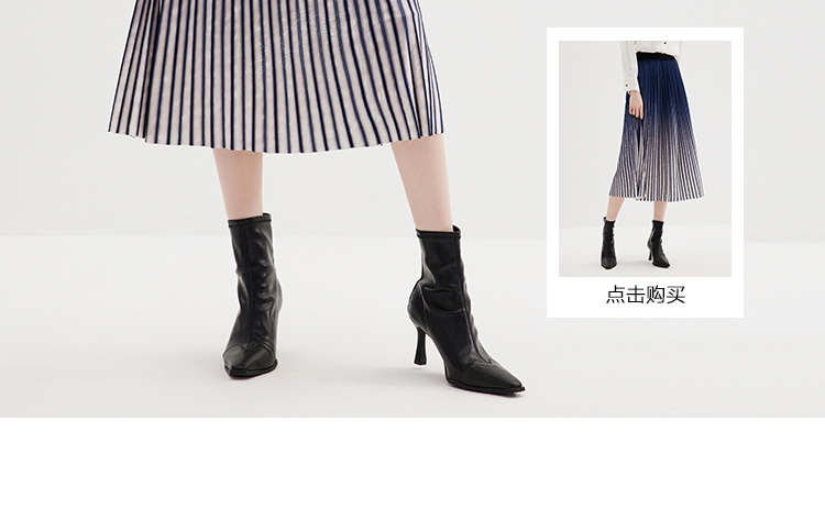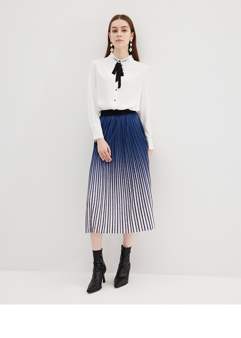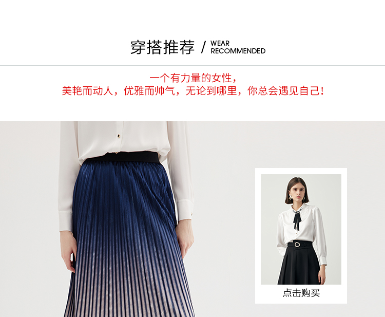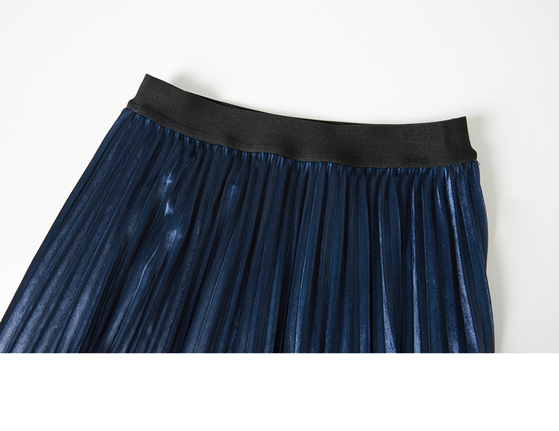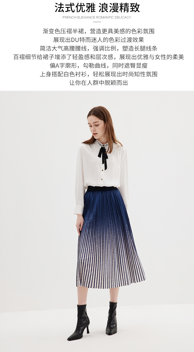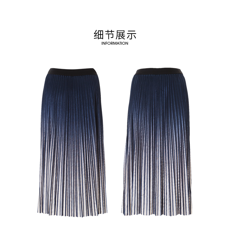 EITIE爱特爱秋季新款时尚撞色百褶A字垂感半身裙显瘦女C2306216