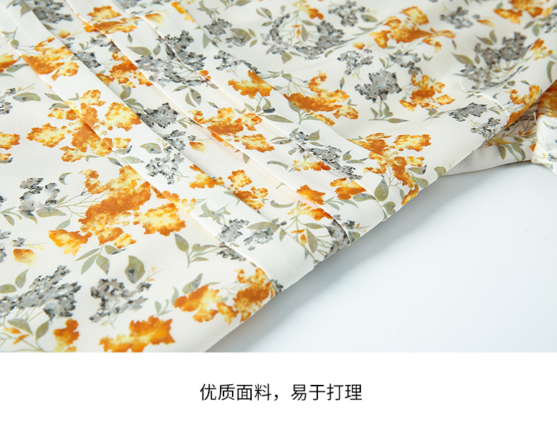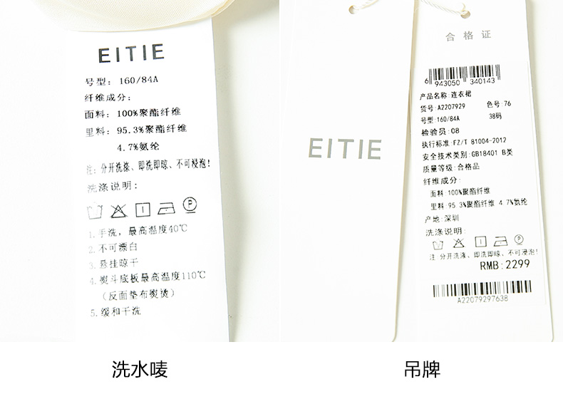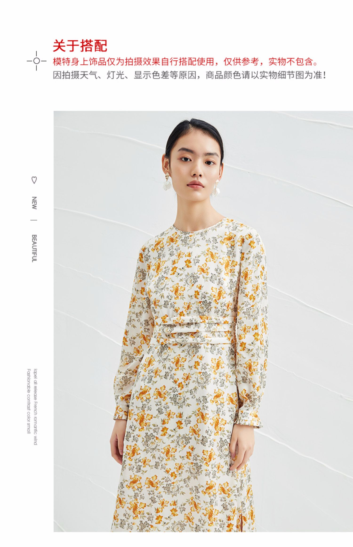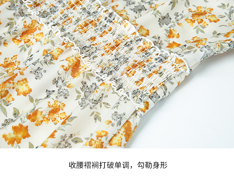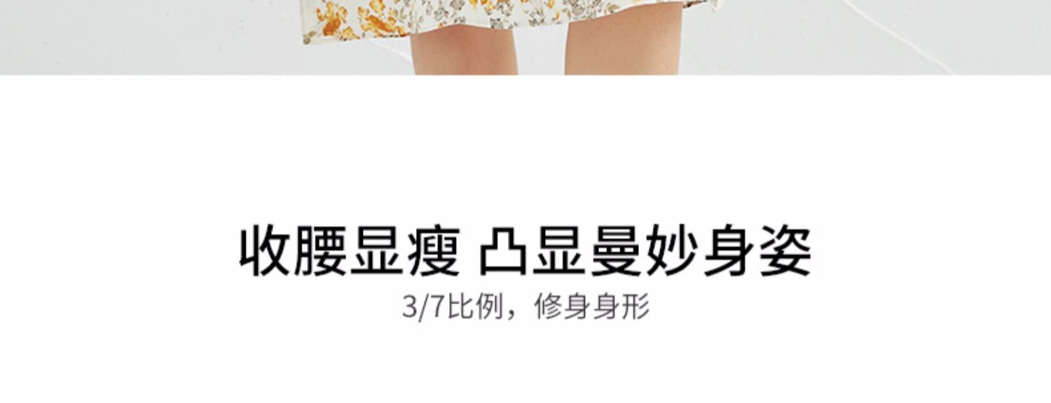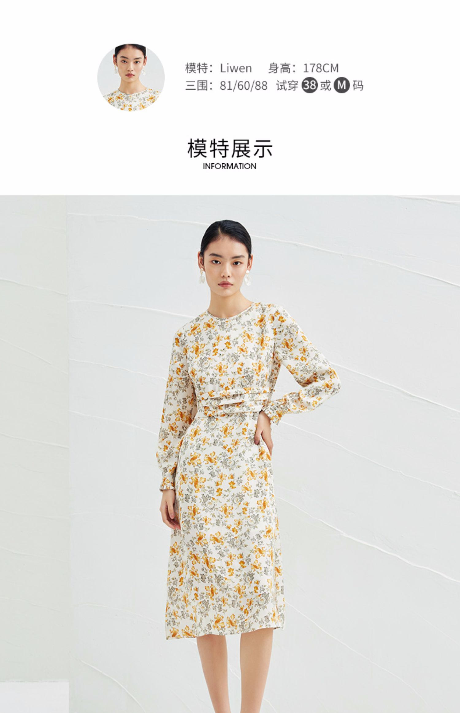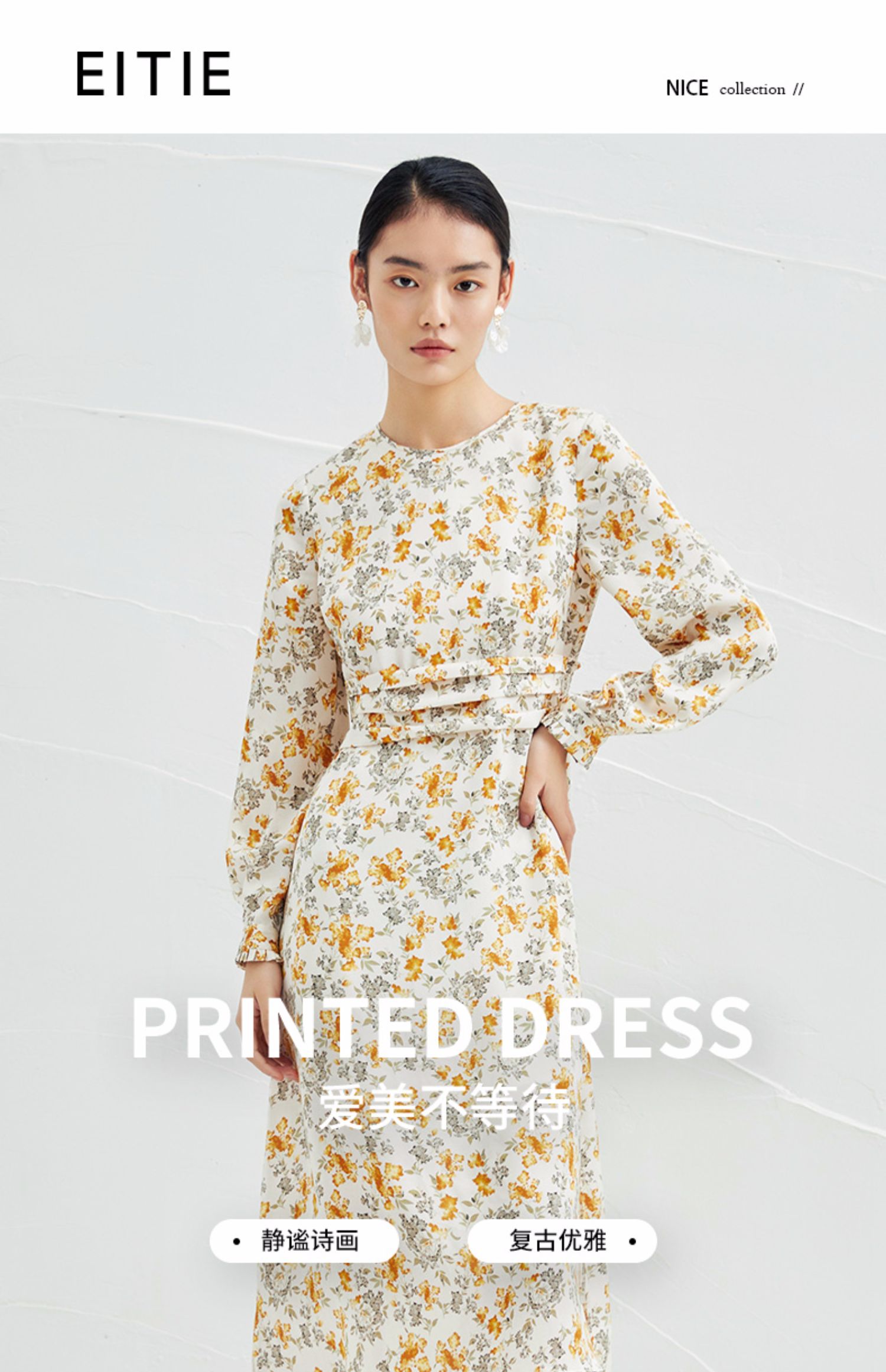 EITIE爱特爱春季新款圆领收腰a字碎花清新时尚长袖裙子连衣裙A2207929