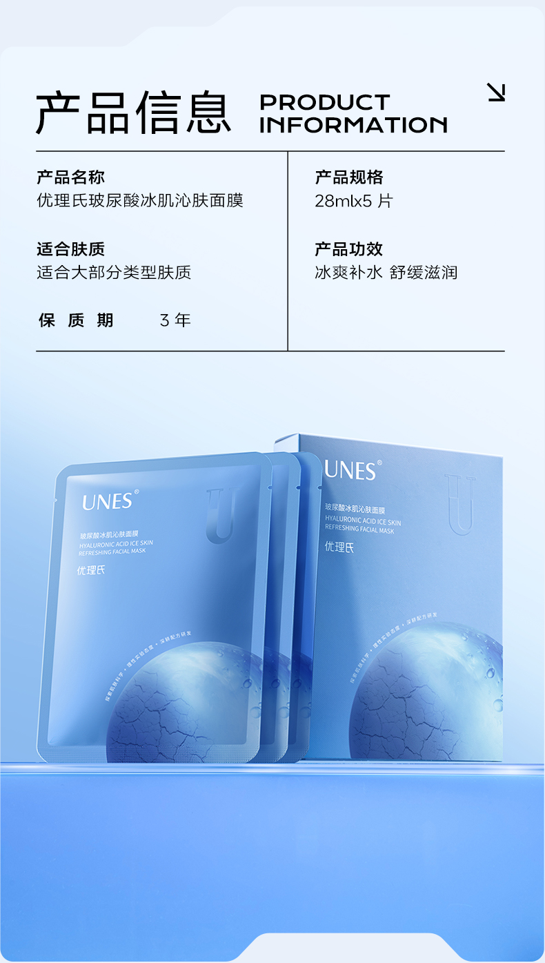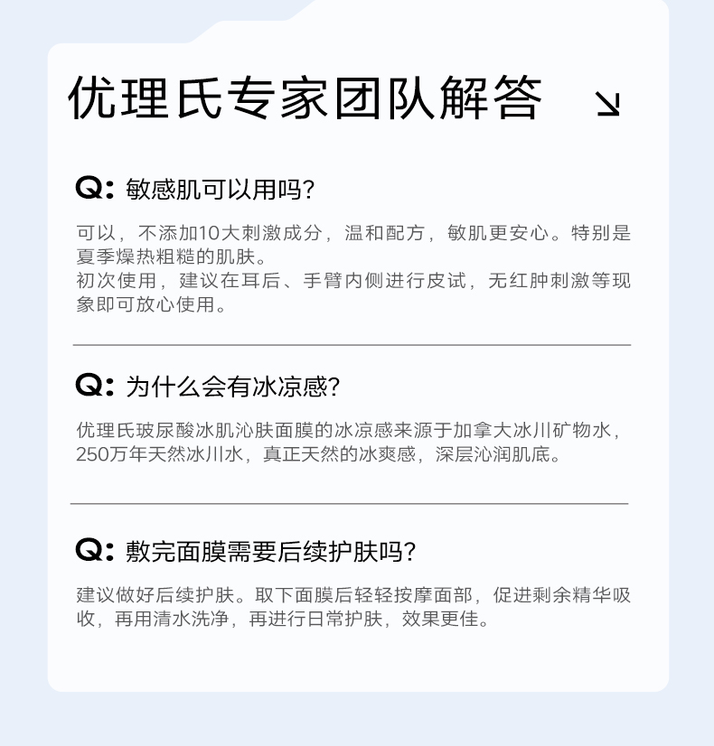 优理氏玻尿酸冰肌沁肤面膜 舒缓晒红晒伤缓解皮肤燥热晒后修护-FX