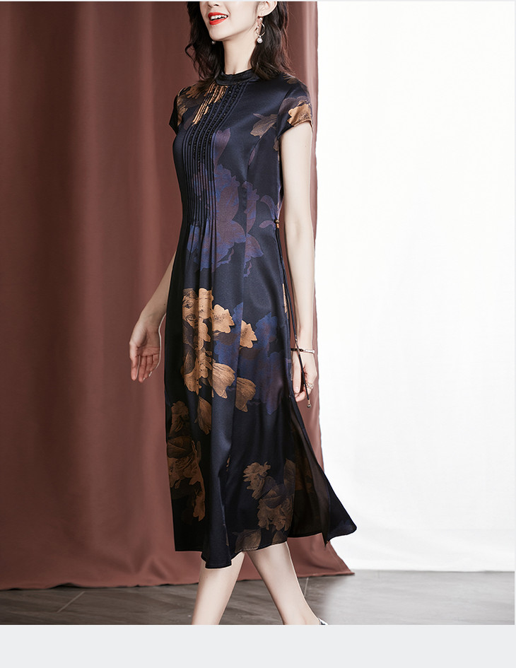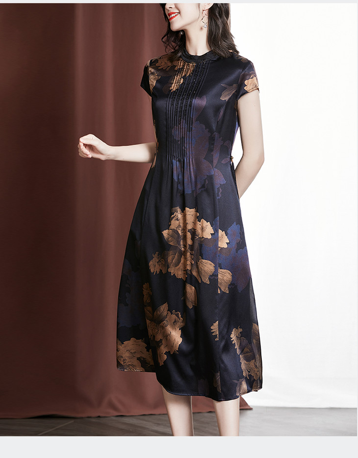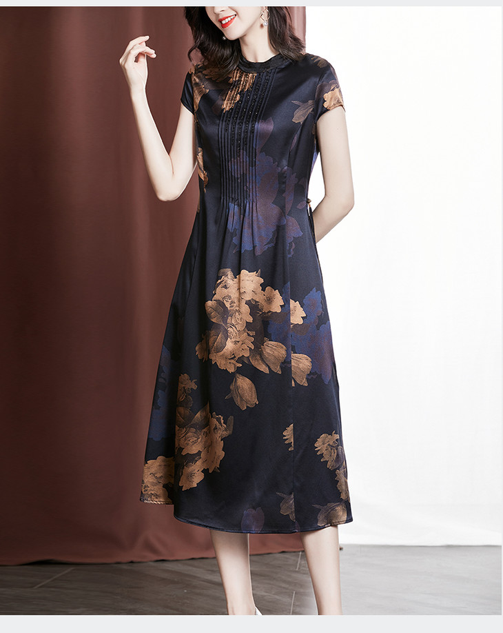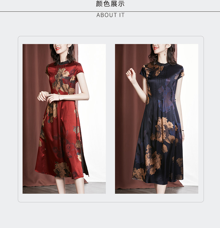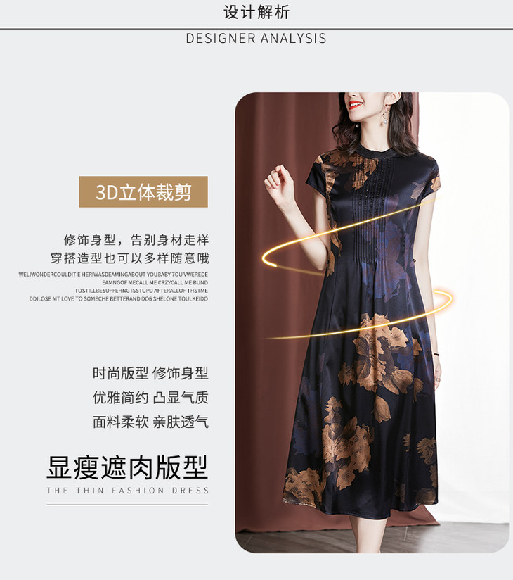 YU M530重磅钉珠显瘦桑蚕丝裙大码印花