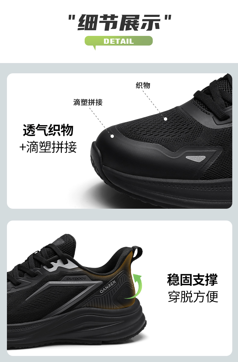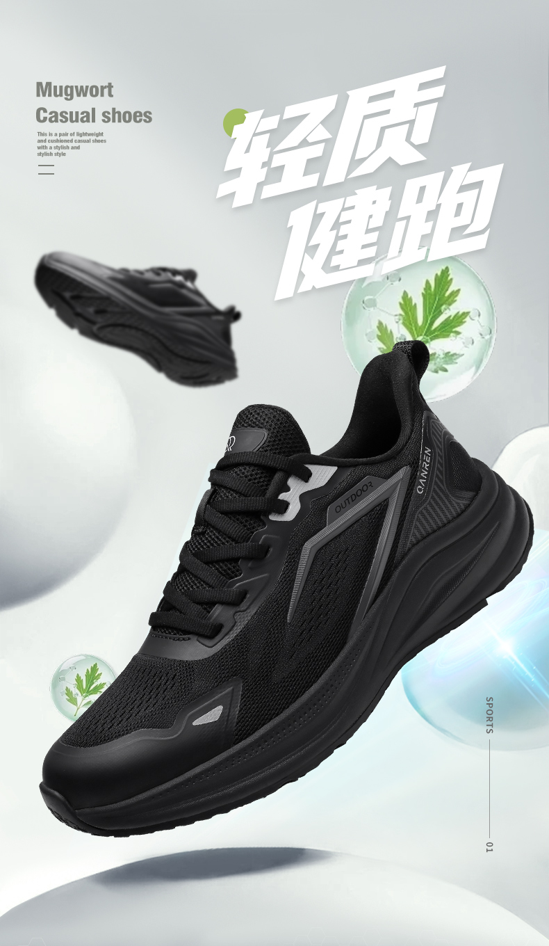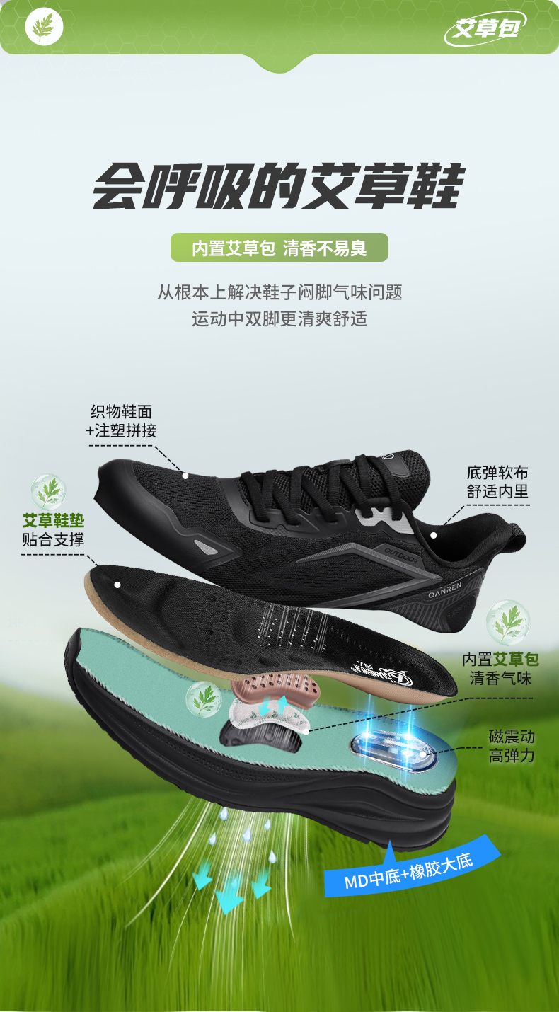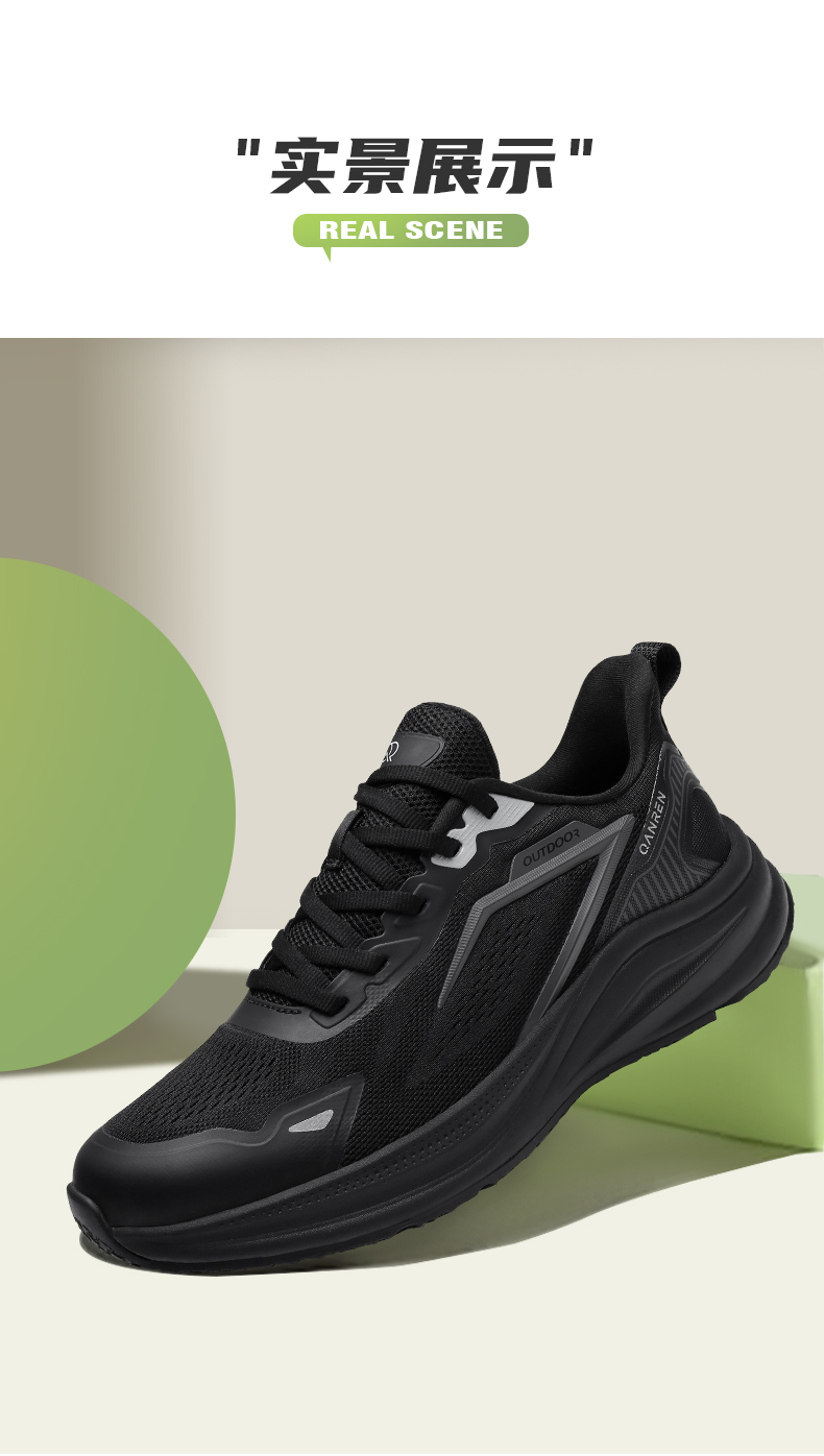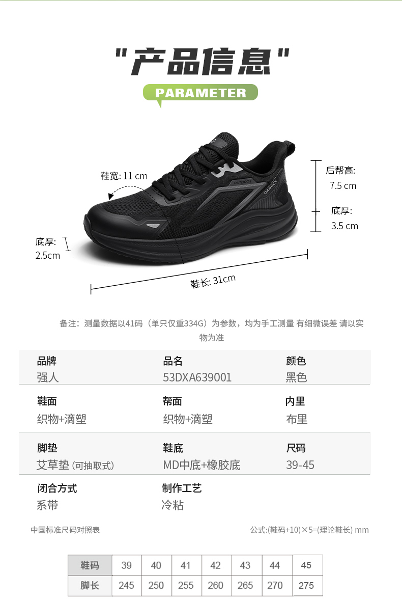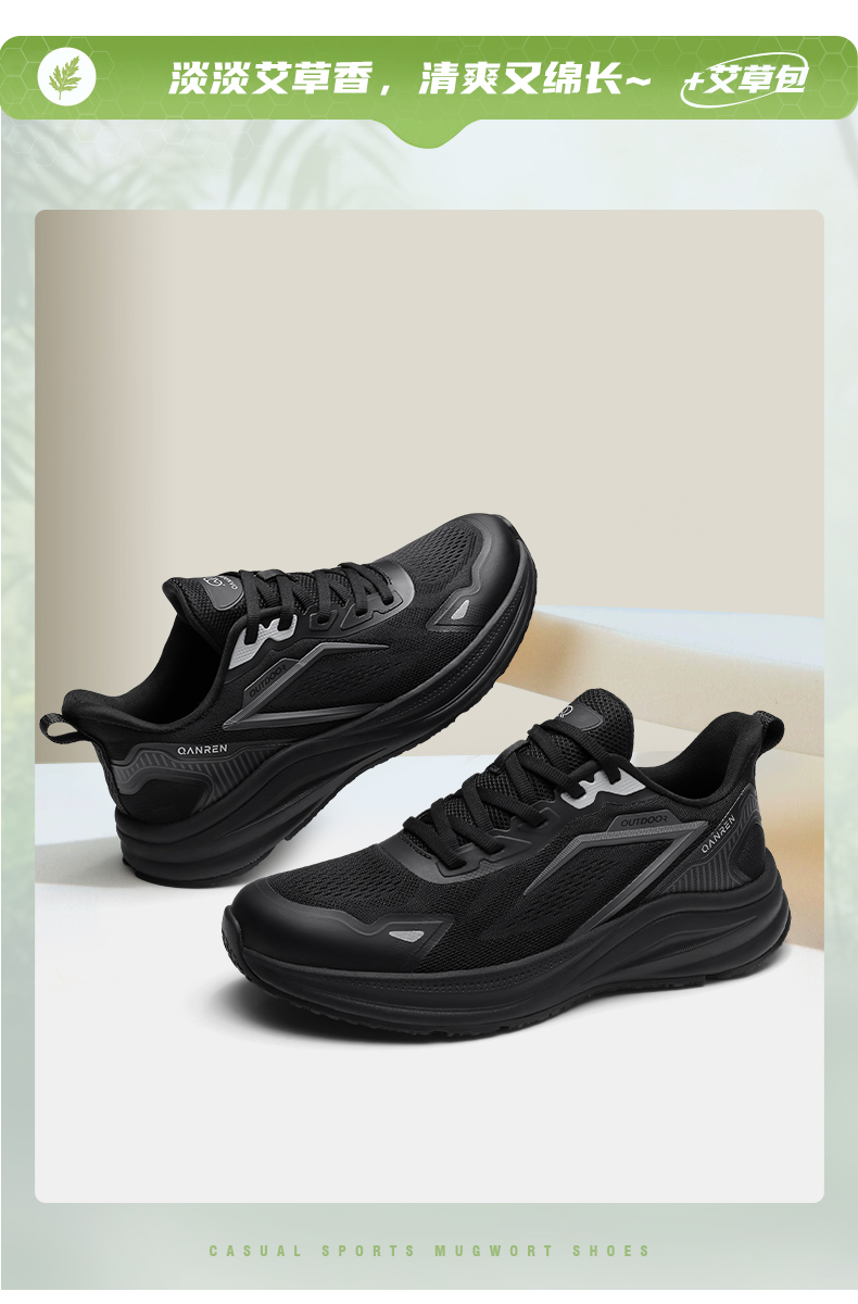 强人3515秋季轻质软底运动透气跑步鞋男士休闲防滑艾草健步鞋