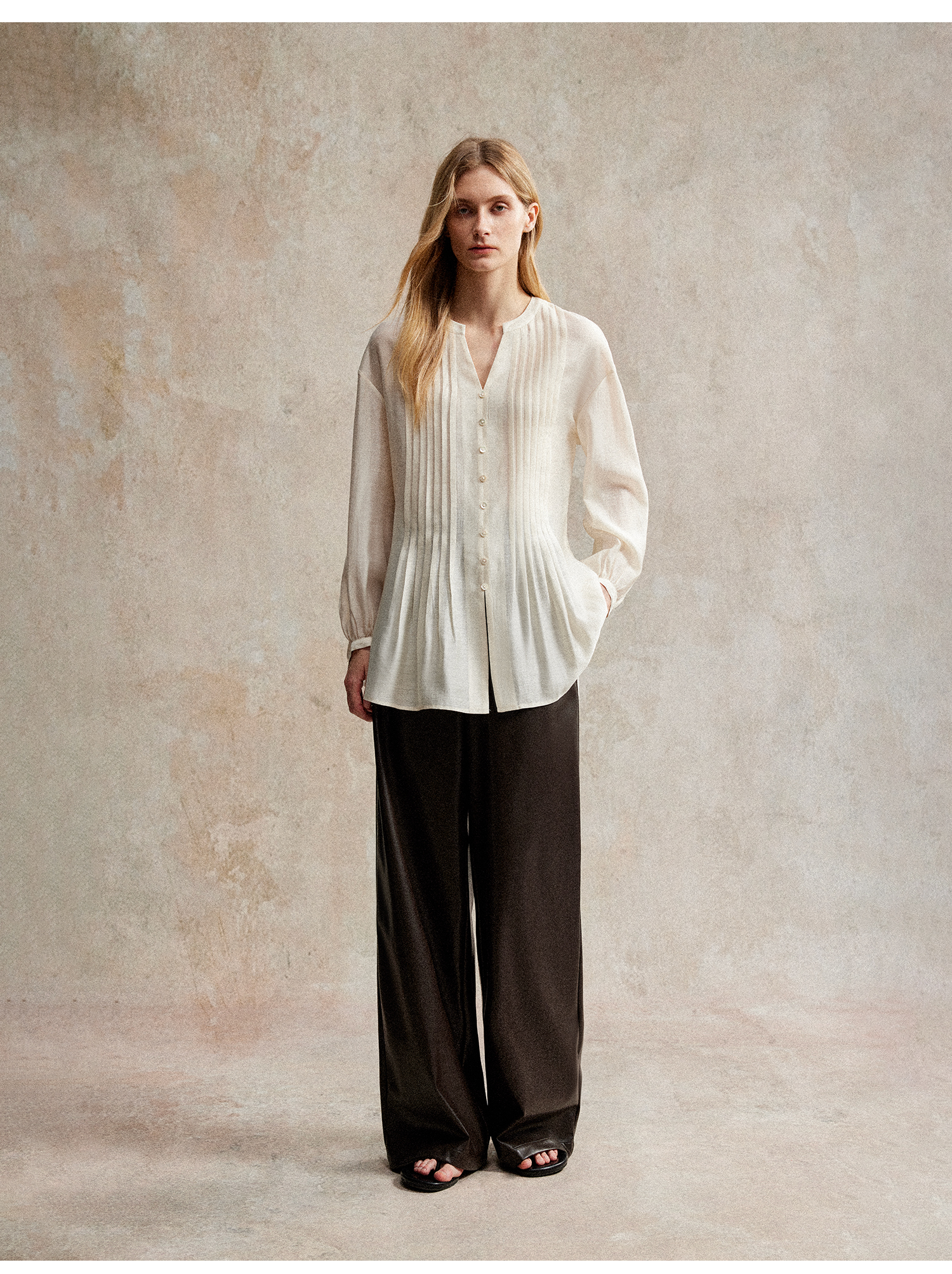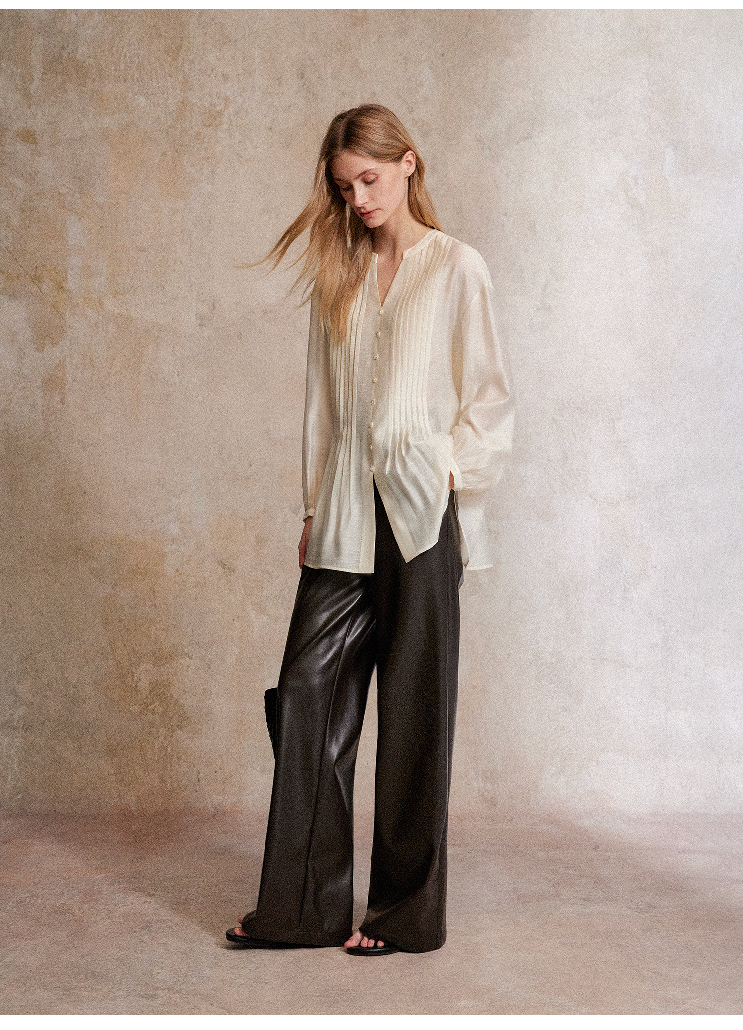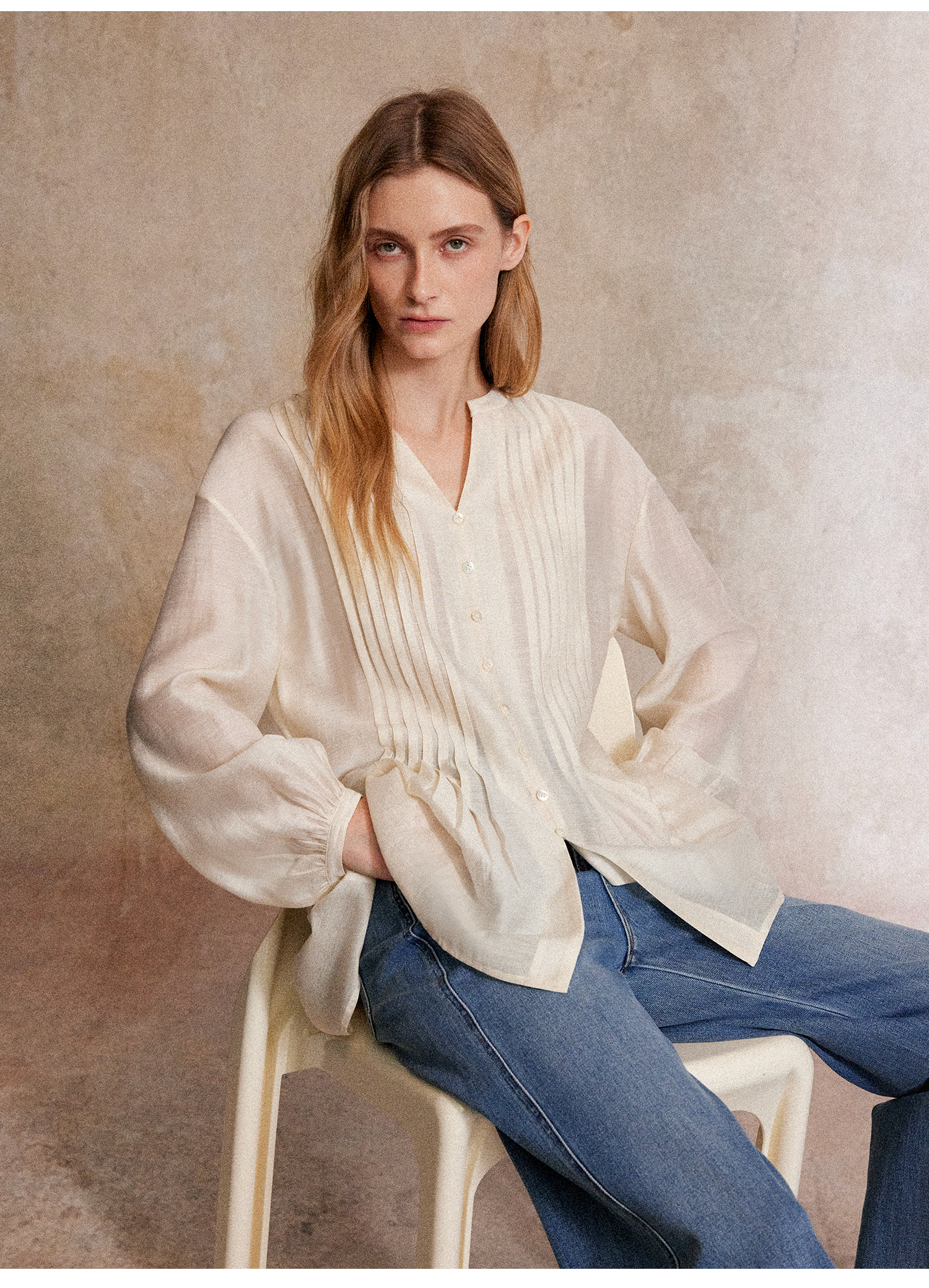 醋酸亚麻重工打条天丝宽松显瘦上衣CS2503003