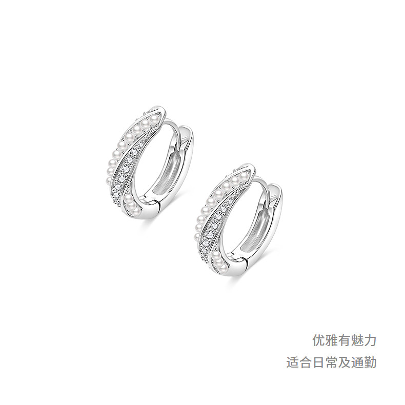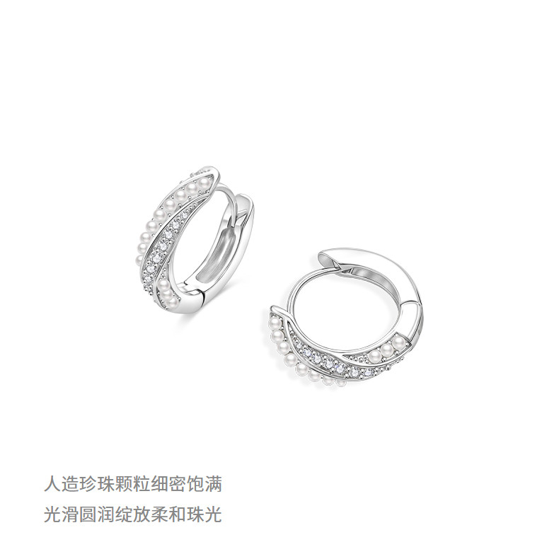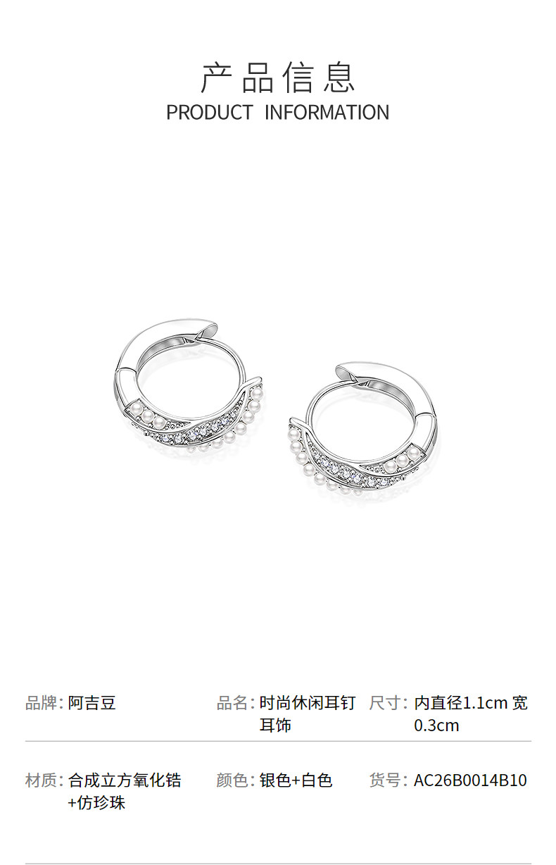 AJIDOU阿吉豆耳环女银色珍珠圈圈小众设计感耳圈简约通勤耳钉耳饰
