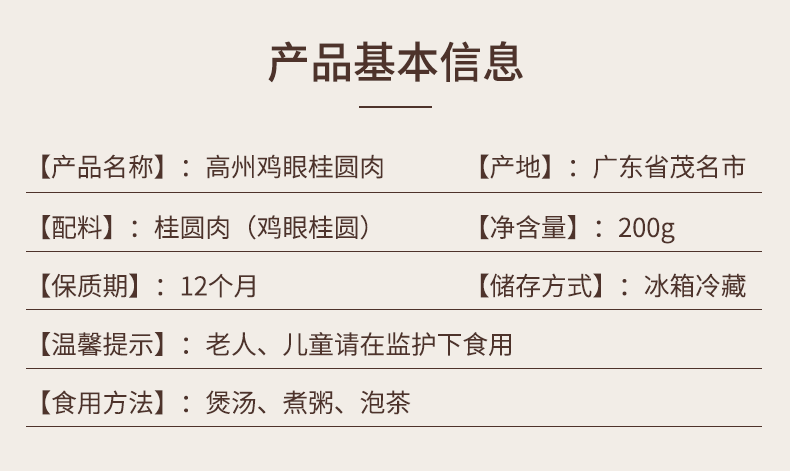 李时珍出品 营养食光高州鸡眼桂圆肉 传统工艺 手工挑选 配料干净 去核甘甜无沙