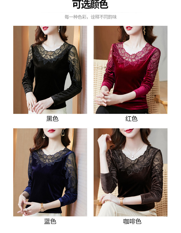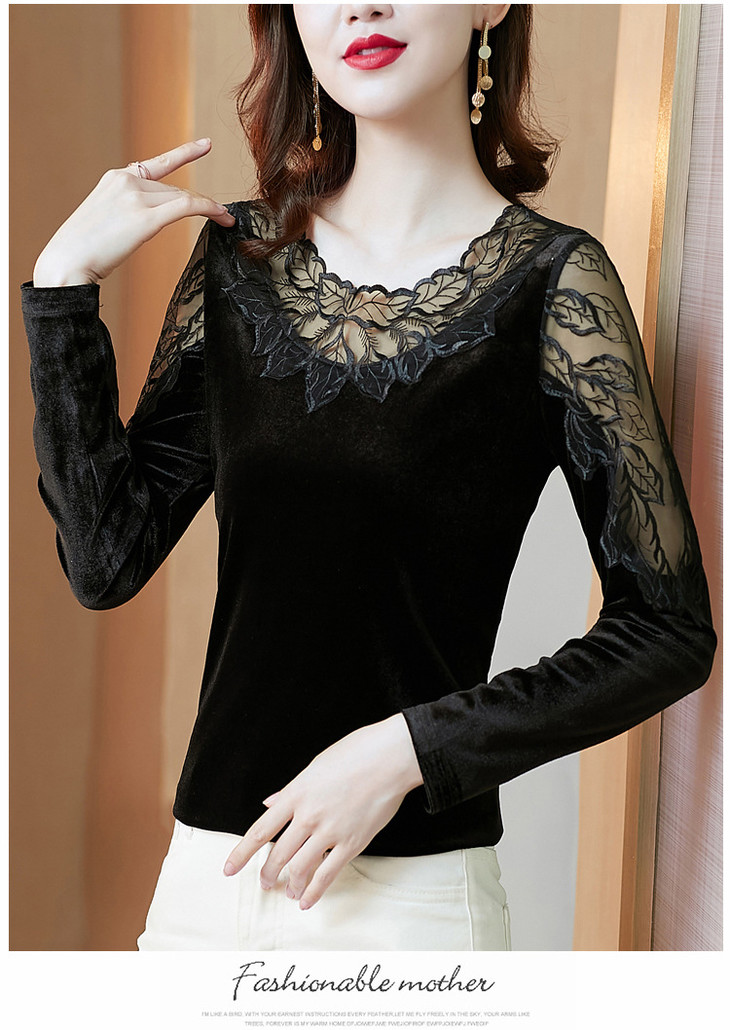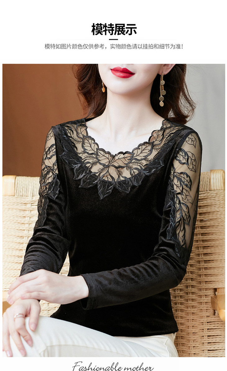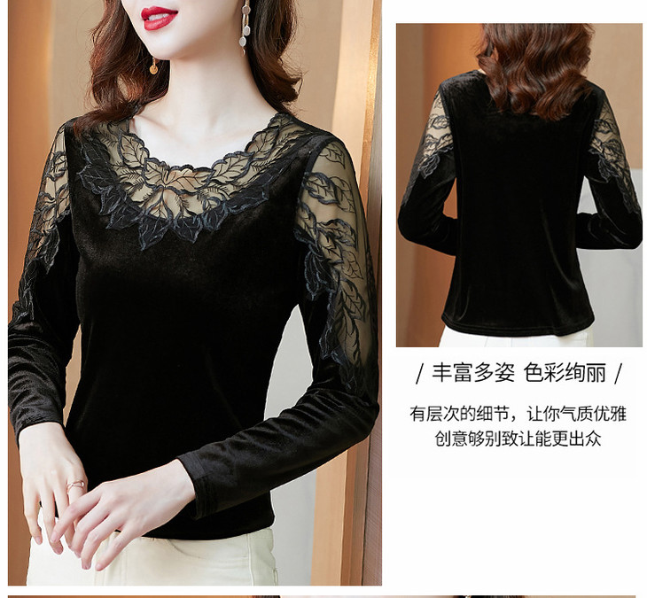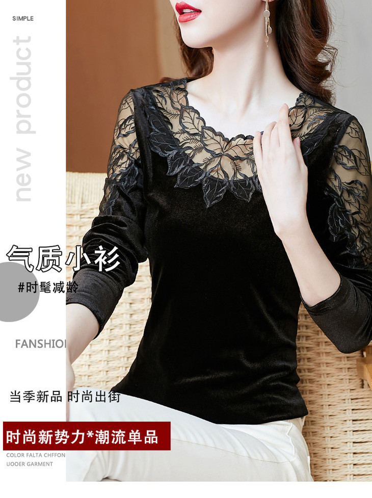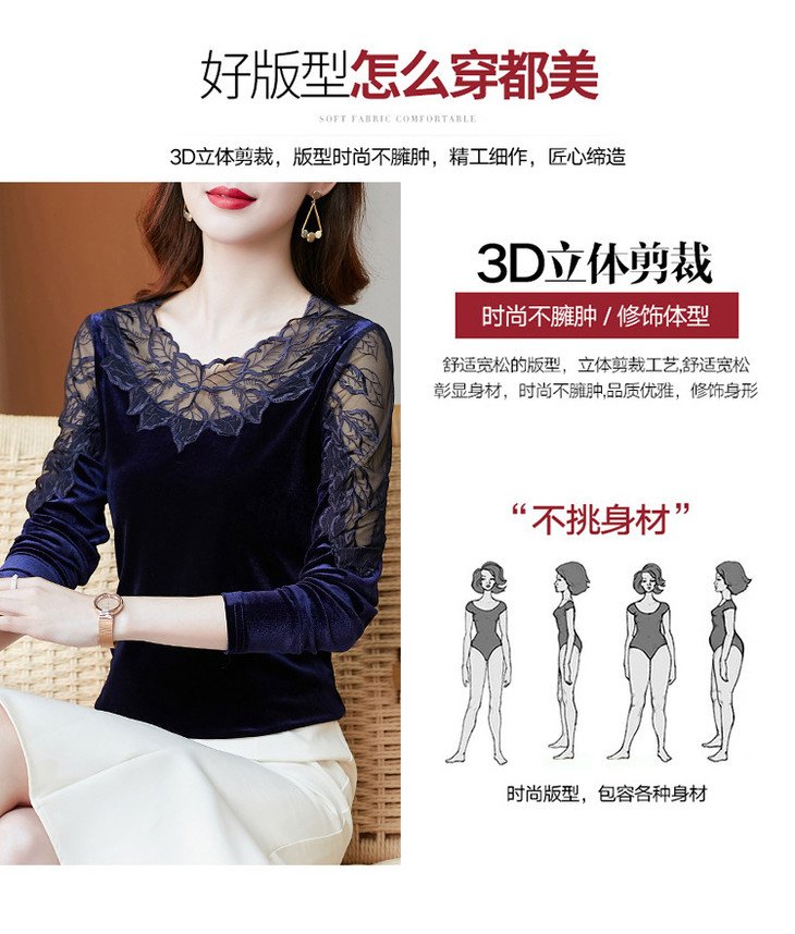 MZ105349 丝绒打底衫女秋季大码胖MM韩版t恤长袖宽松绣花内搭外穿