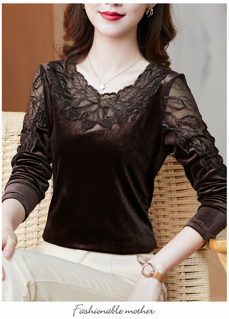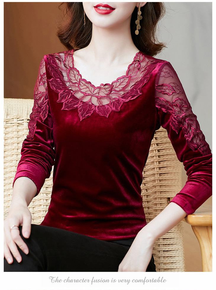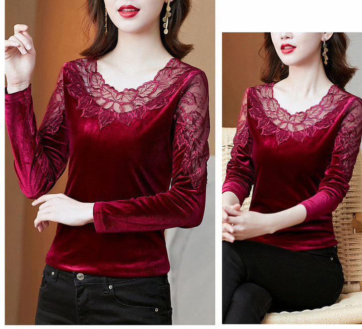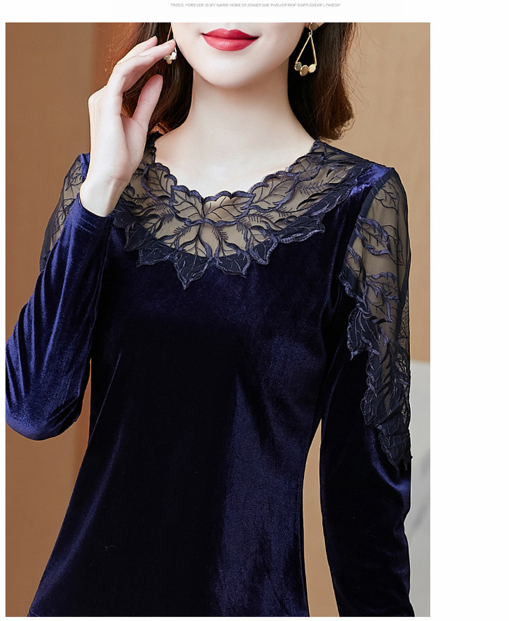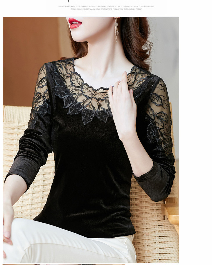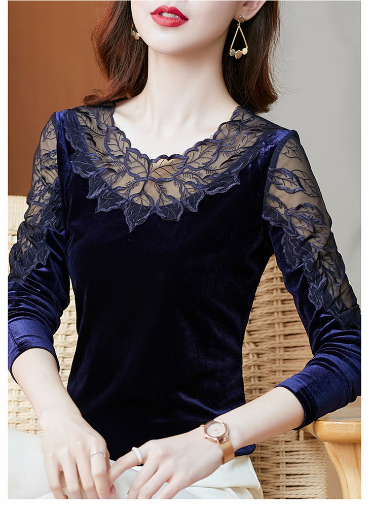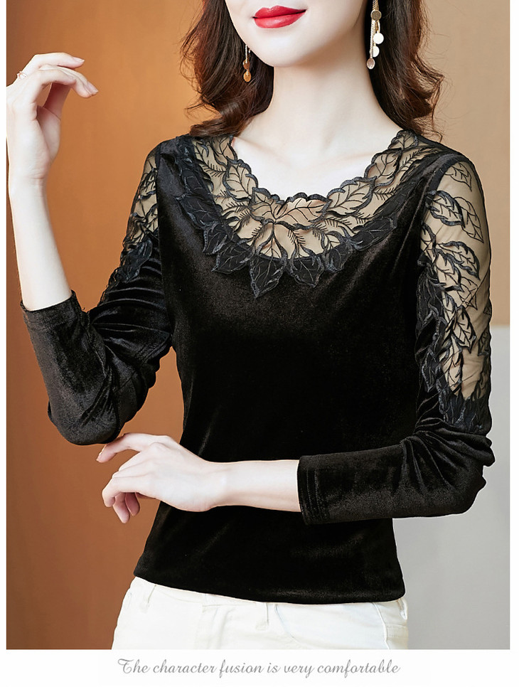 MZ105349 丝绒打底衫女秋季大码胖MM韩版t恤长袖宽松绣花内搭外穿