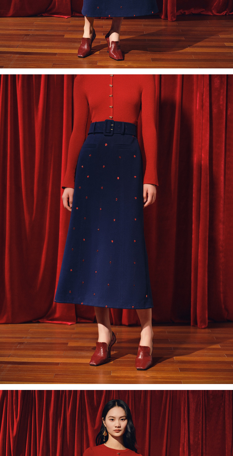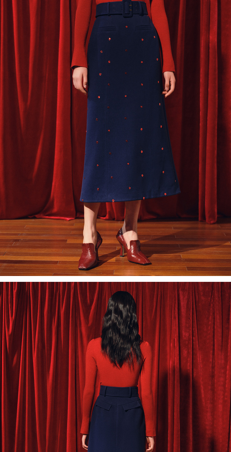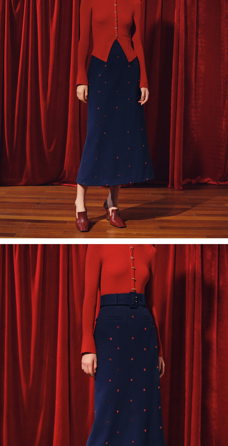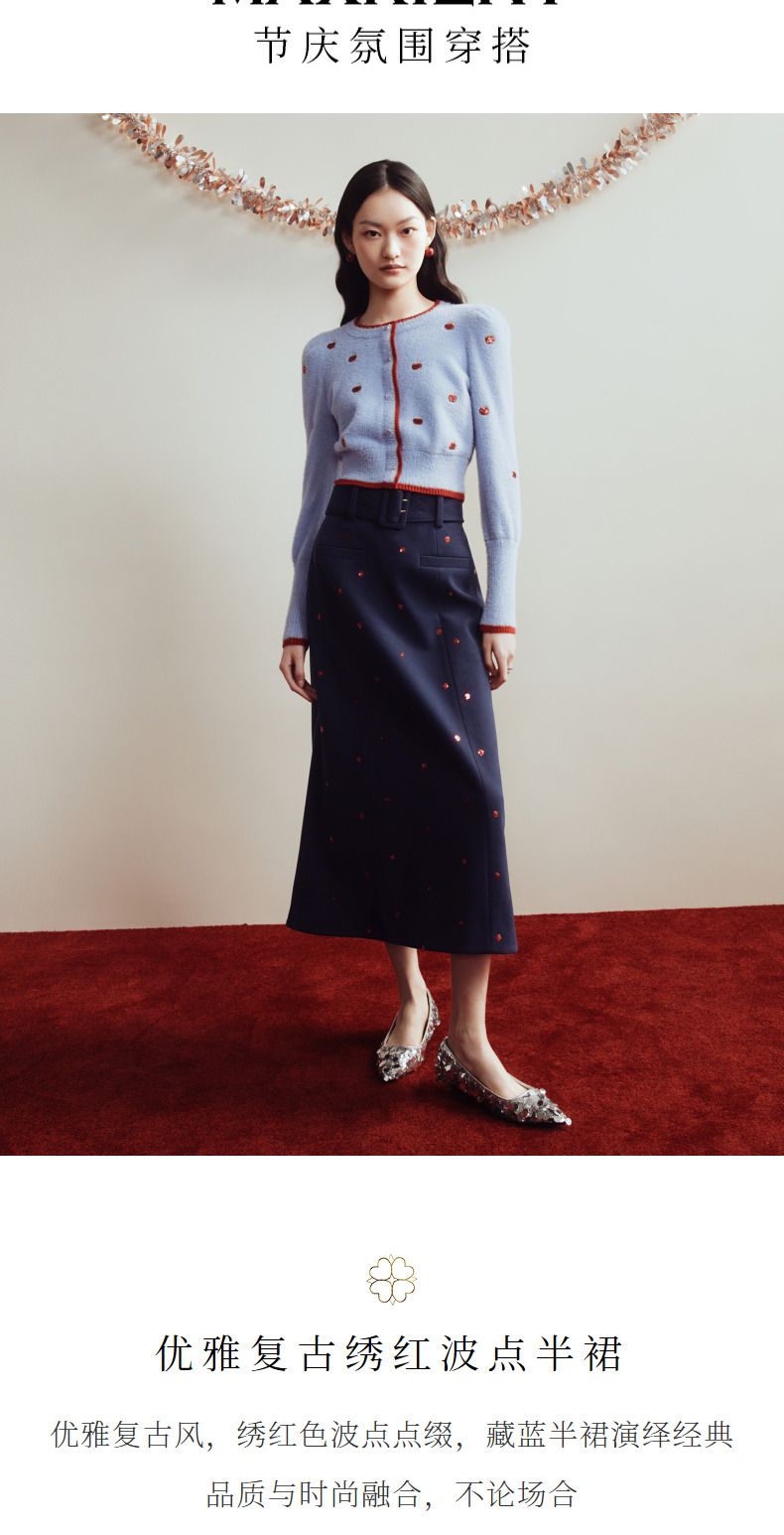 MAXRIENY优雅复古绣花红波点半裙2023冬季新款裙子(货号:MC88SK773)