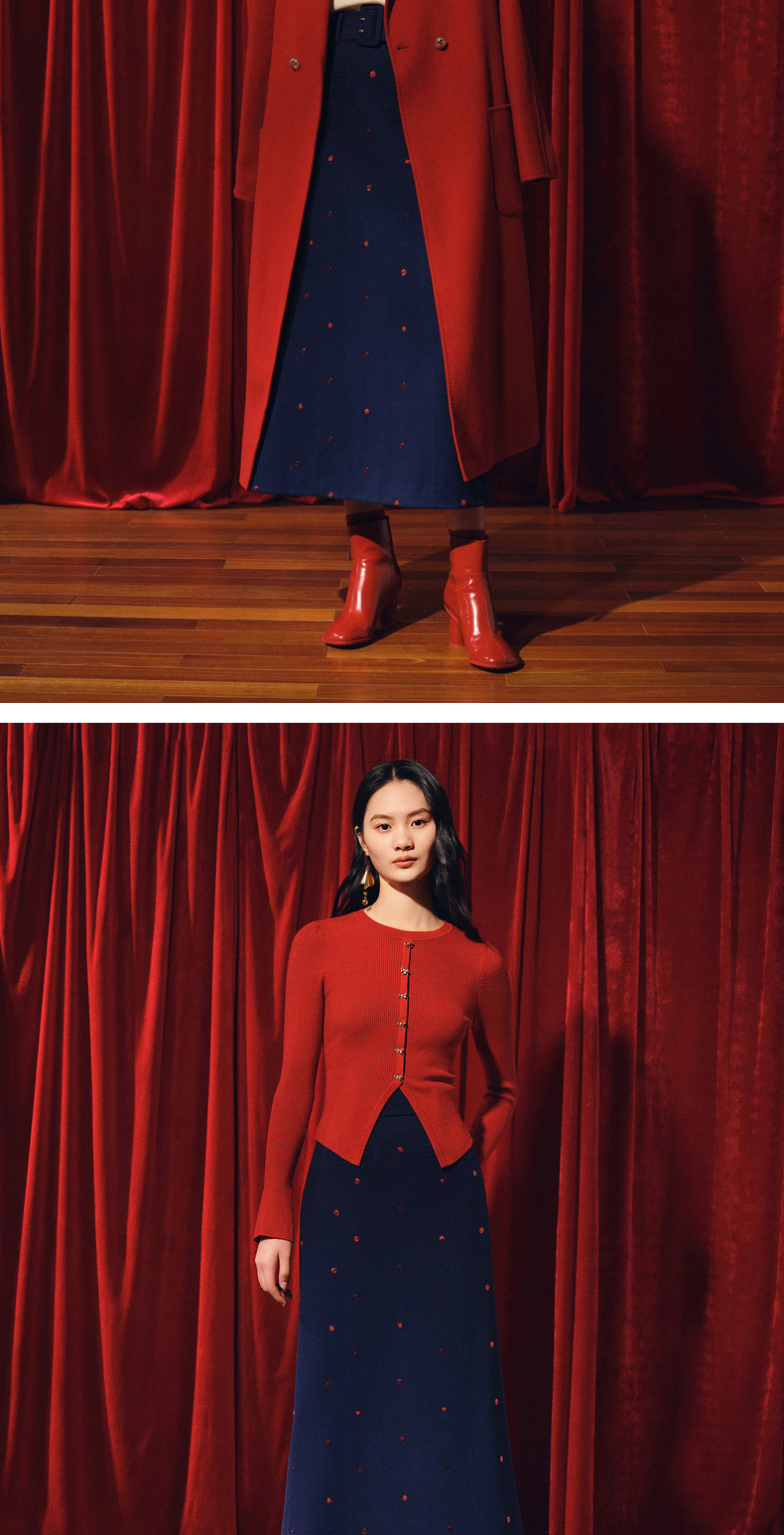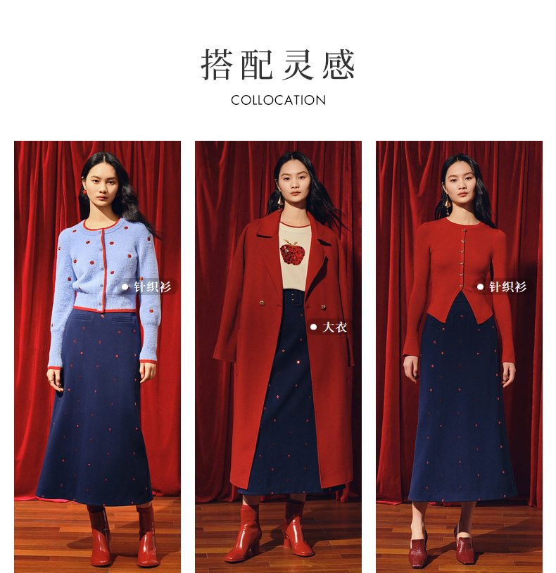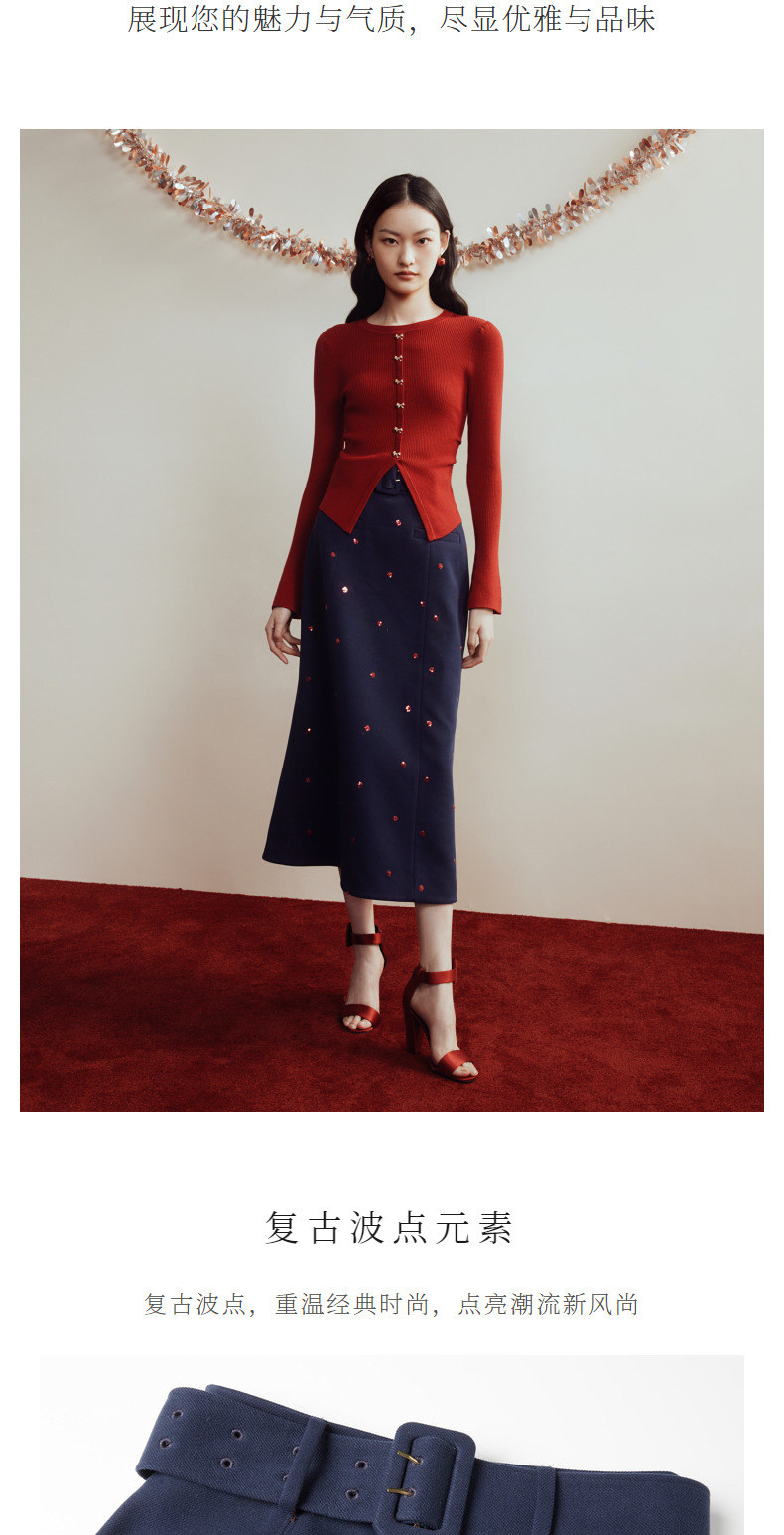 MAXRIENY优雅复古绣花红波点半裙2023冬季新款裙子(货号:MC88SK773)