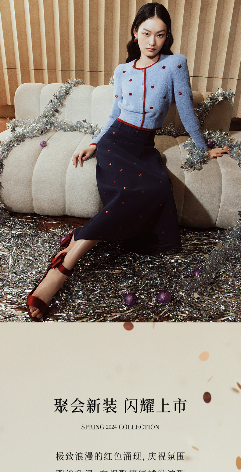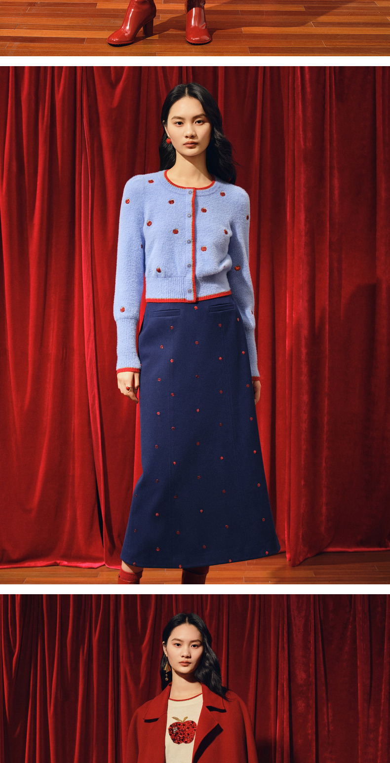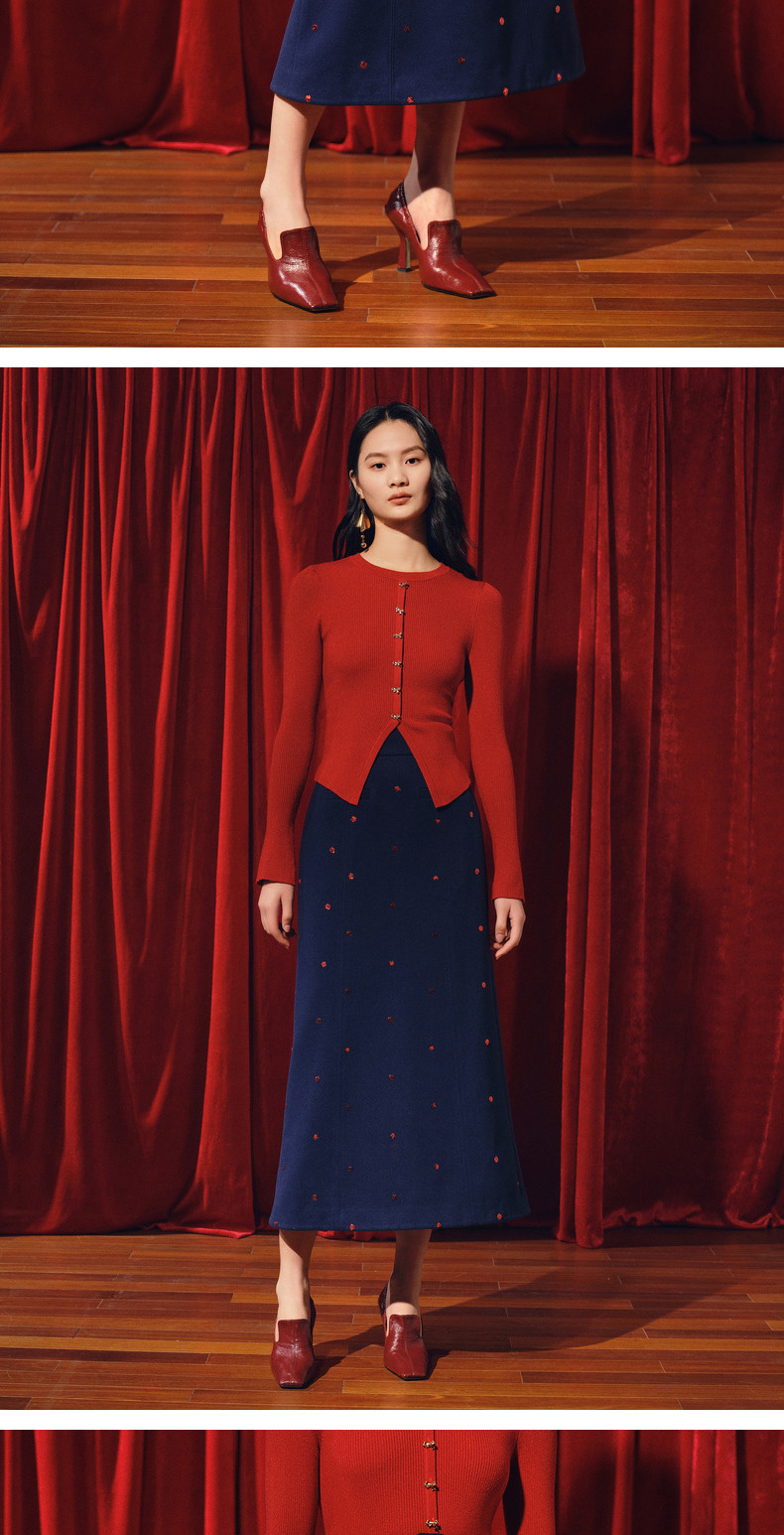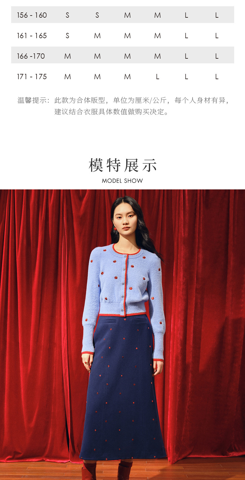 MAXRIENY优雅复古绣花红波点半裙2023冬季新款裙子(货号:MC88SK773)