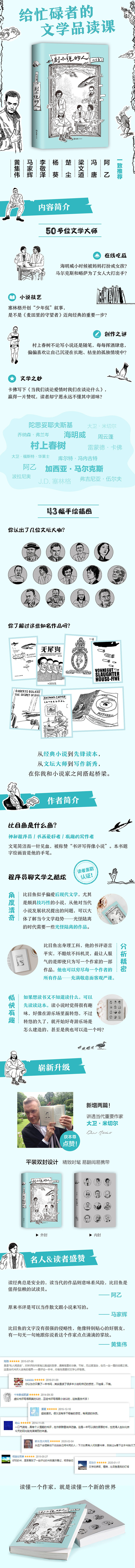 ★ 读经典总是***的,读当代的作品则意味着风险,比目鱼是值得信赖的试读员。这本书的绝大多数内容都涉及当前流行的国外纯文学作品。对不知道读什么好的朋友来说,实在是指路明灯。——阿乙
