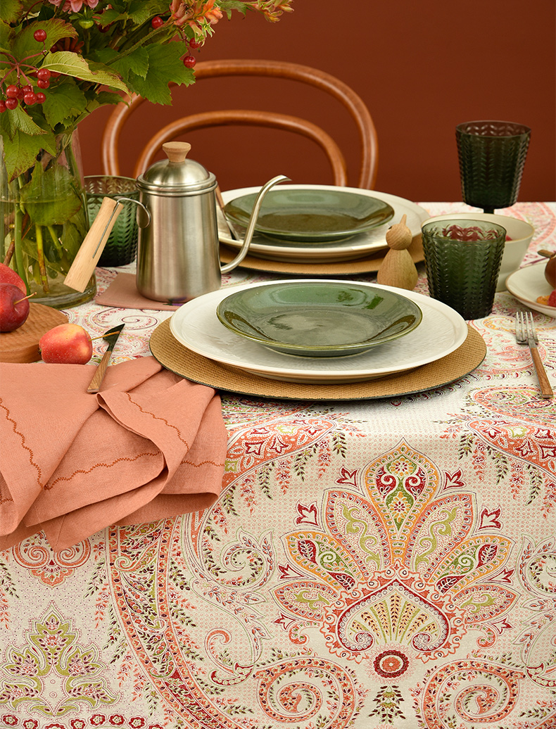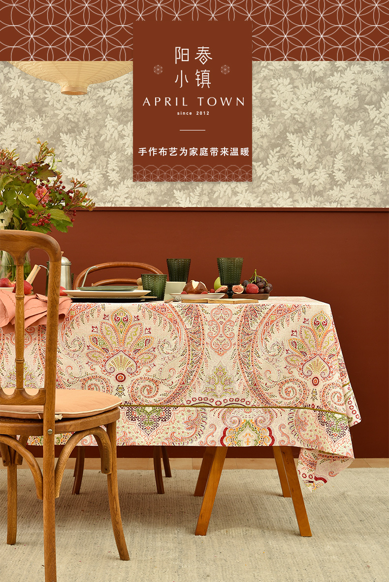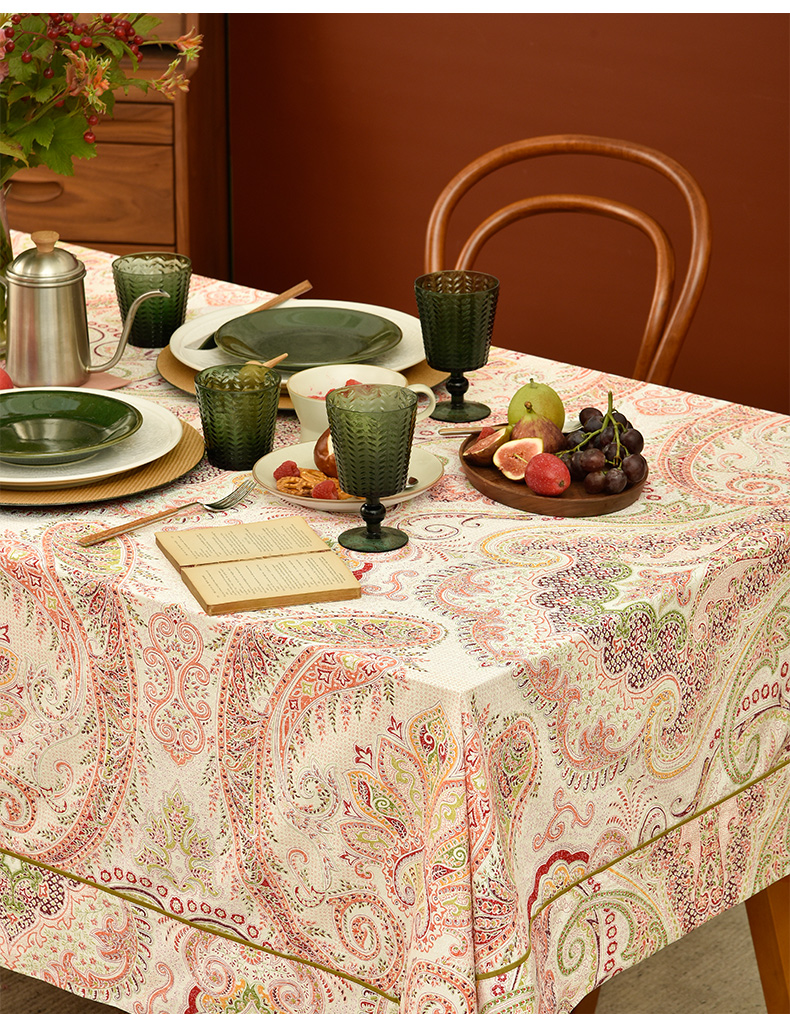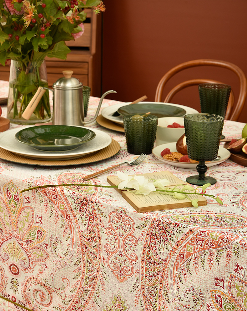 红色苏格拉底简约欧式佩斯利餐厅桌布