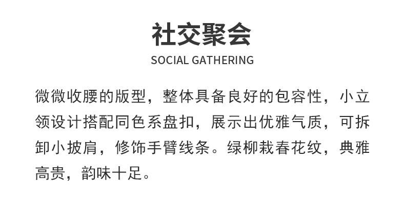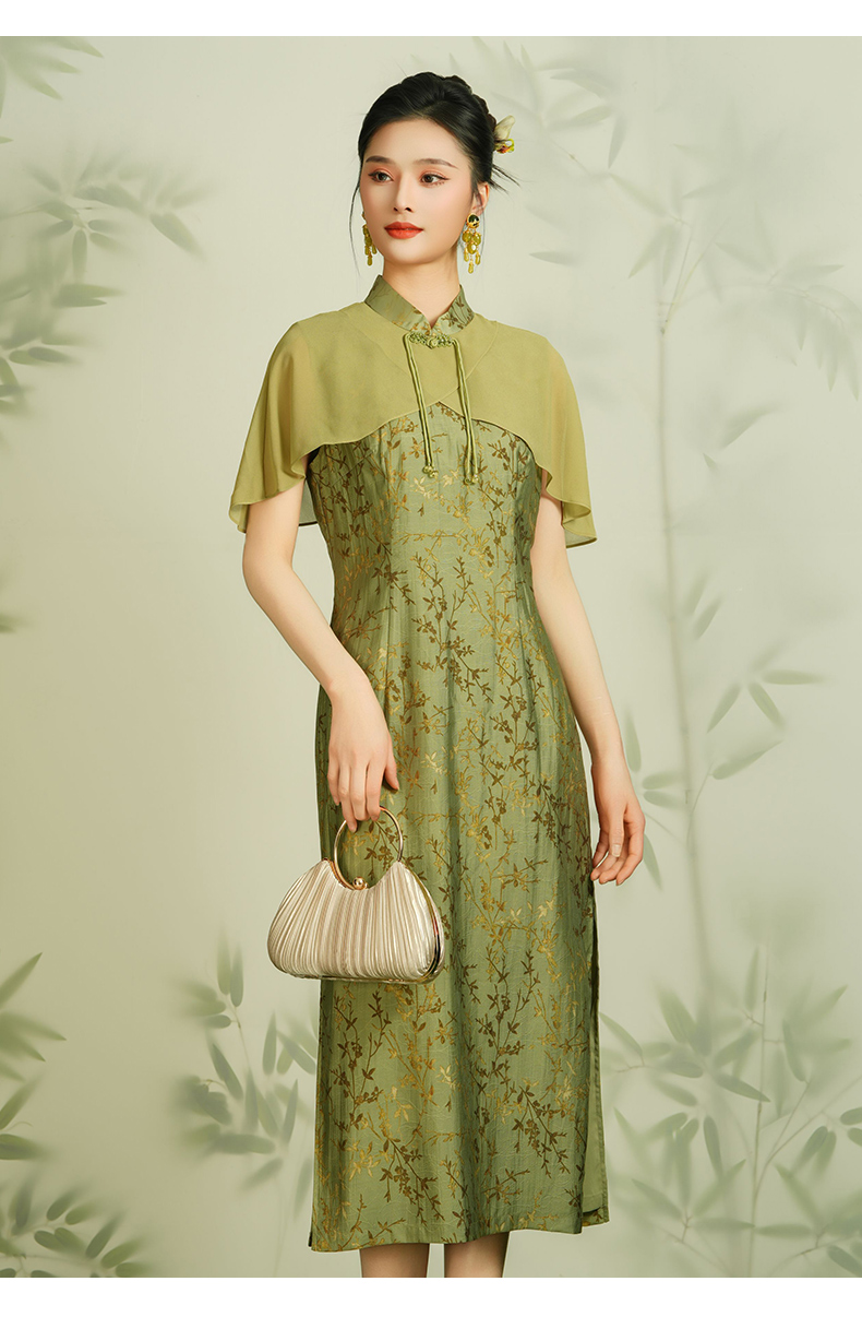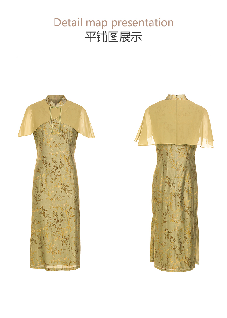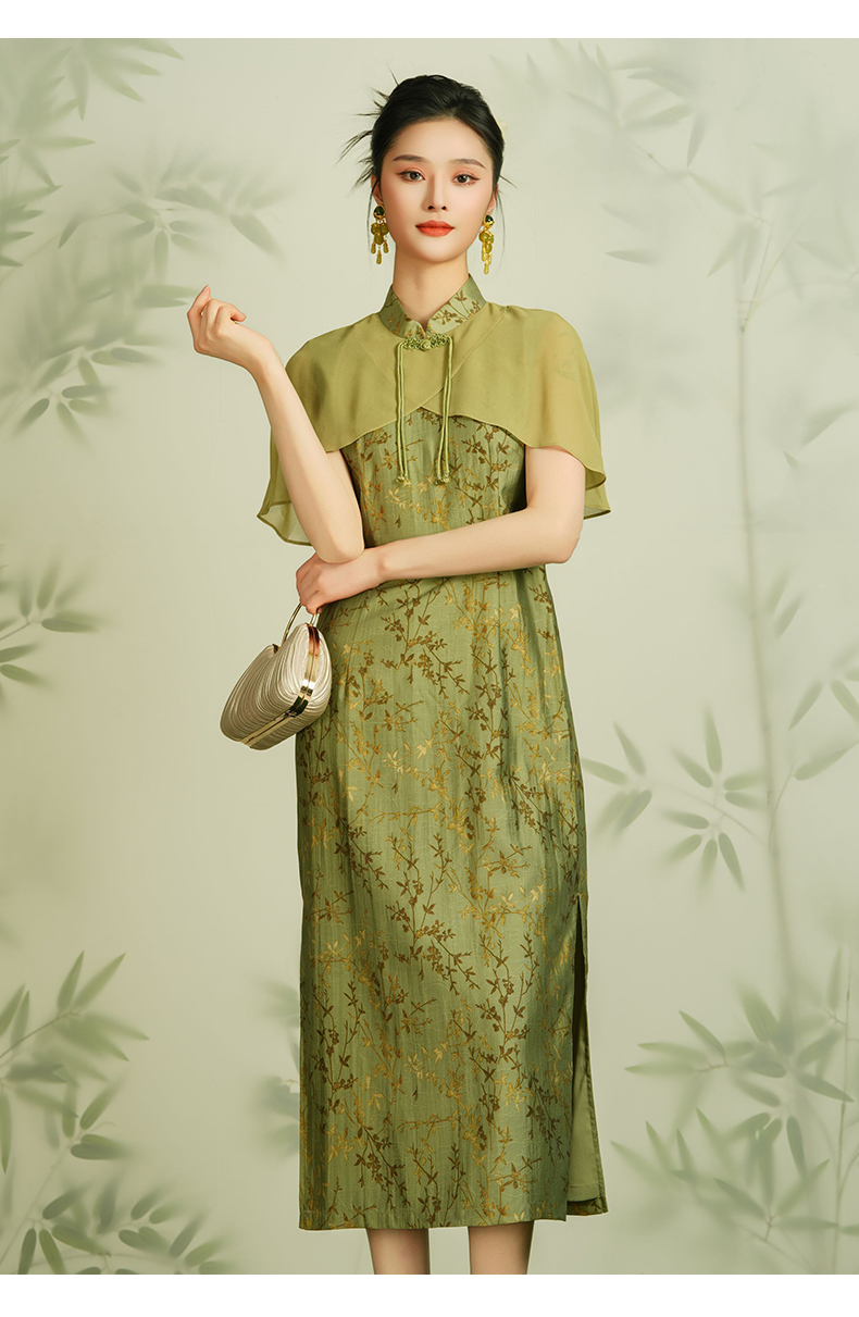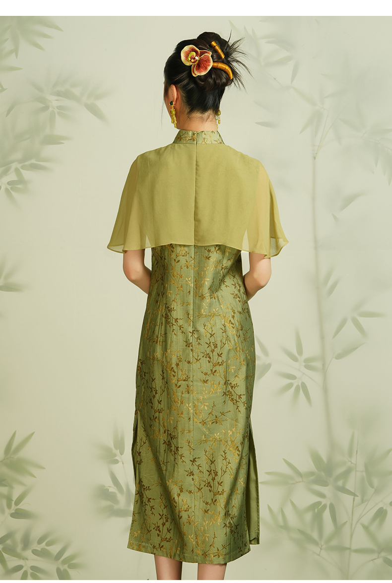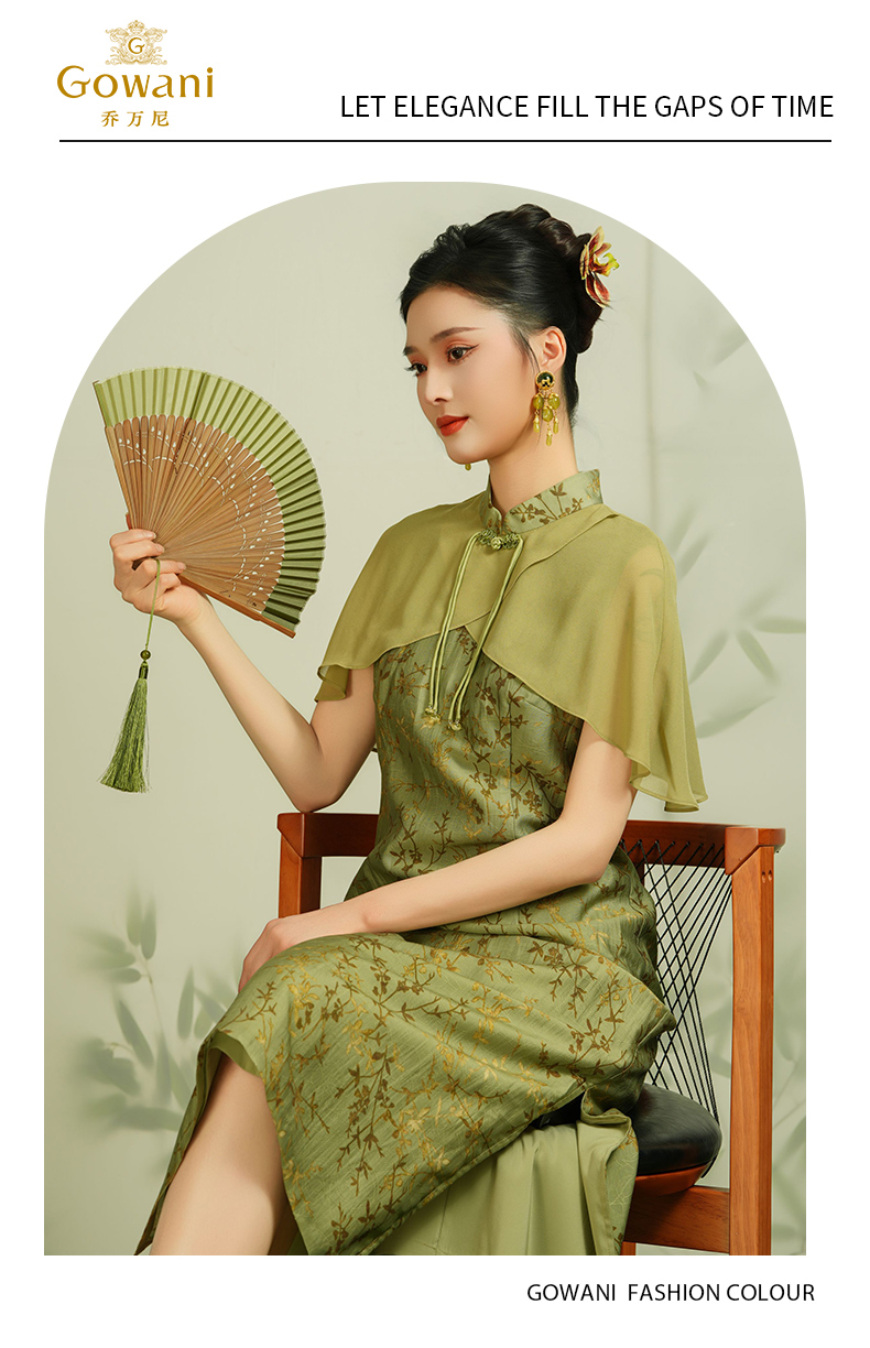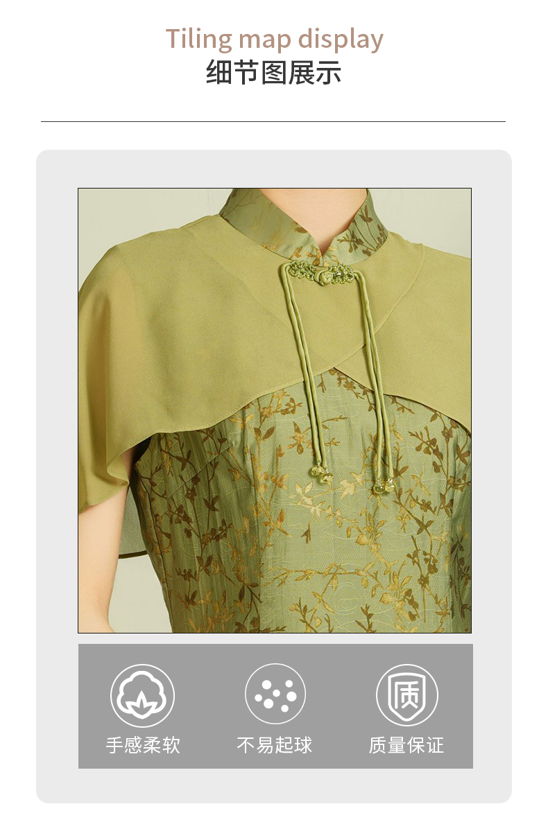 乔万尼国风旗袍收腰气质立领披肩款莱赛尔连衣裙EM2E901