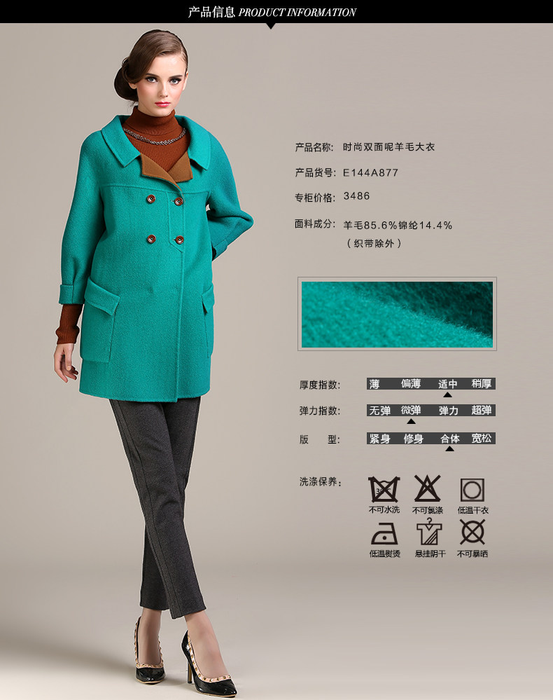 乔万尼冬季毛呢外套修身中长款双面呢羊毛呢子大衣E144A843