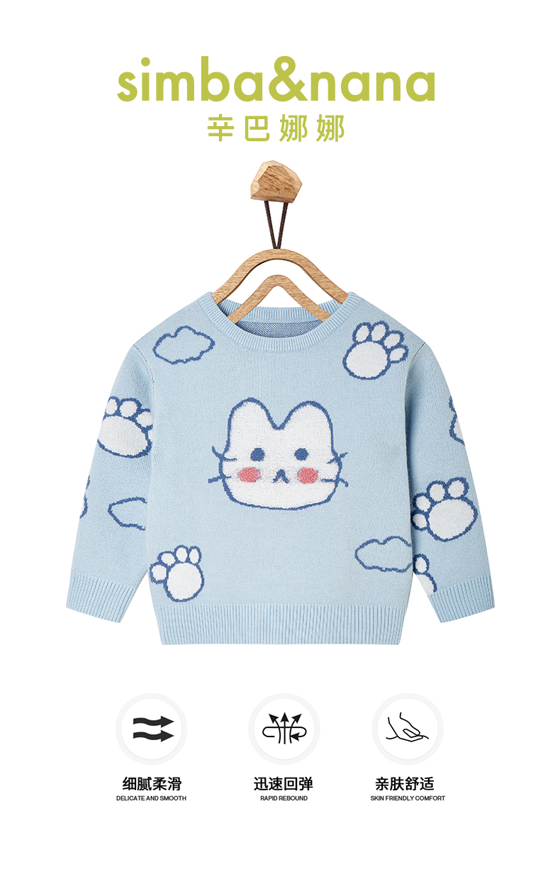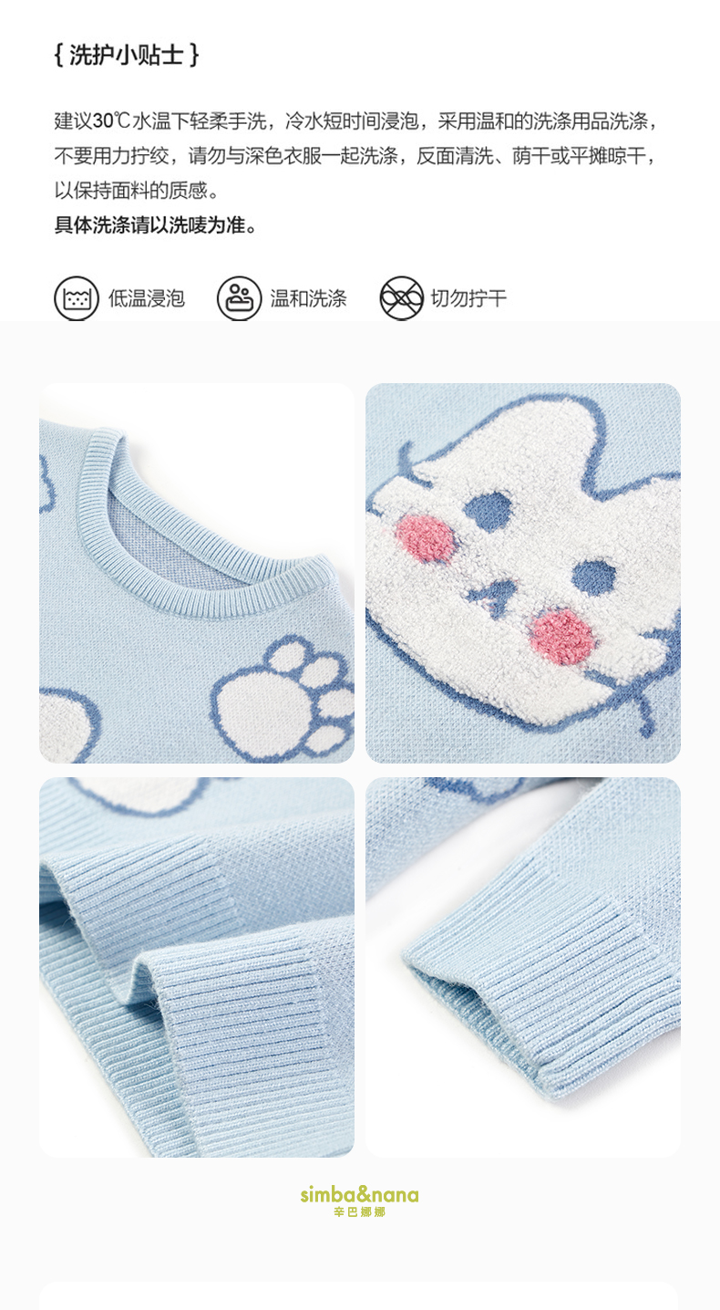 【辛巴娜娜】simbanana可爱打底衫保暖上衣圆领洋气儿童小猫宝宝线衣女孩
