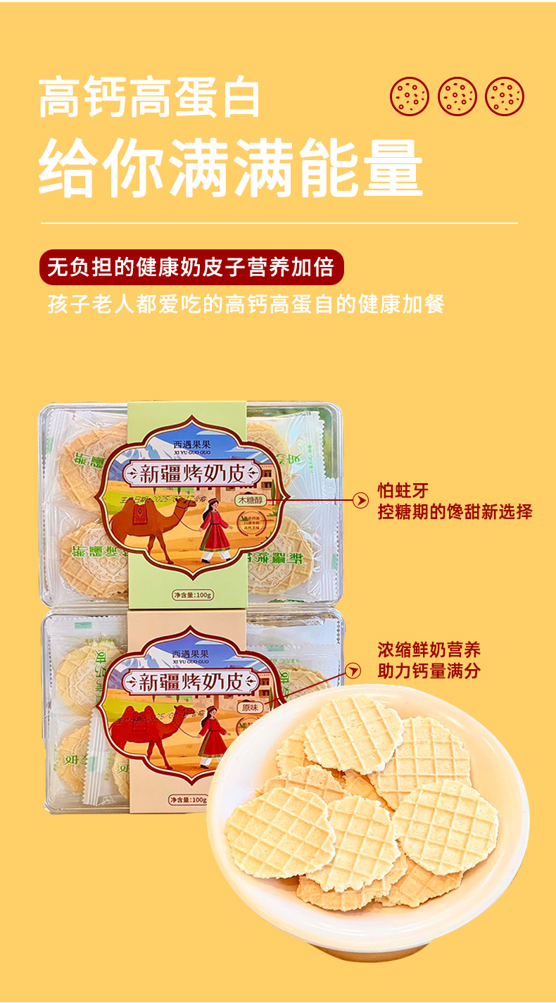 西遇果果 新疆烤奶皮 选天山牧场优质奶源 0添加香精 植脂末 高钙高蛋白质 低温烘烤非油炸