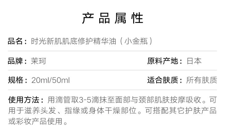 大牌都在推崇“以油养肤”,出了许多精华油,可她用的却是日本小众的 茉珂小金瓶。(茉珂时光新肌肌底修护精华油)