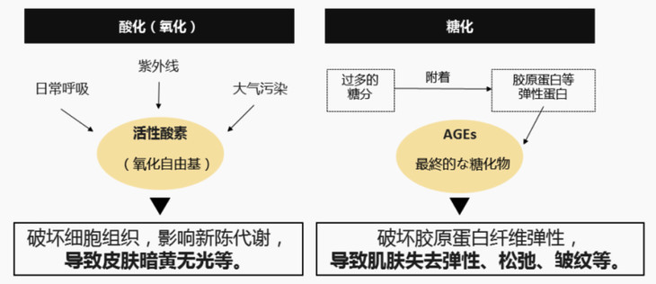 要知道,肌肤老化,常常有两种:一个是氧化自由基,一个是糖化,造成皱纹、暗沉的原因,总归是它们俩的其中一种。