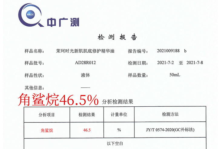 而这小金瓶,差不多半瓶都是角鲨烷,在所有成分里面排头位,可见多厉害。