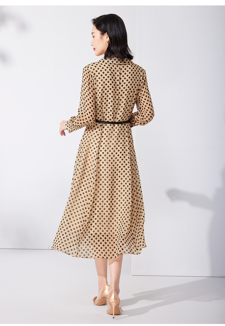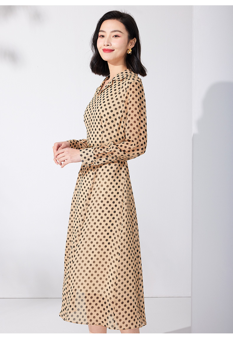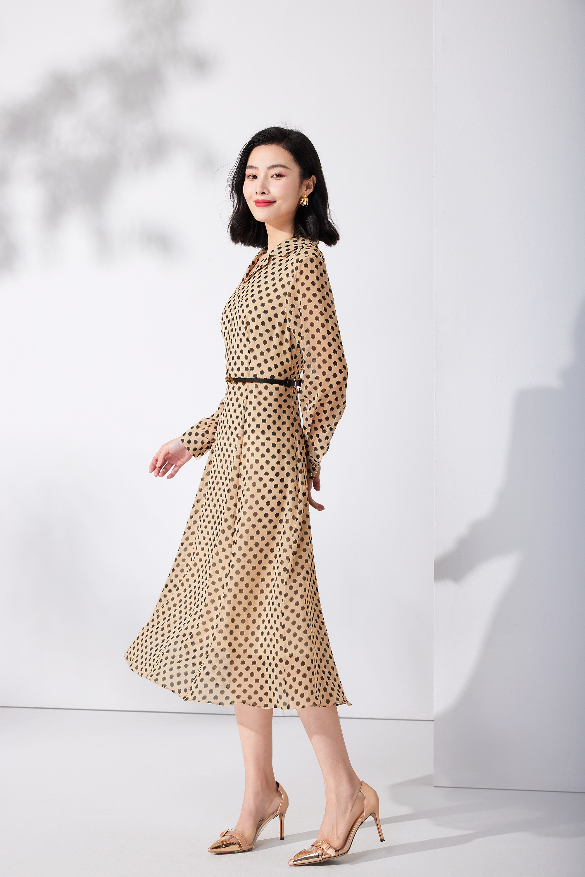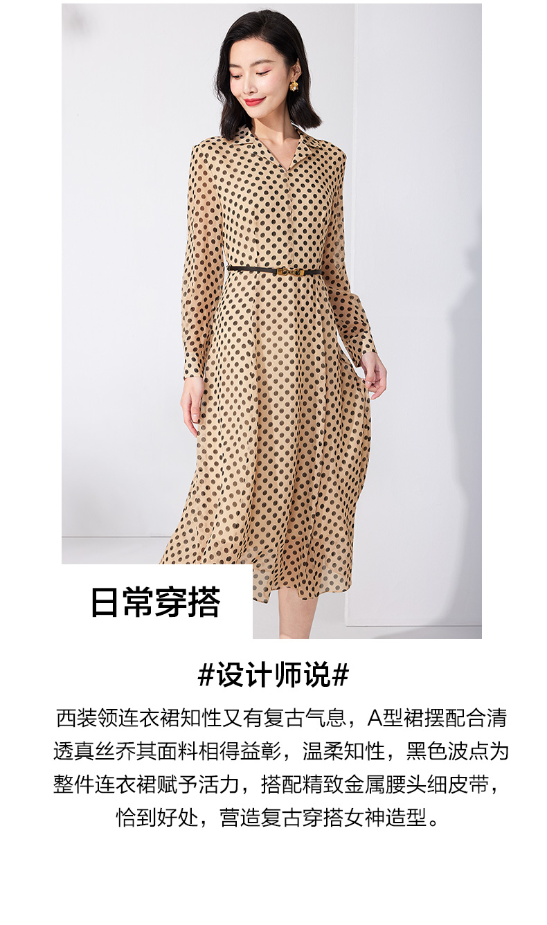 乔万尼新品100%桑蚕丝真丝修身波点连衣裙ET2E288