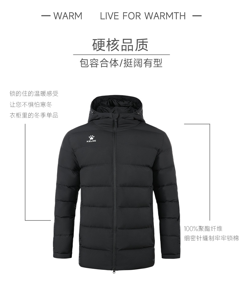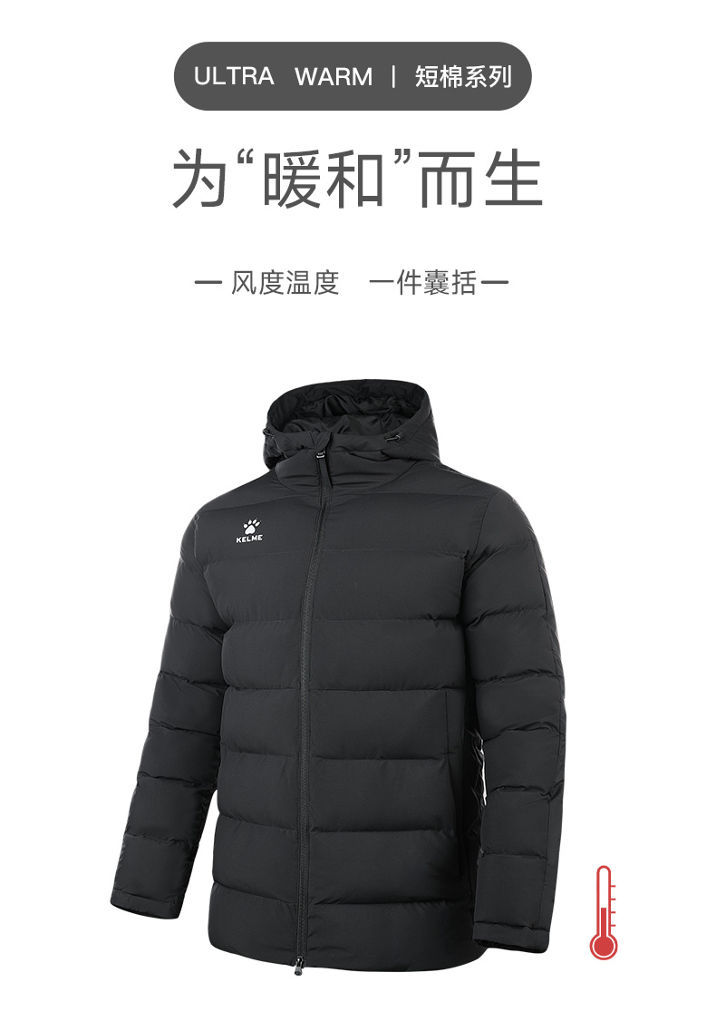 卡尔美2022冬季运动棉服短款连帽男女休闲外套加厚保暖棉袄