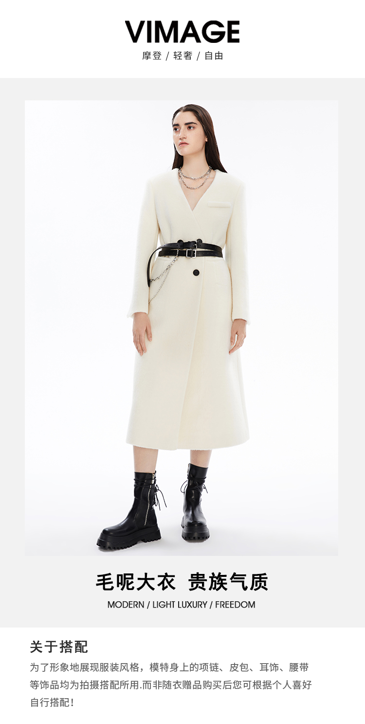 VIMAGE纬漫纪冬季新款时尚简约气质毛呢外套大衣V1614230
