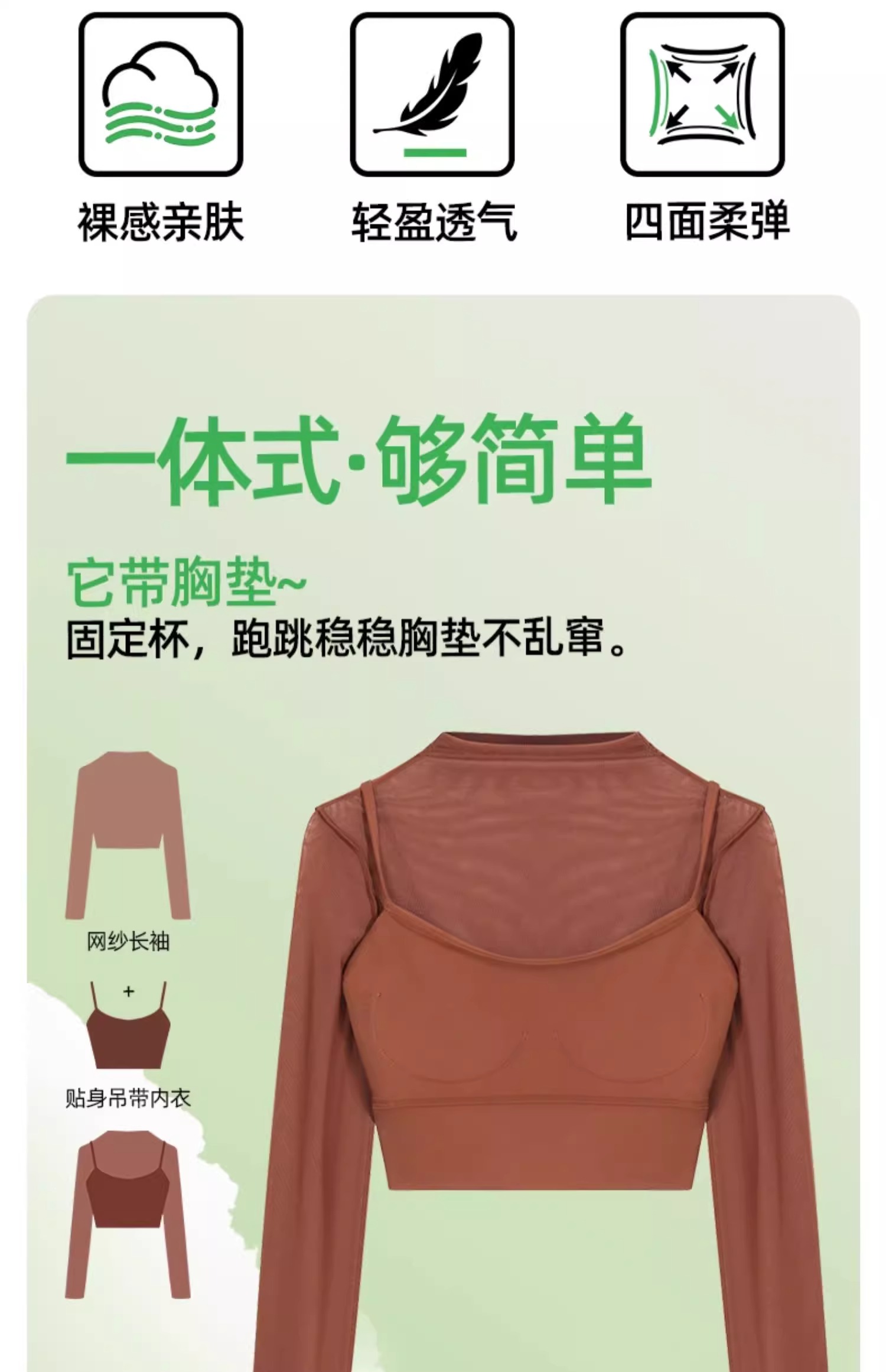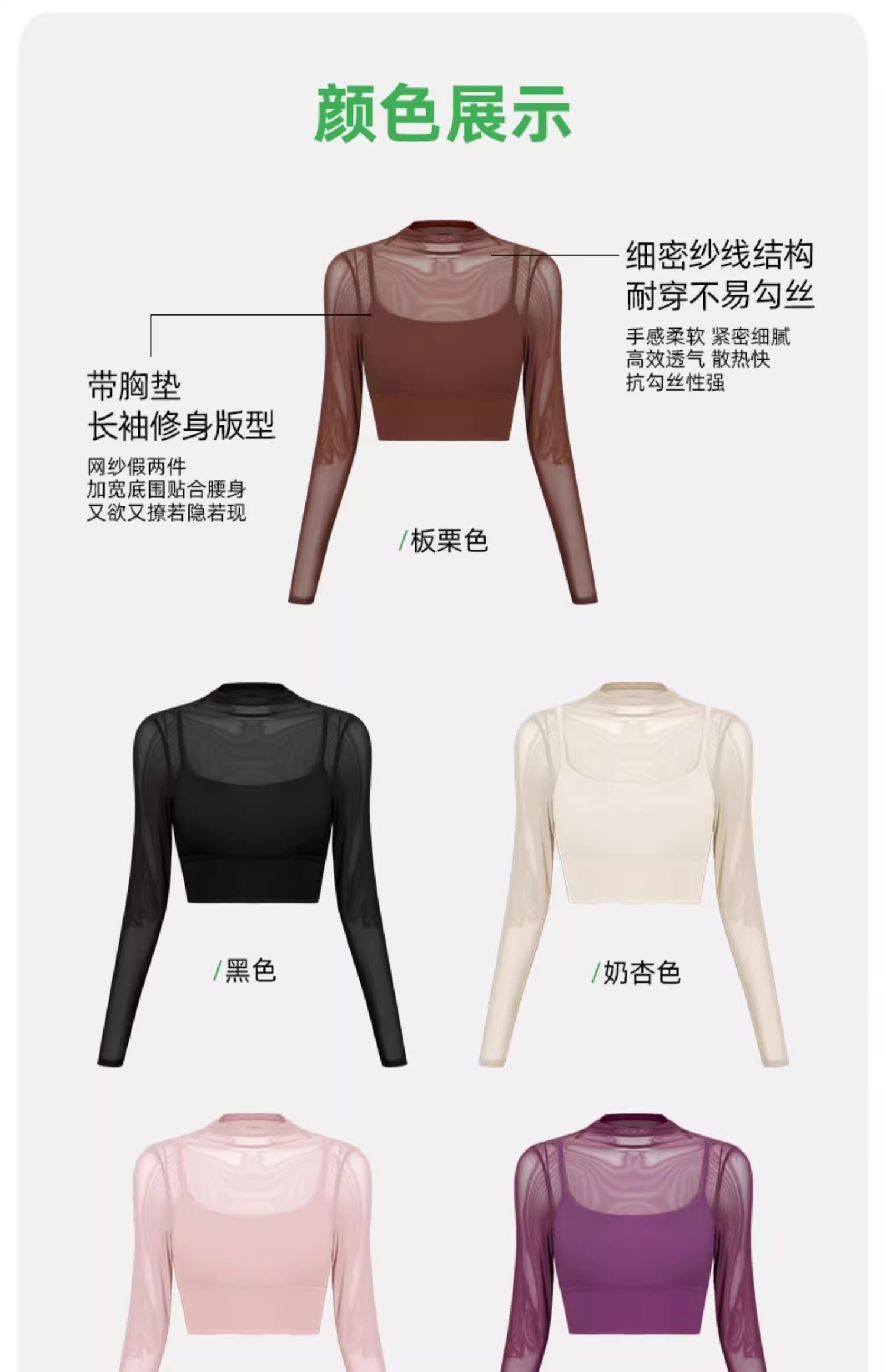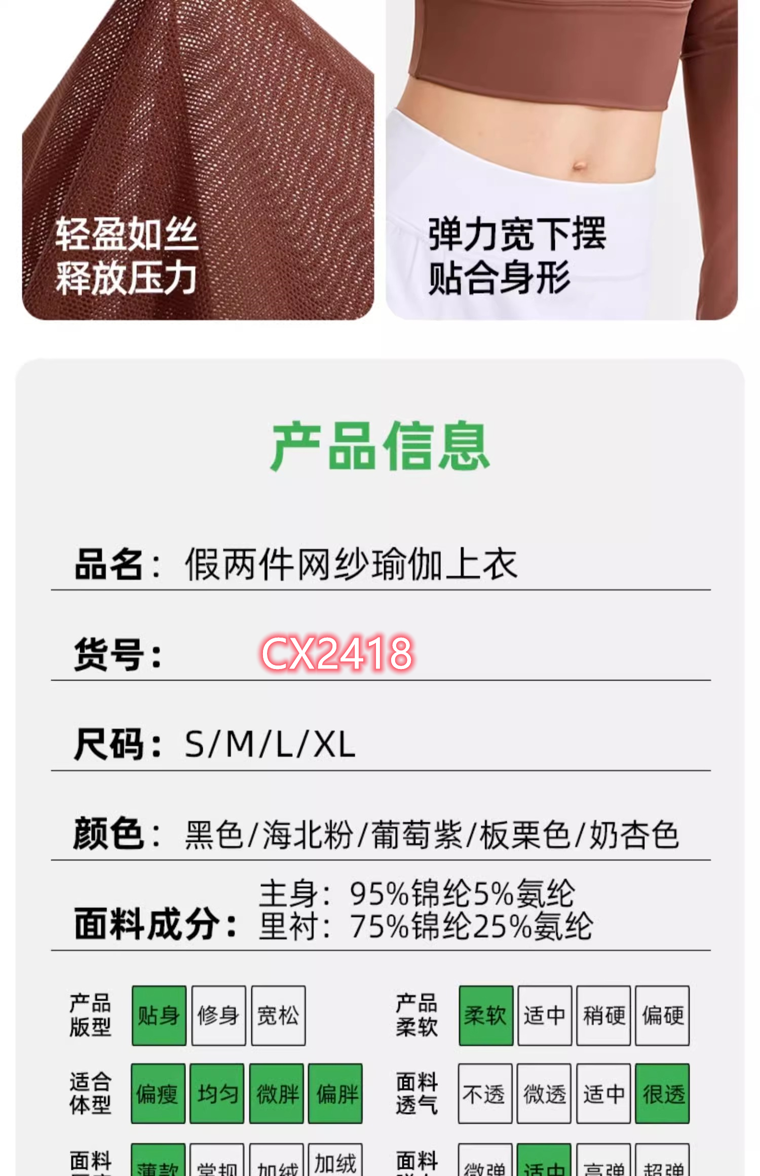 跃牌【禅语梵心系列】性感网纱瑜伽服长袖 CX2418