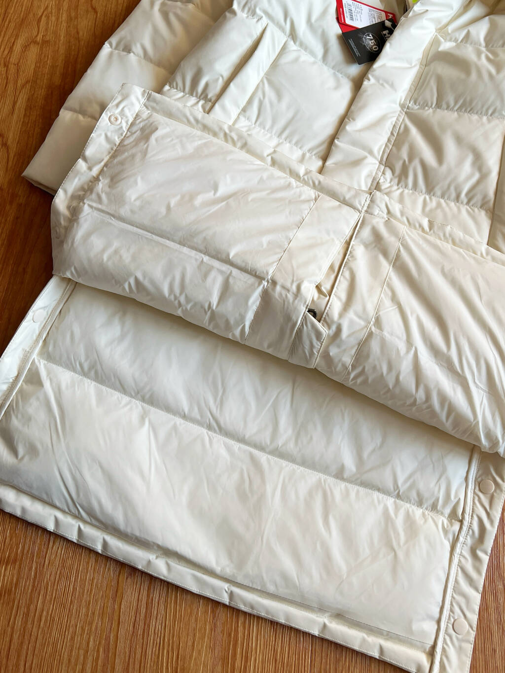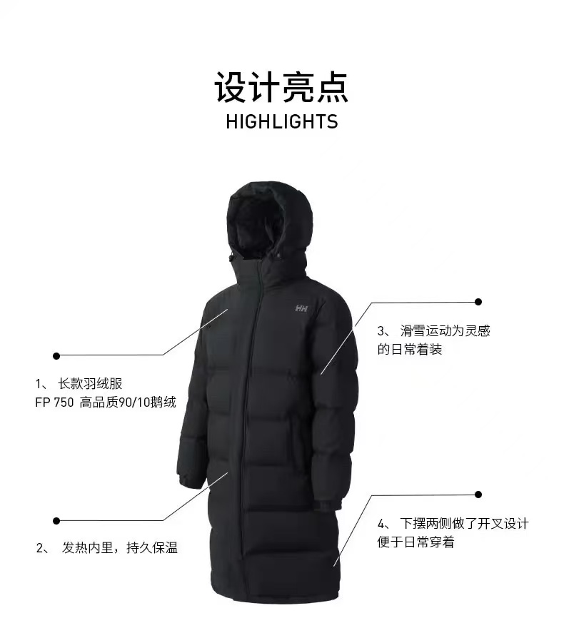 超值入手的性价比,男女同款防风保暖连帽长款羽绒服,一件过膝加长的羽绒服,是寒冷冬日衣橱必备的单品,经典百搭长款,将冬日温暖延长,呵护身体每一处,连帽设计,保暖性强,衣帽两侧内置卡扣抽绳可调节,使佩戴时,可根据需求灵活调整,高端磁铁吸扣门禁,为穿脱带来便捷的同时,让版型更为平整立体,激光定位,磁铁贴合严密,非市面通货版本可比拟,门禁内置双拉链闭合,为穿着带来自由的开合尺度,尤其户外徒步时,不会使双腿有束缚问题,腰部两侧隐藏式拉链口袋,五金辅料全部品牌定制雕刻字母标识,细节呈现高端品质,衣袖的双层结构,可以很好的增加锁温防风性能,内里填充S码的含绒量都在400多克,90鹅绒,蓬松度极高,超级保暖舒适,绝对让冬日不在感受寒冷,