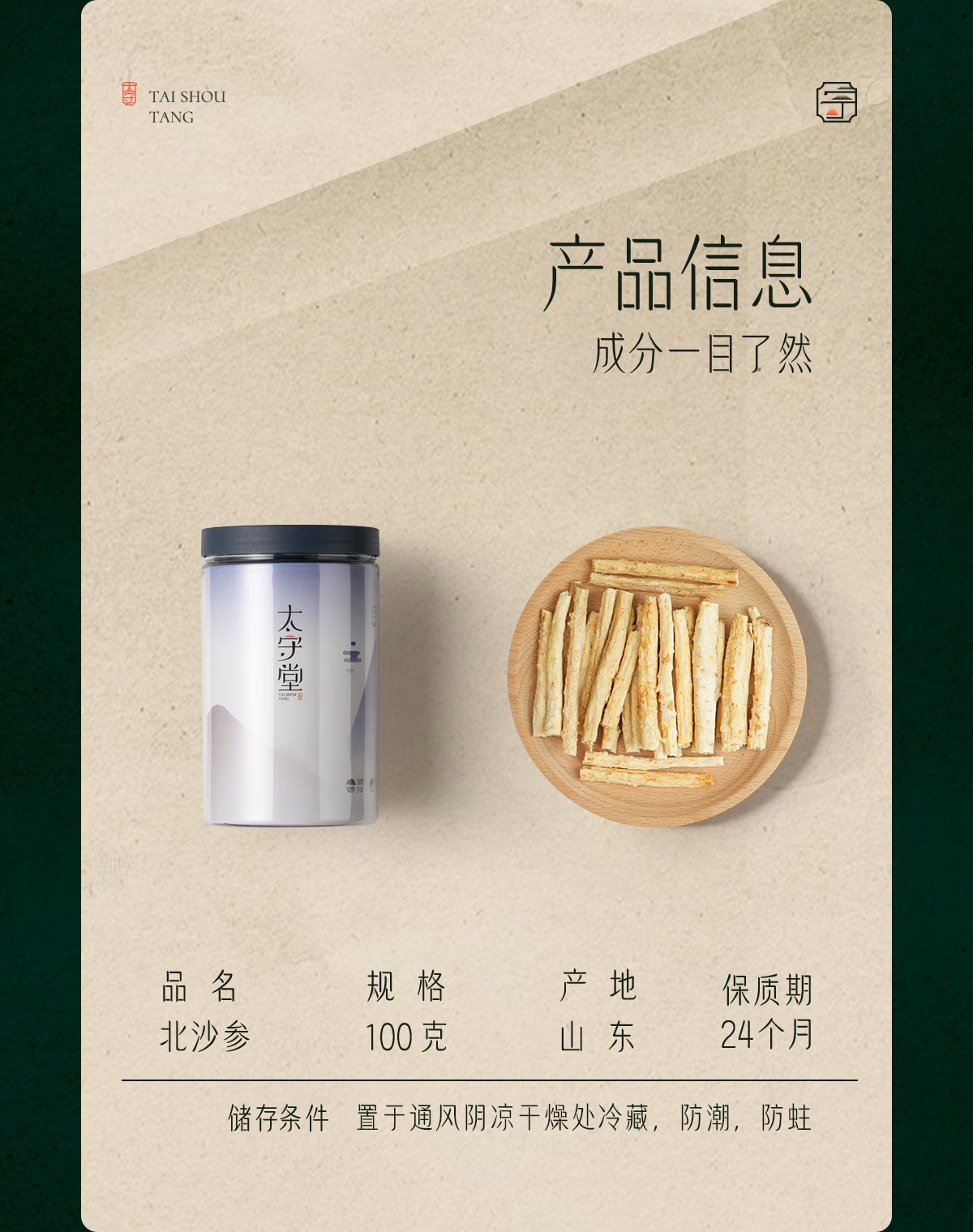 【节前停发 节后发货】太守堂 北沙参100克 精选沙参 干货山药枸杞煲汤材料沙参汤