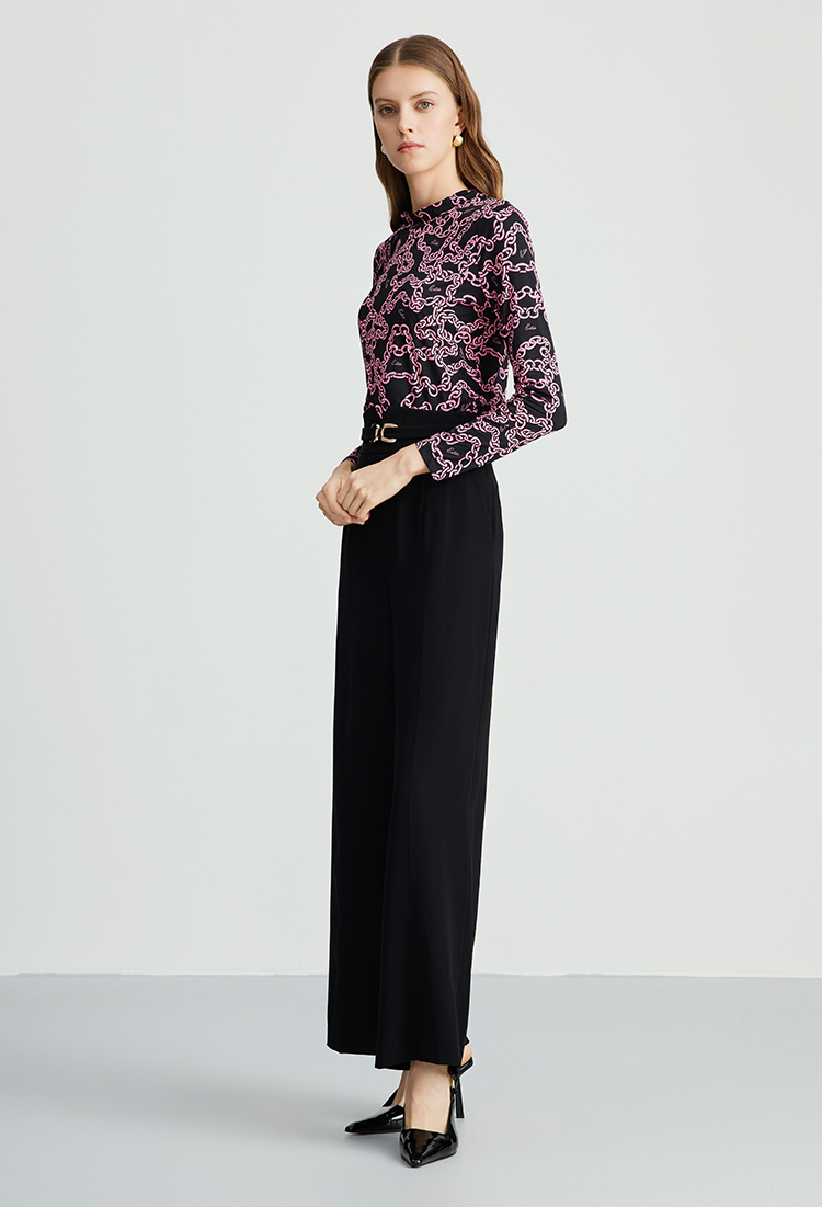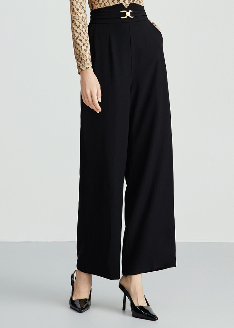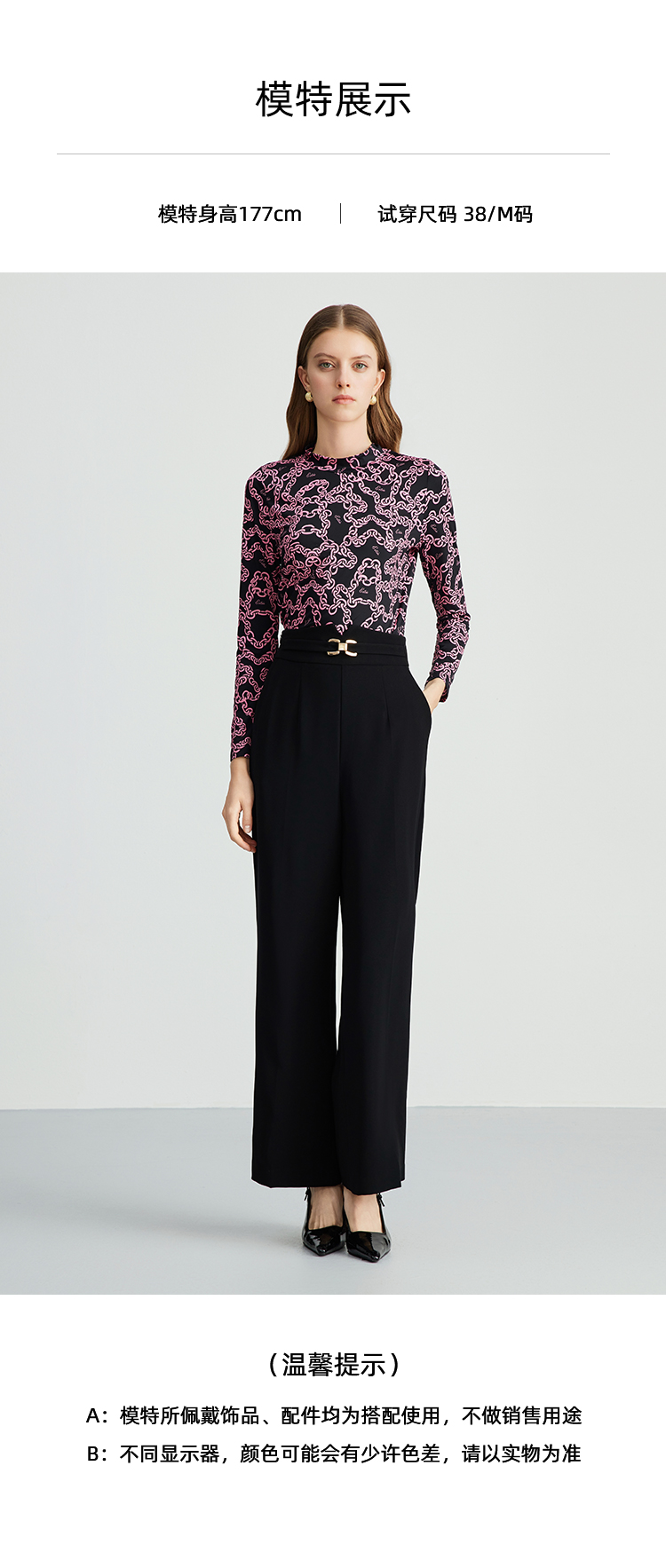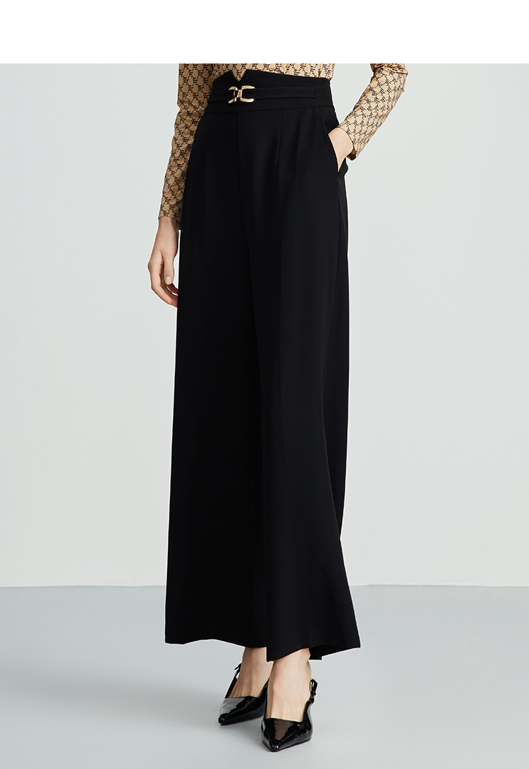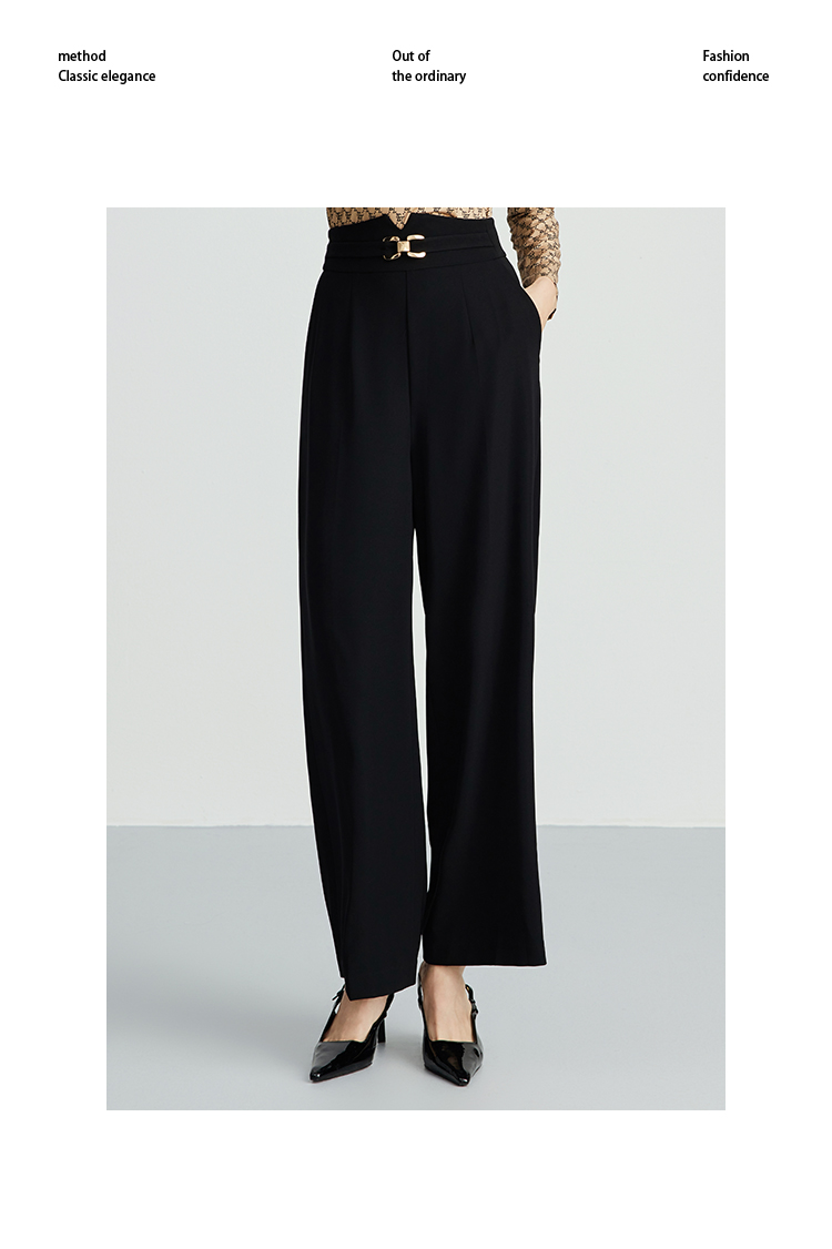EITIE爱特爱春新款高腰黑色通勤显瘦干练百搭直筒长裤休闲裤A2305103