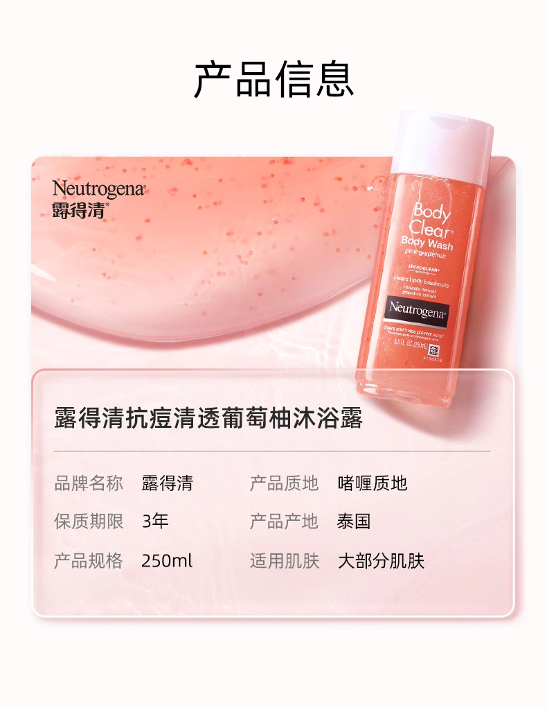 【保税直邮 江苏太仓】露得清Neutrogena 葡萄柚沐浴露250ml【新版泰国产】