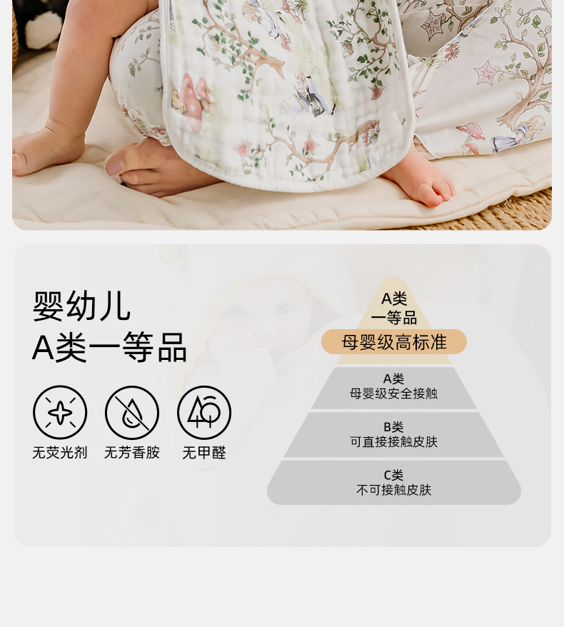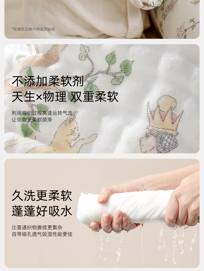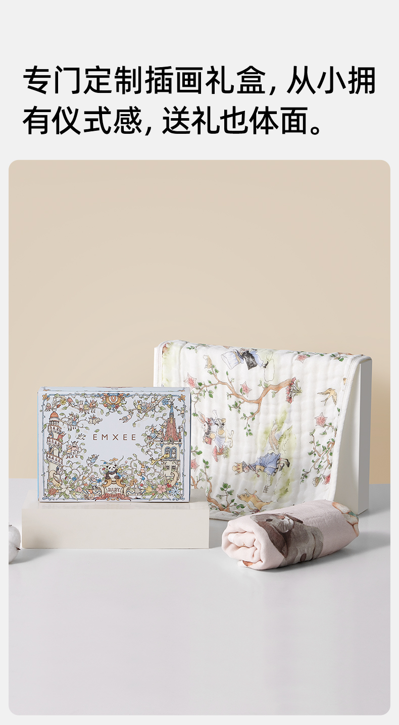 EMXEE嫚熙婴儿洗脸毛巾纯棉纱长巾儿童口水巾-H