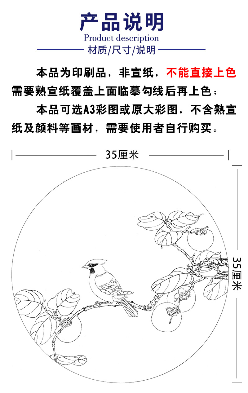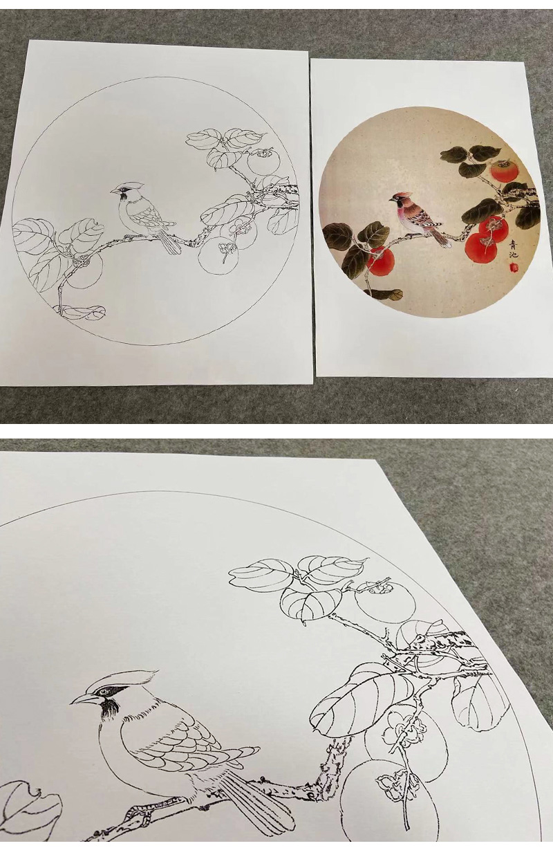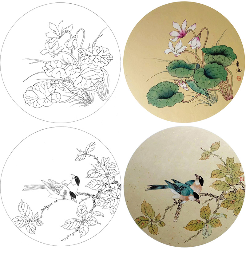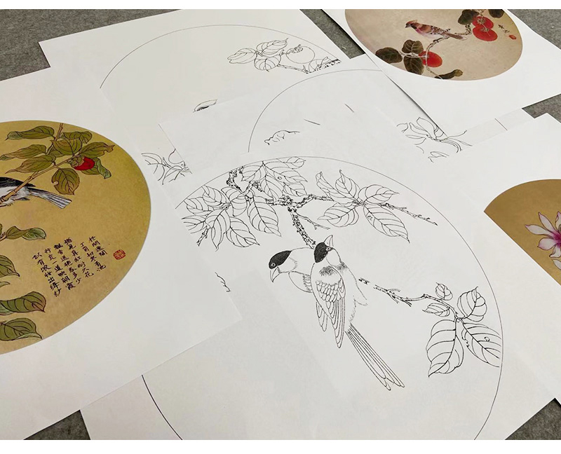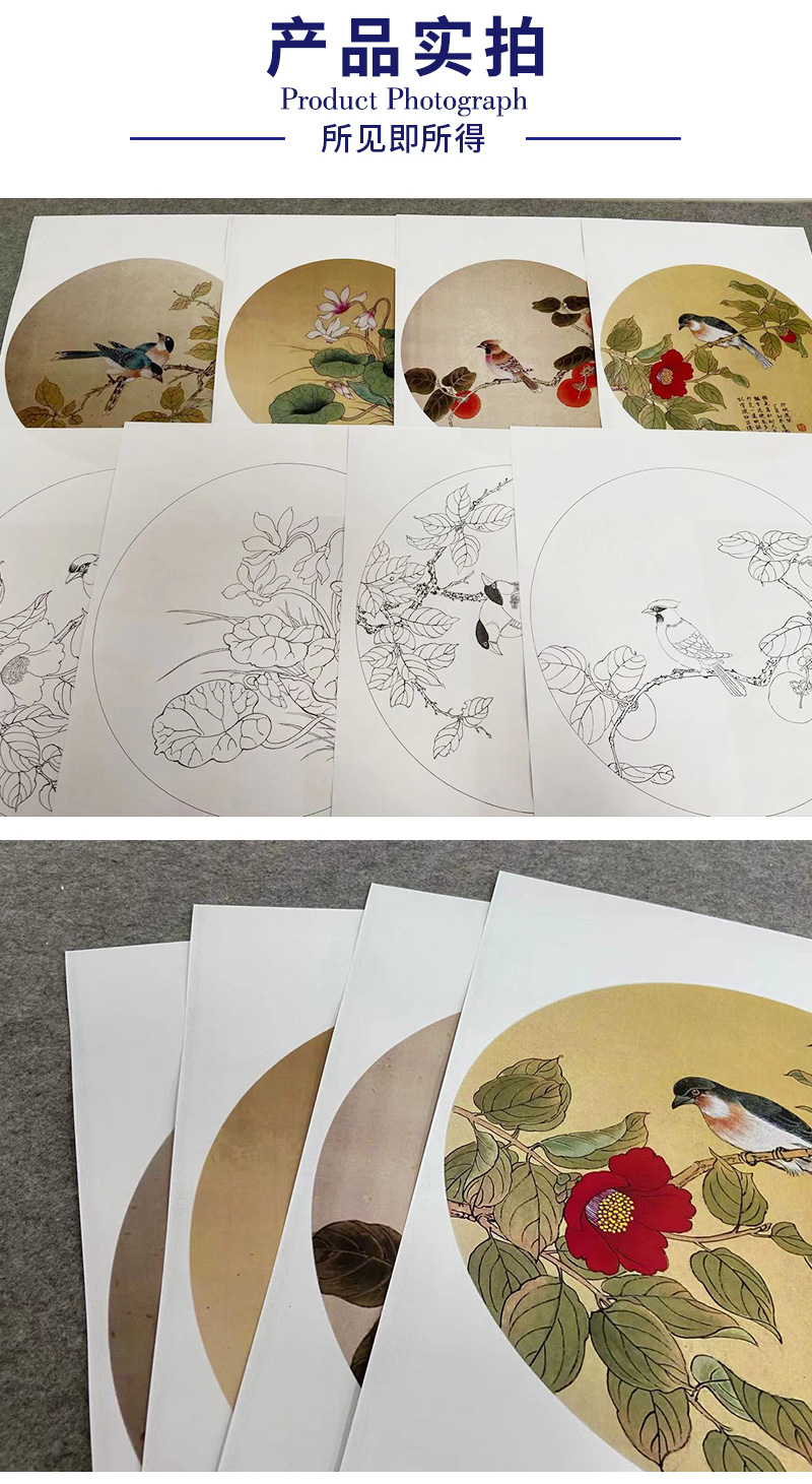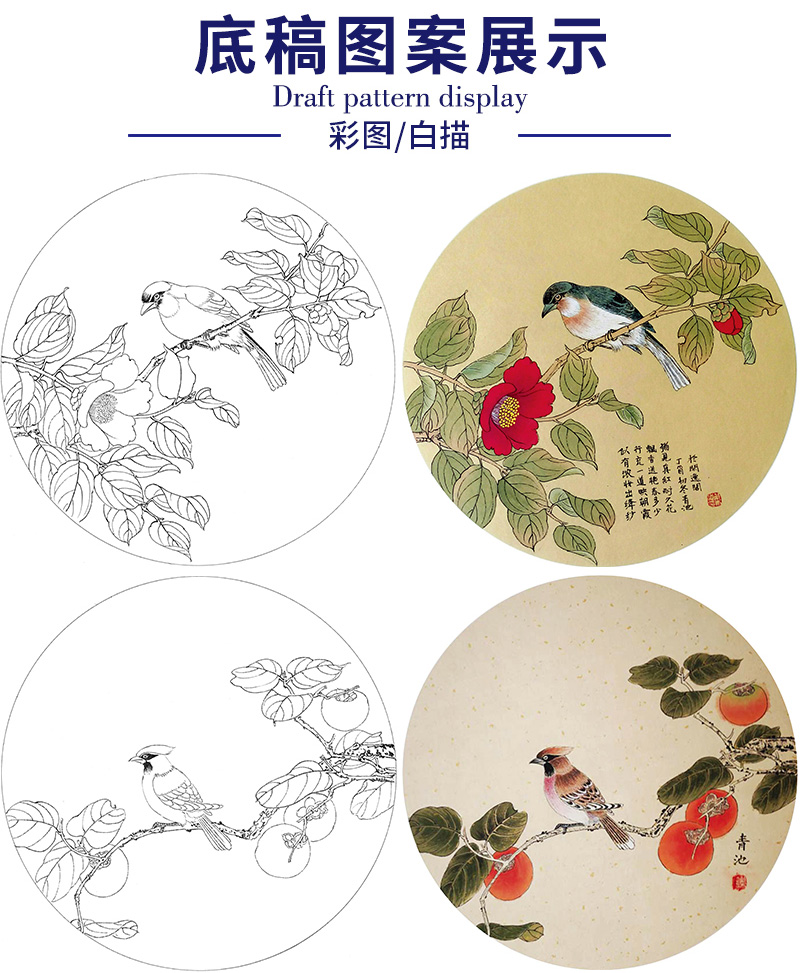 戴青池工笔画白描底稿荷花一套四幅初学者尺寸35*35厘米TD06
