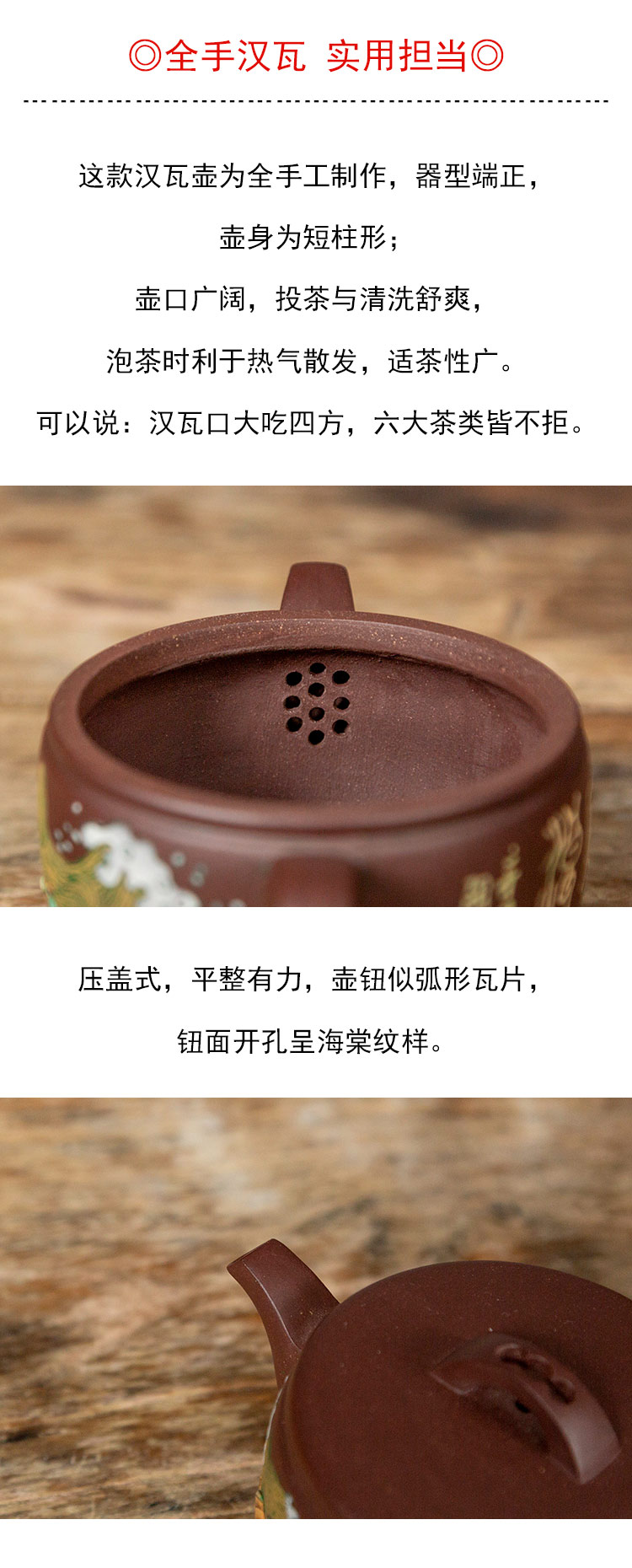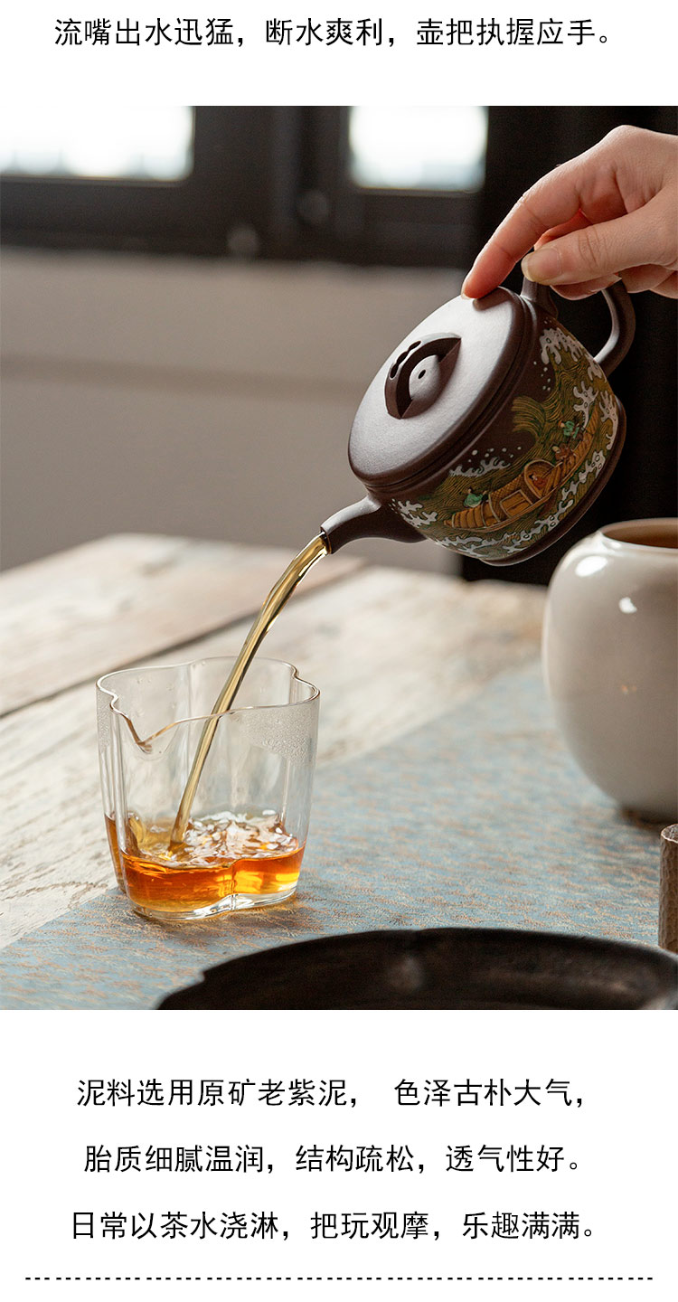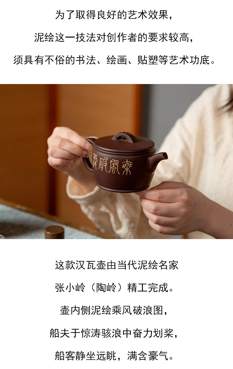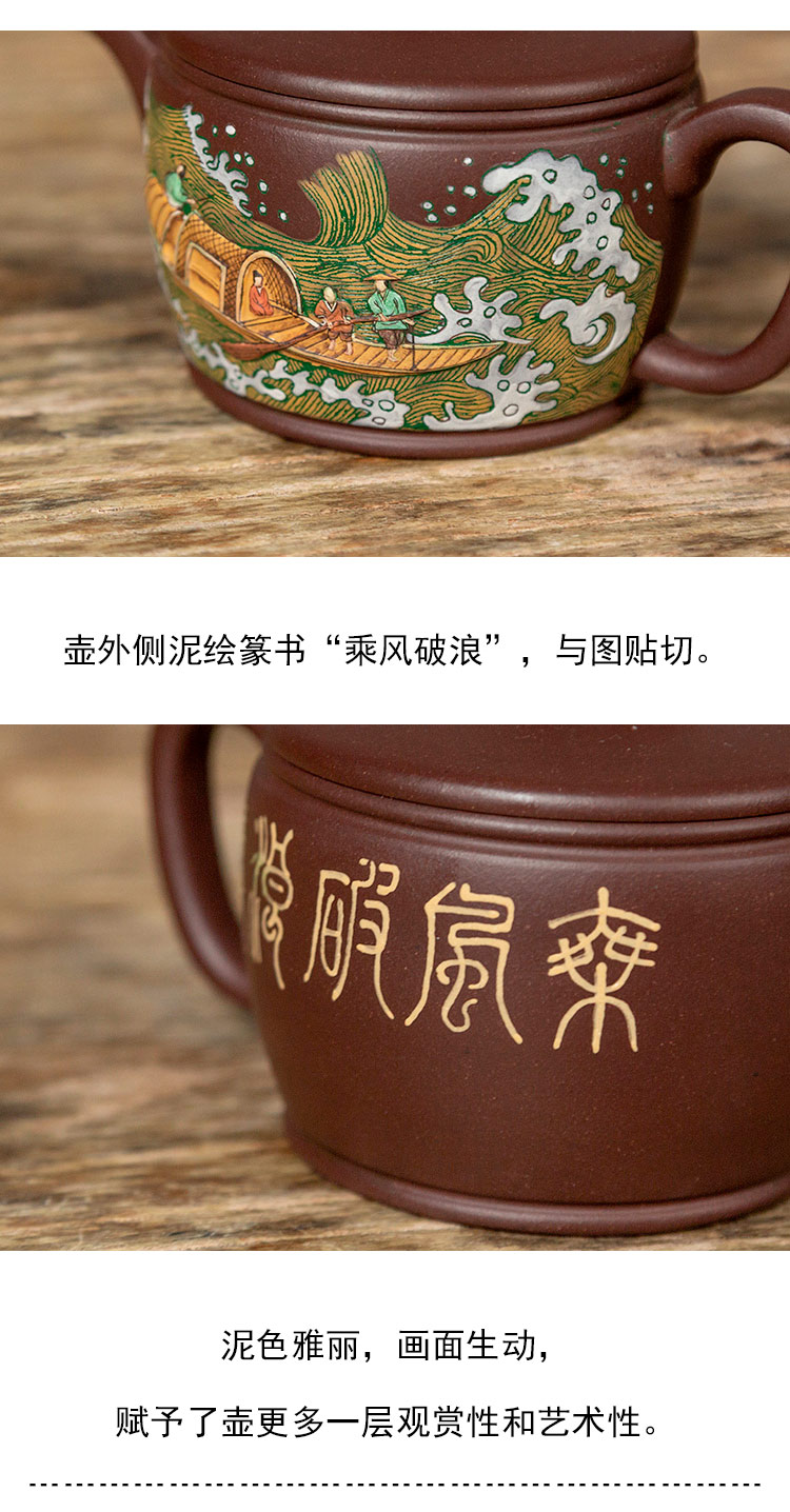 茶香记 老紫泥泥绘全手汉瓦 紫砂壶 雅丽生动 实用担当 泡茶壶