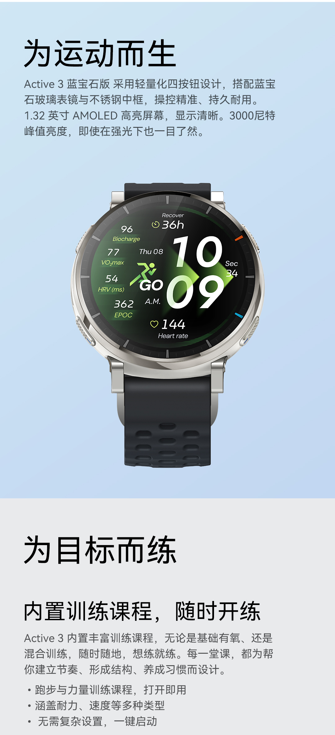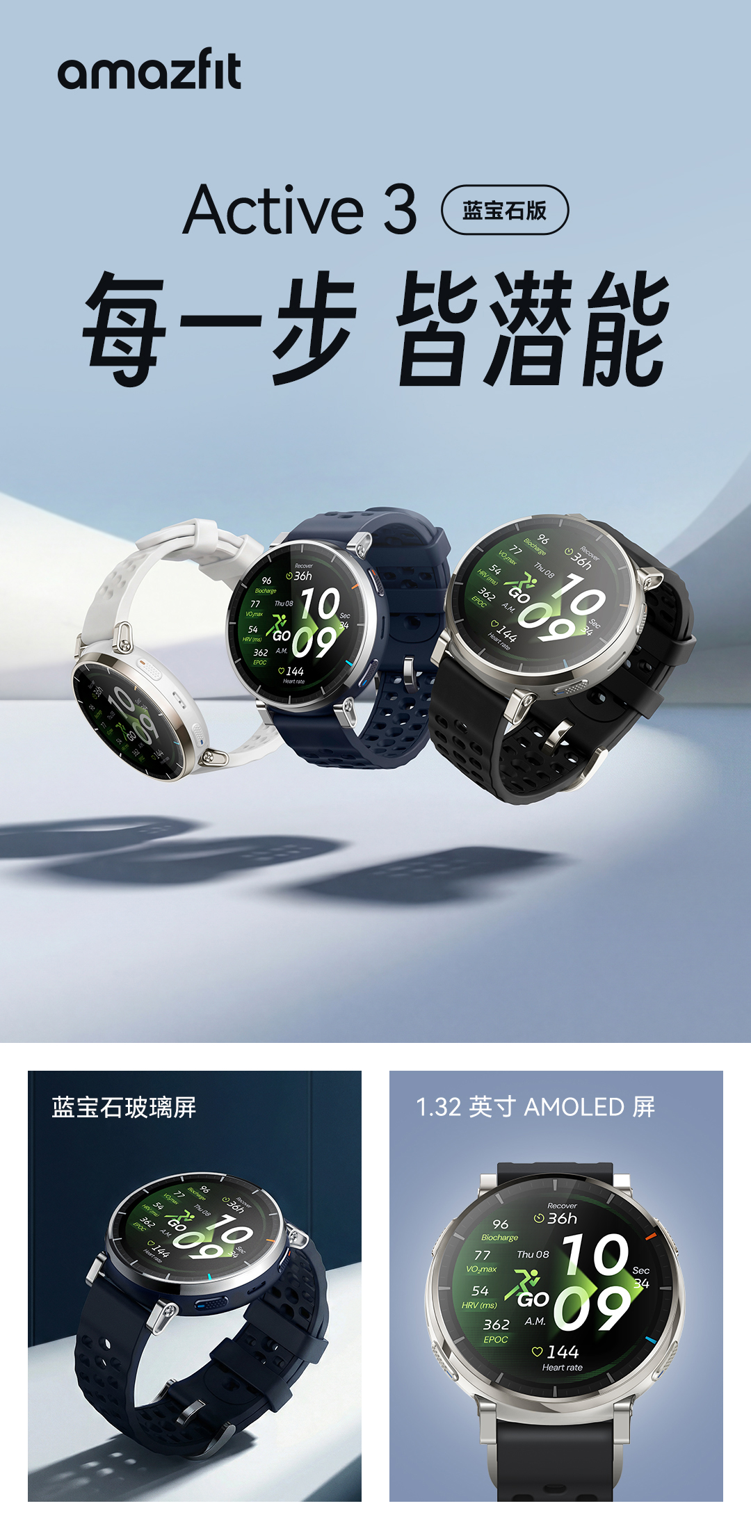 华米 Active 3 蓝宝石版 HYROX混合训练跑步智能运动手表 晒单返 50 元