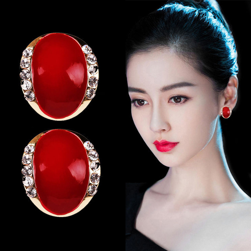 JU-AX20112新款耳环个性弧形红色耳钉女韩国超仙复古合金耳饰