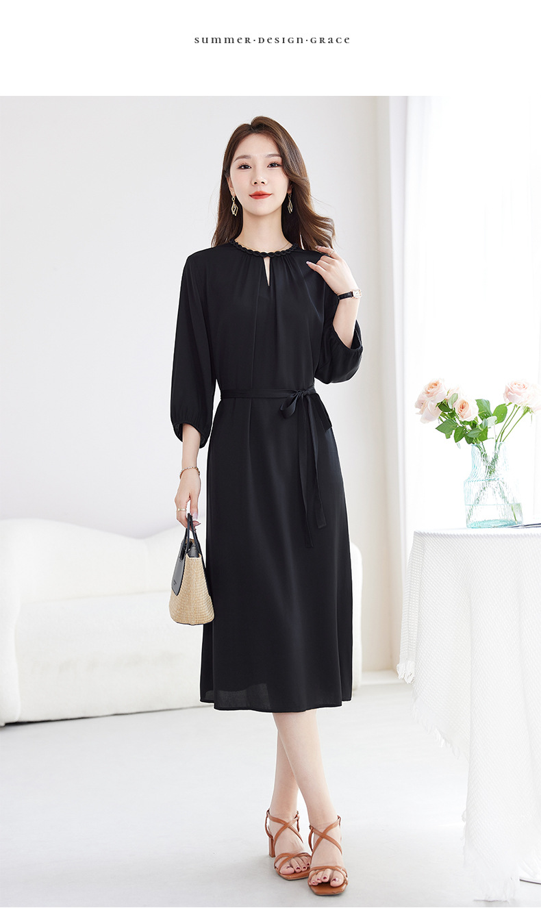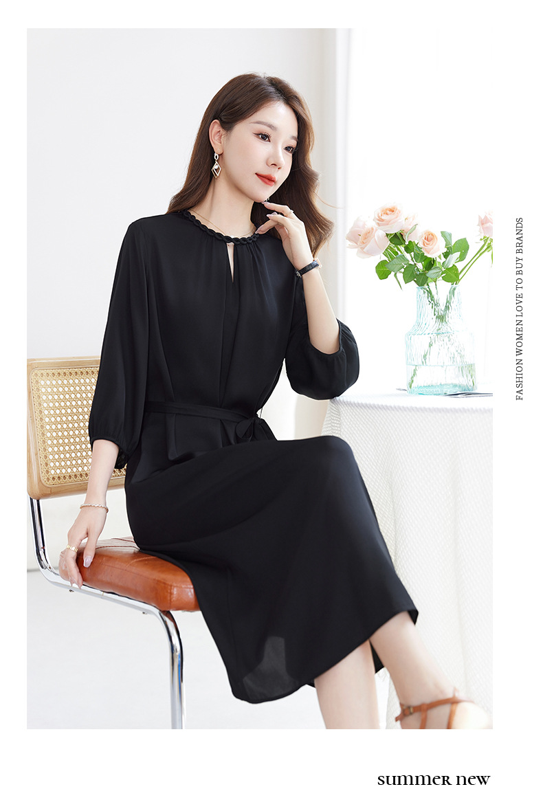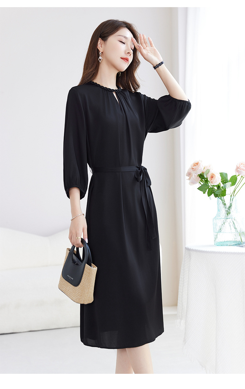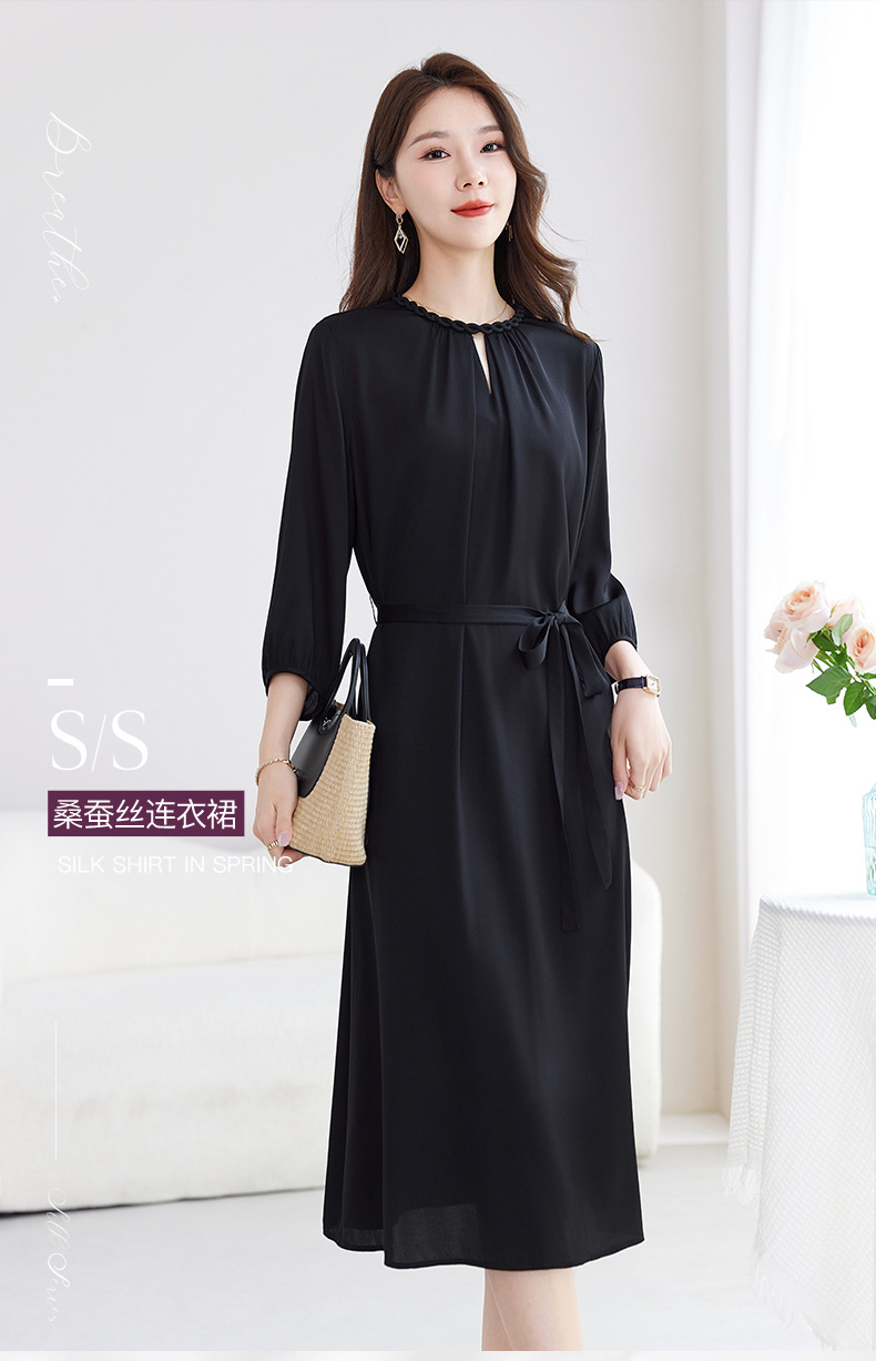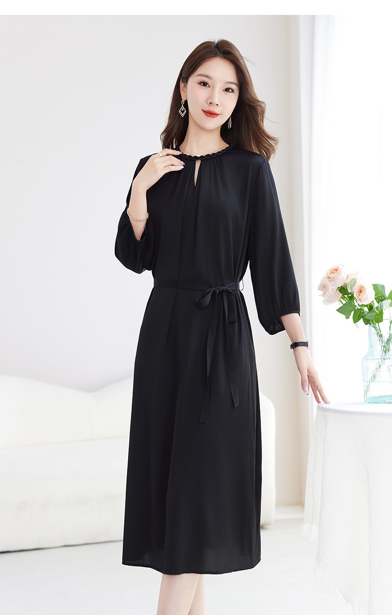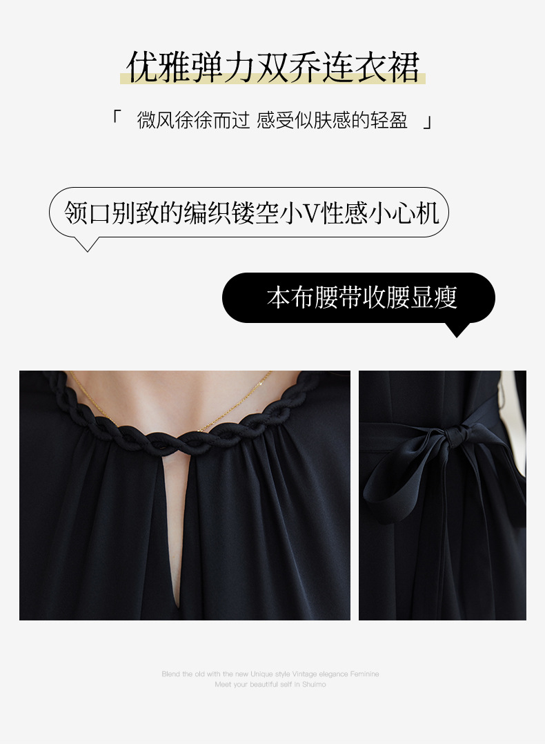 QS-82599988【素色轻奢】高端原创真丝连衣裙女夏季弹力双乔桑蚕丝中长裙9988