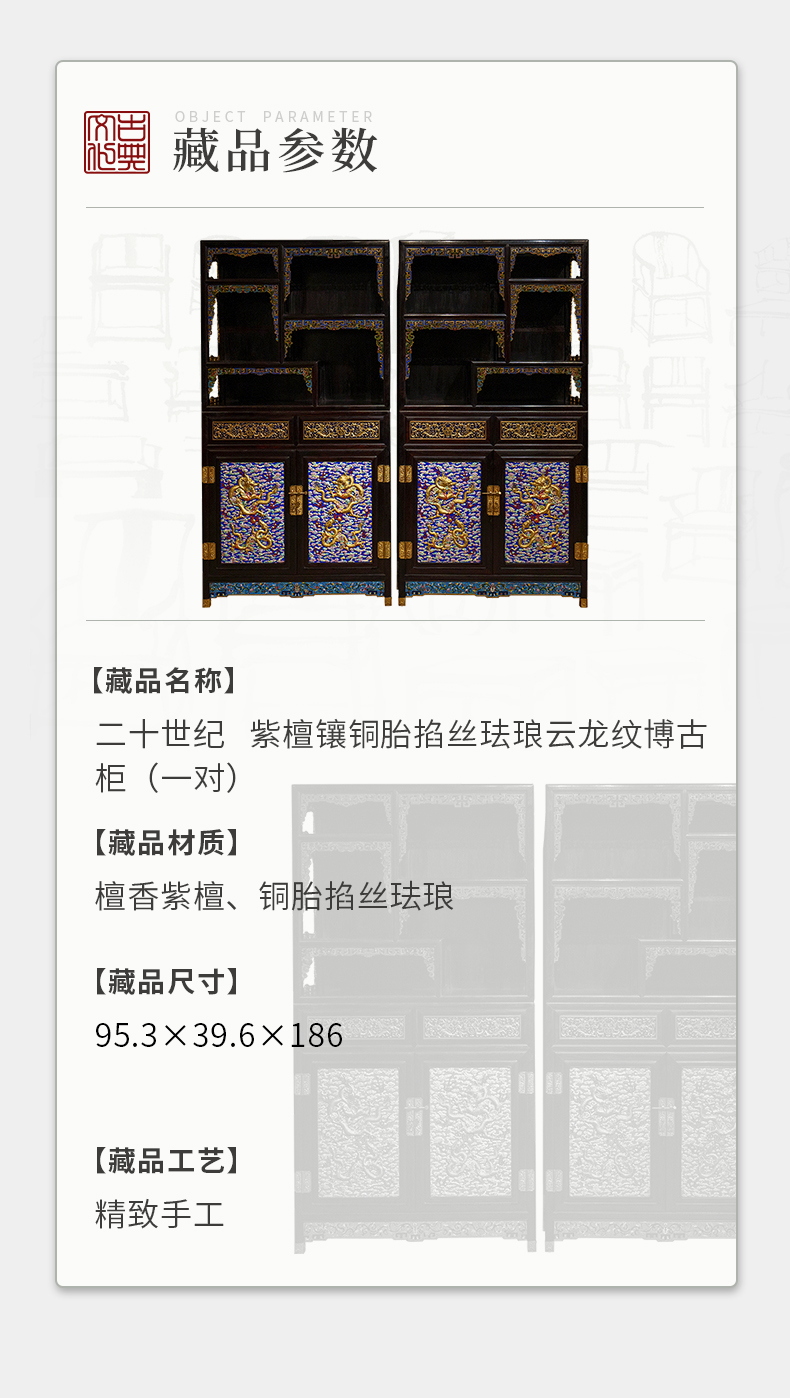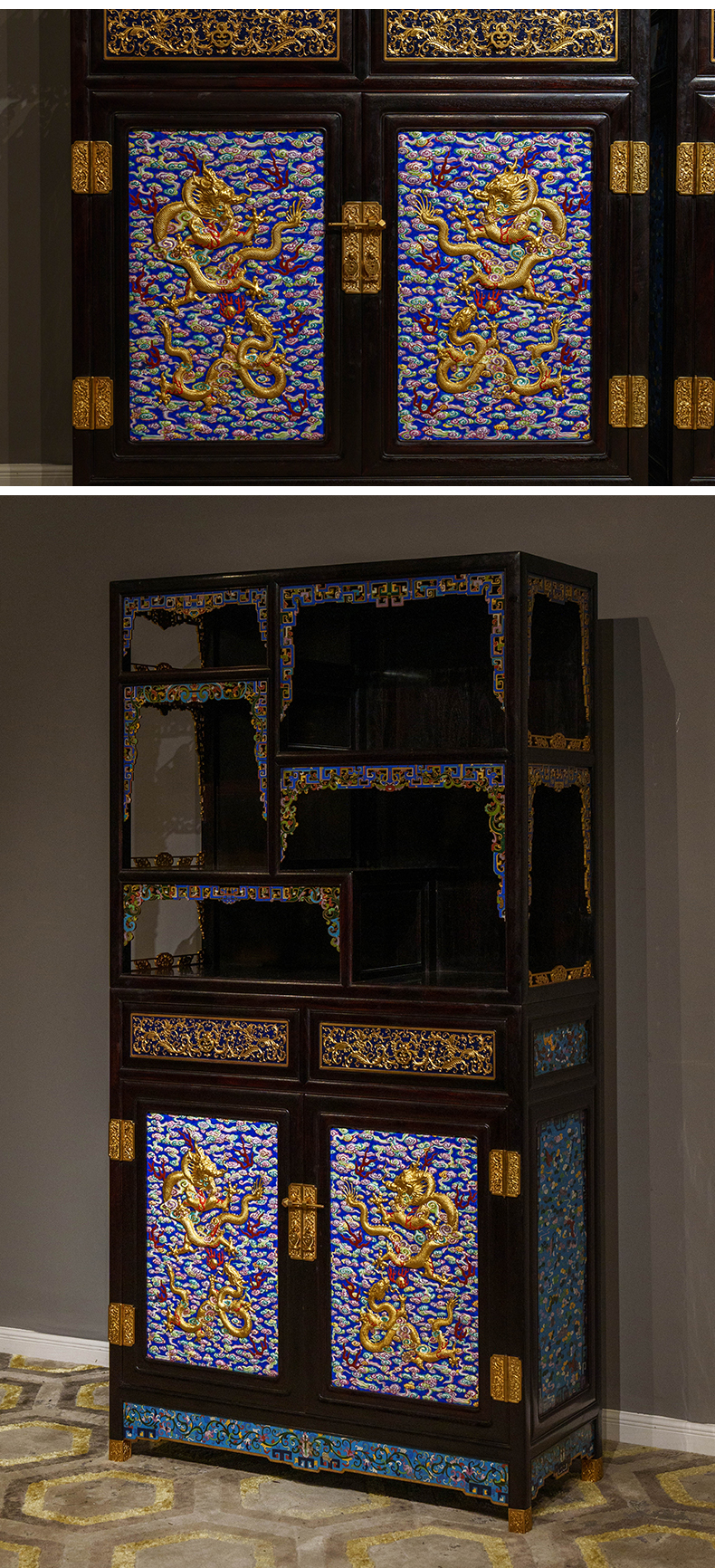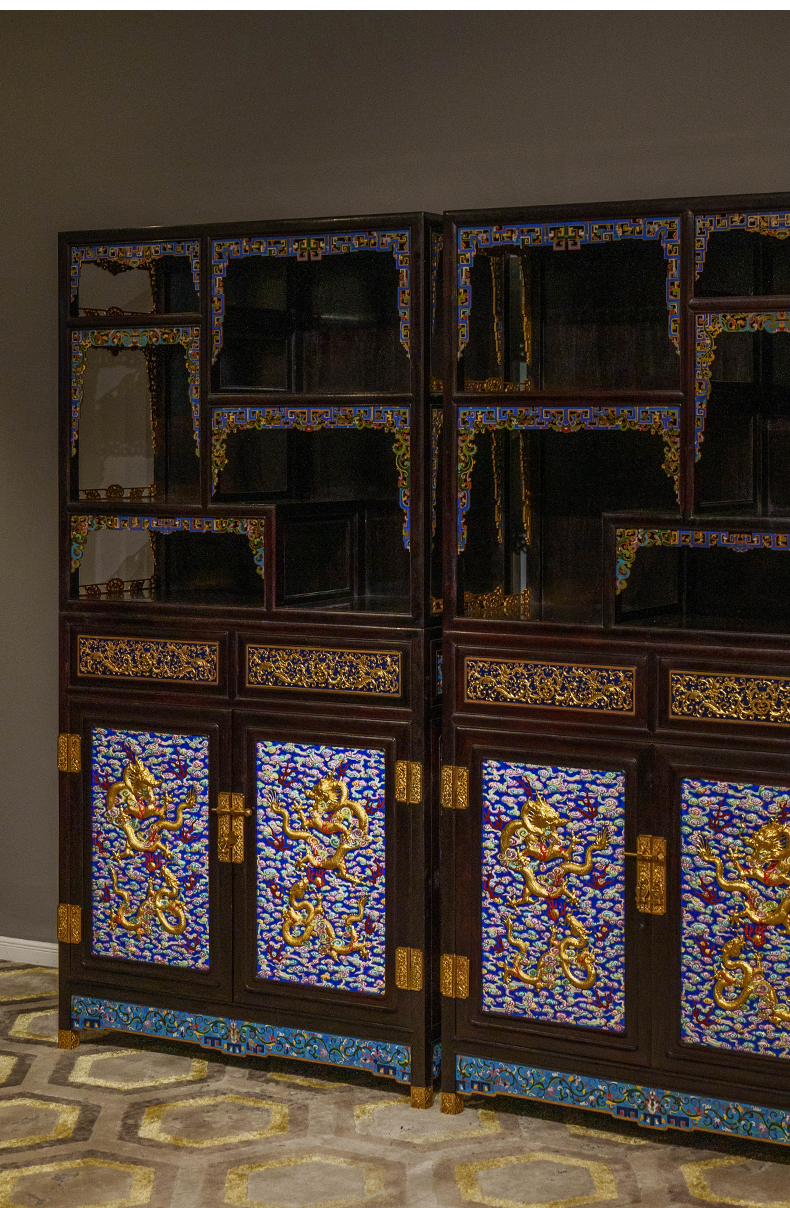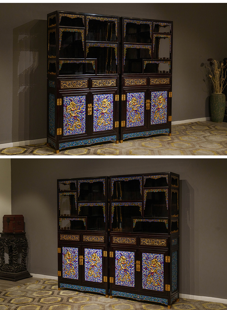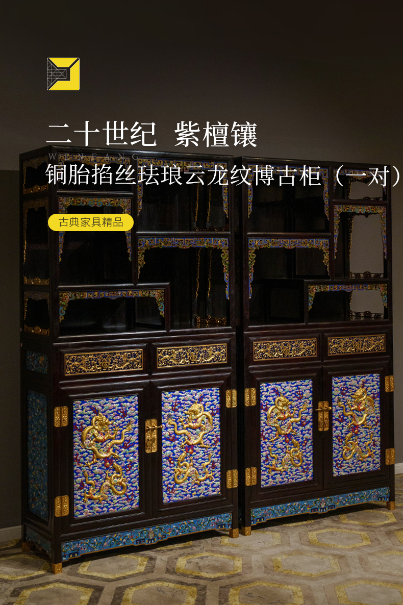 二十世纪 紫檀镶铜胎掐丝珐琅云龙纹博古柜(一对)