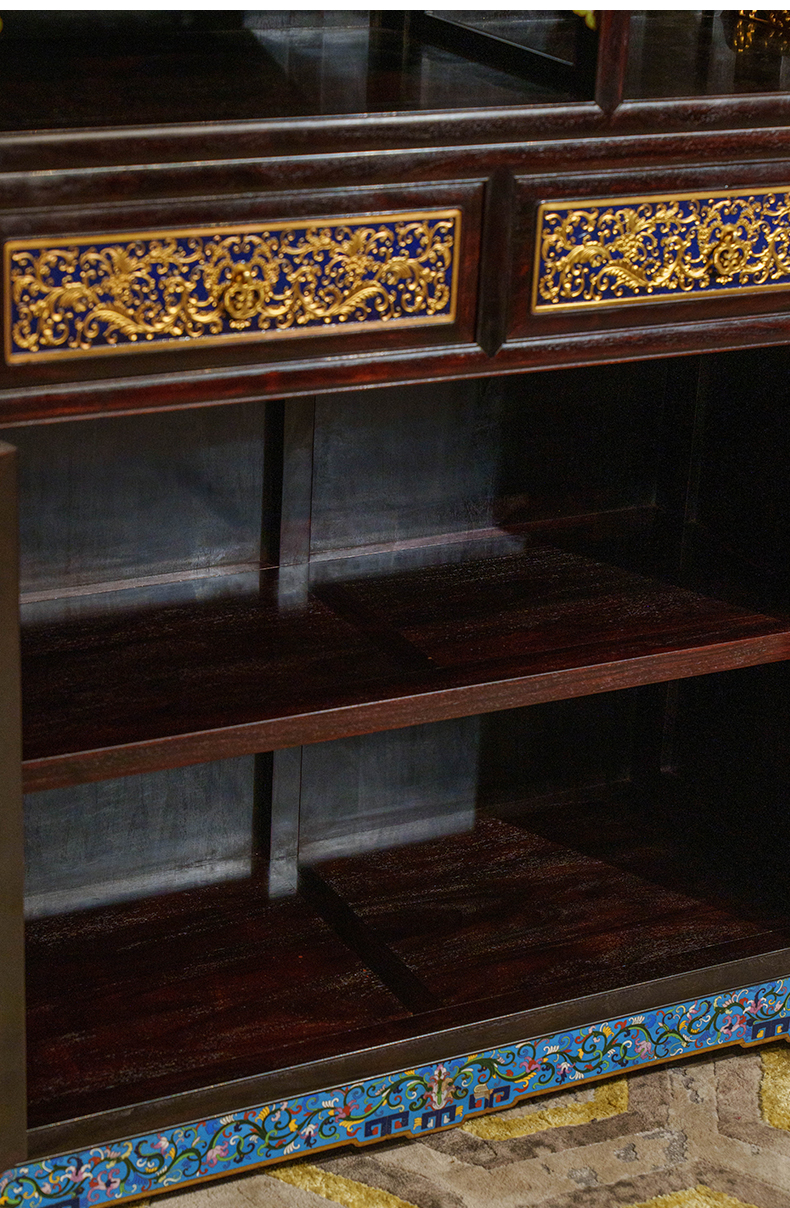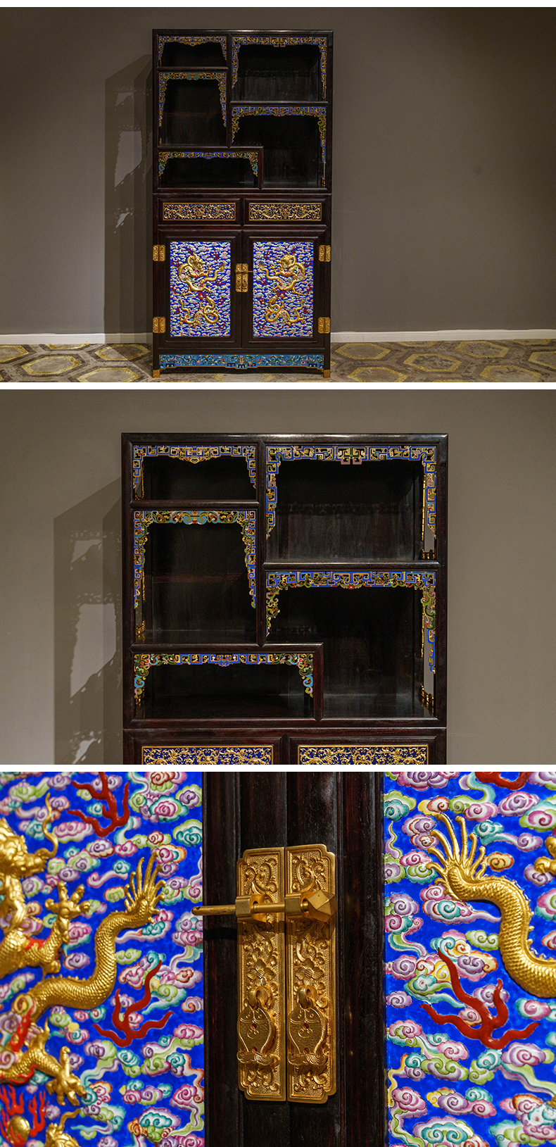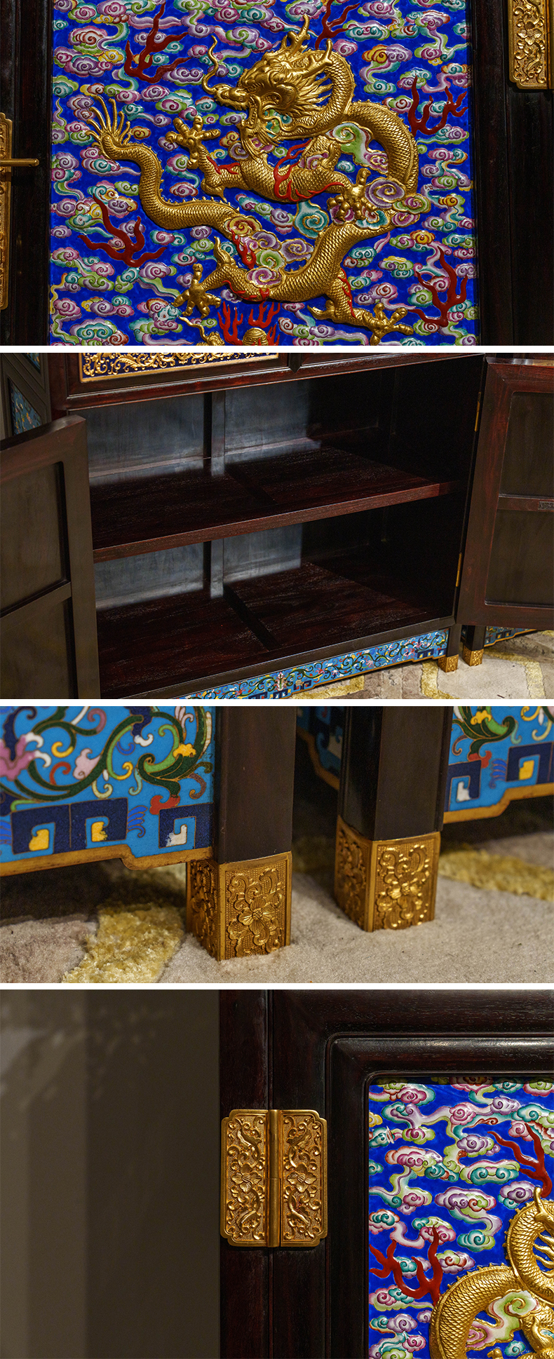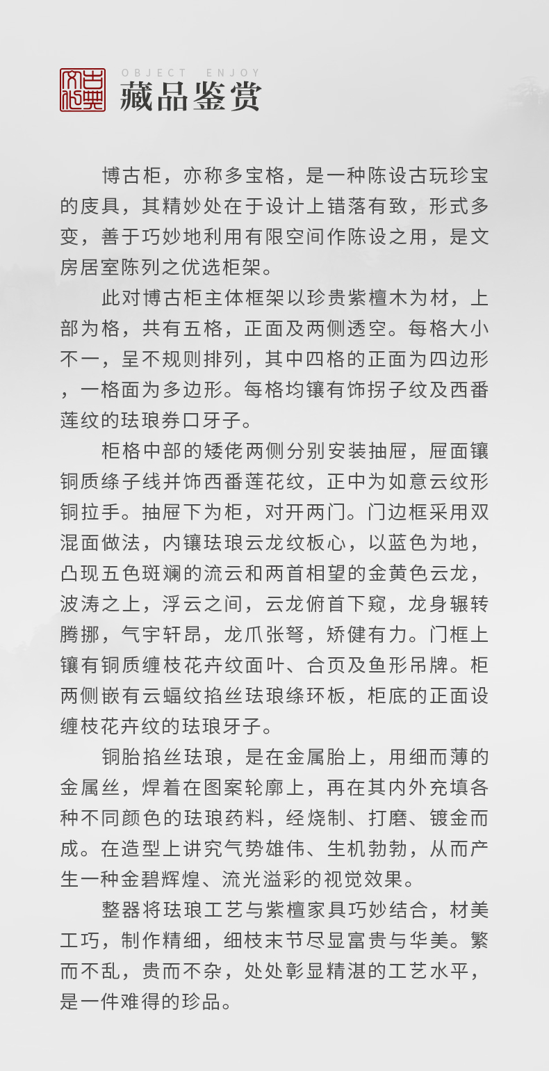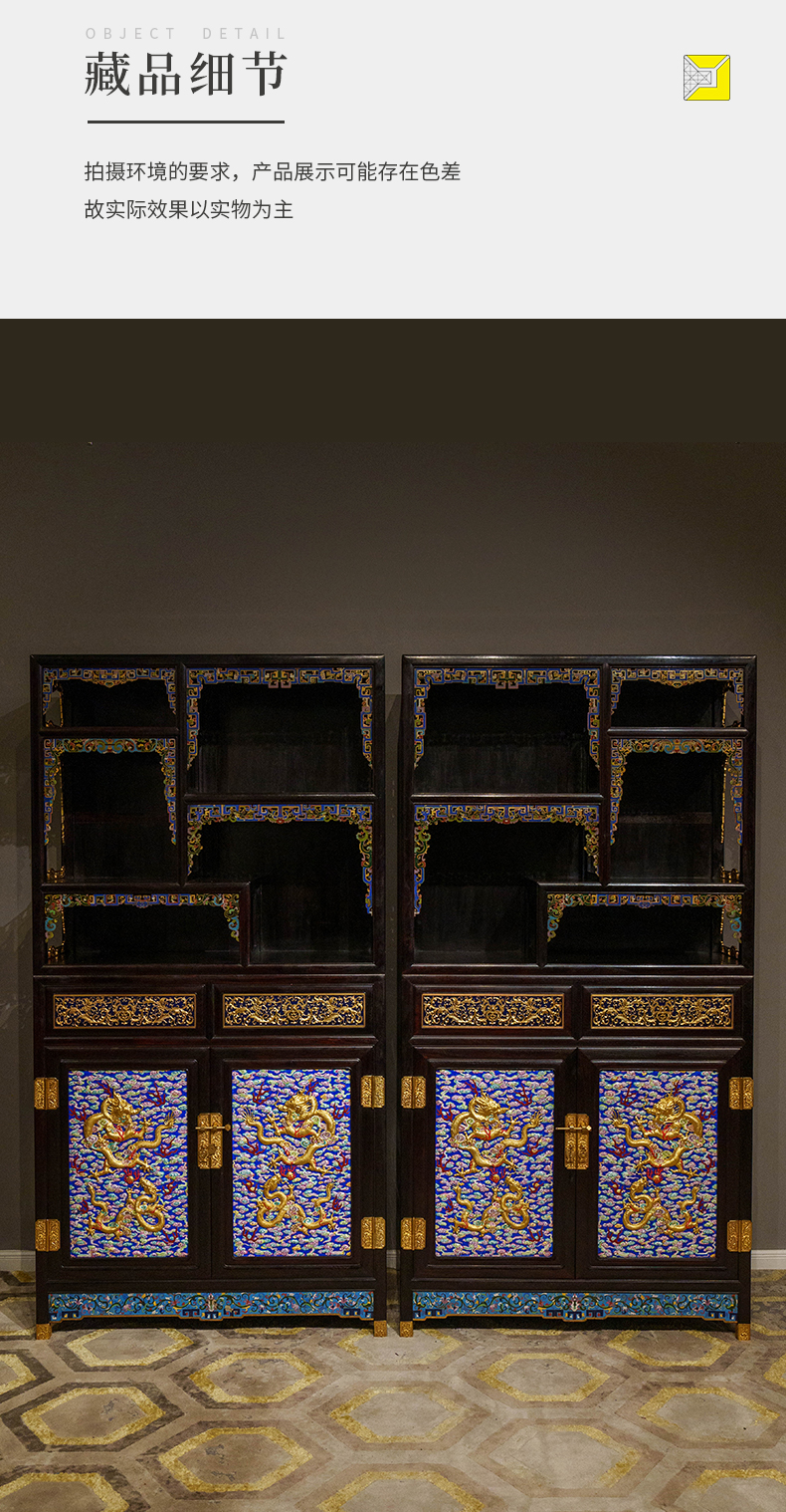 二十世纪 紫檀镶铜胎掐丝珐琅云龙纹博古柜(一对)