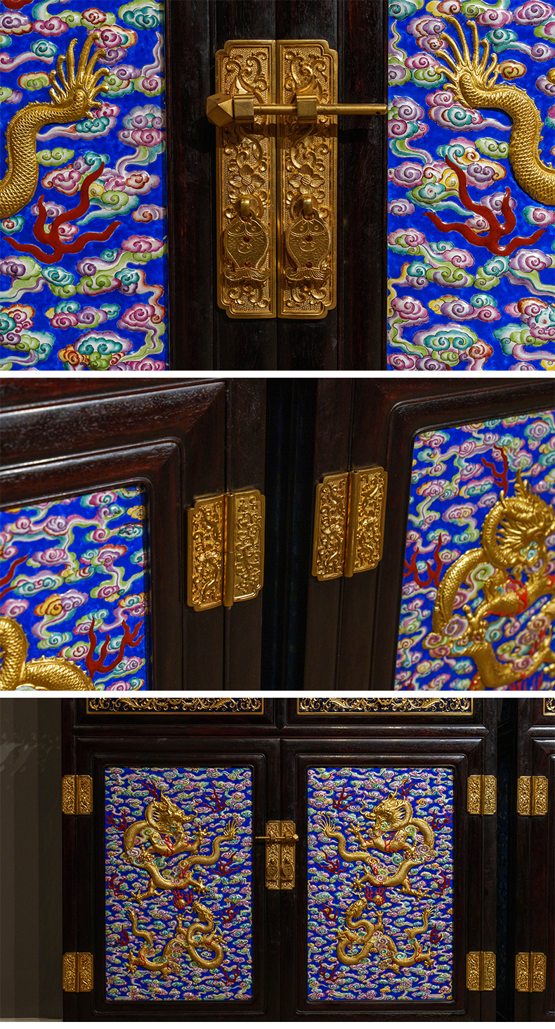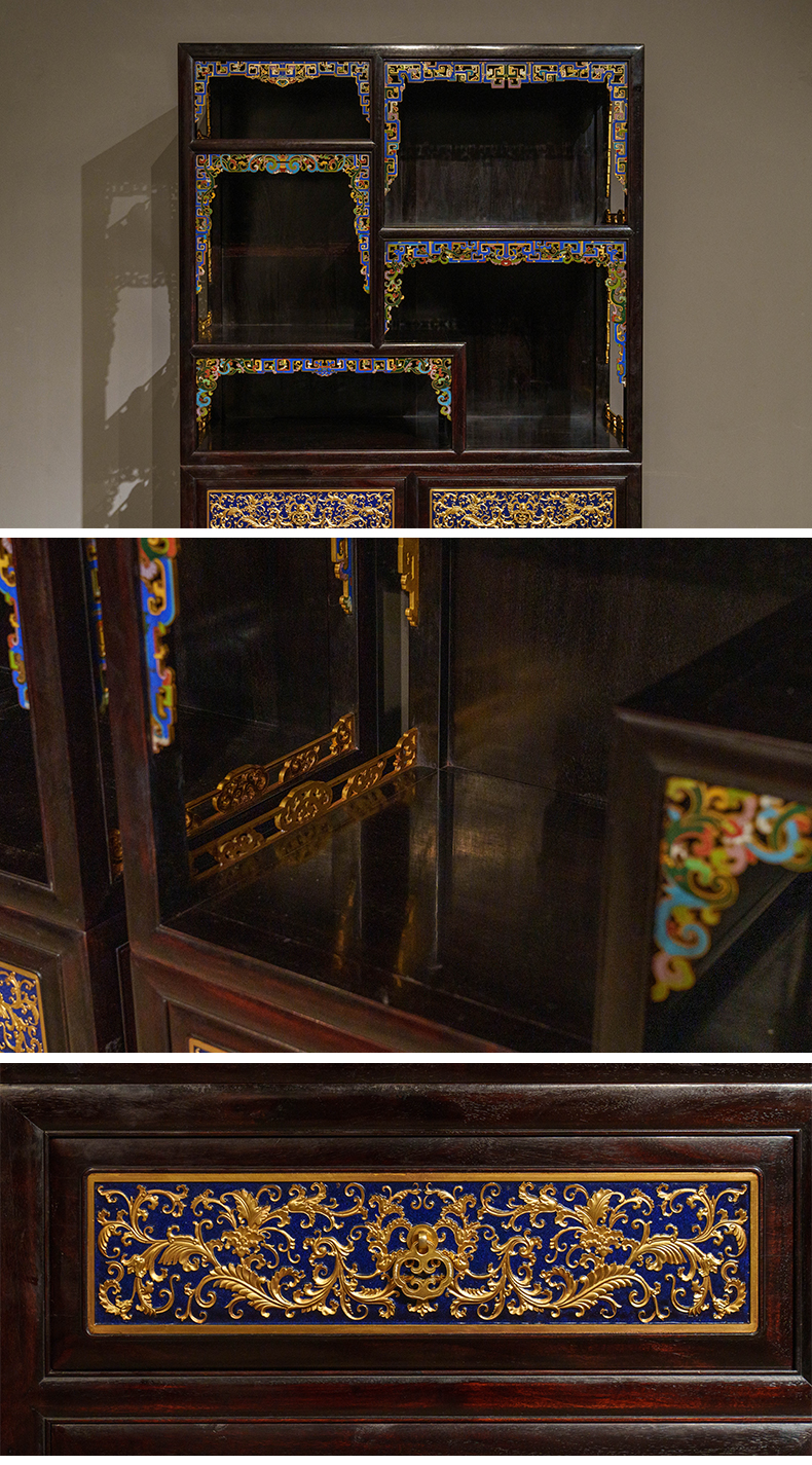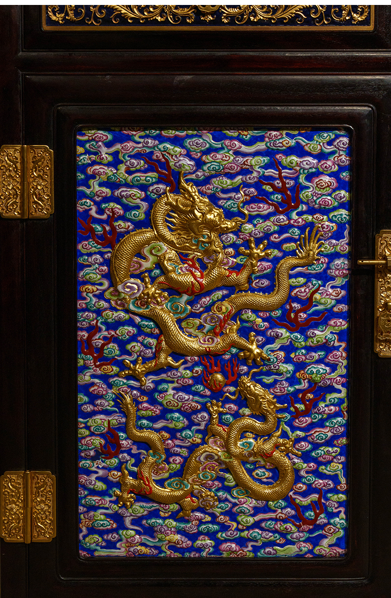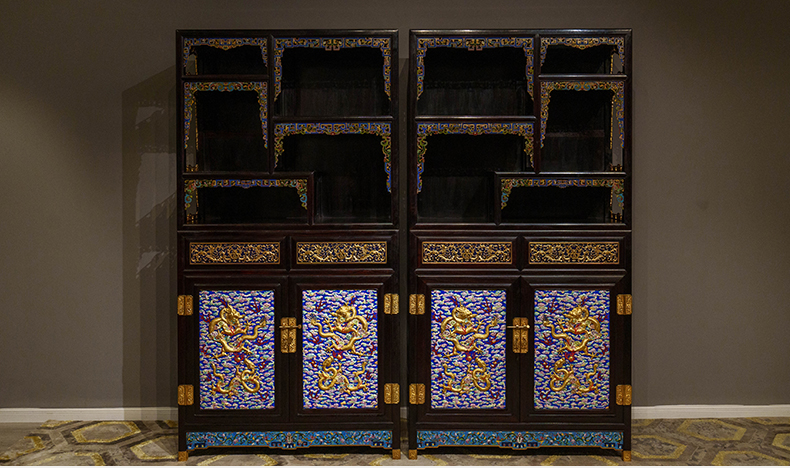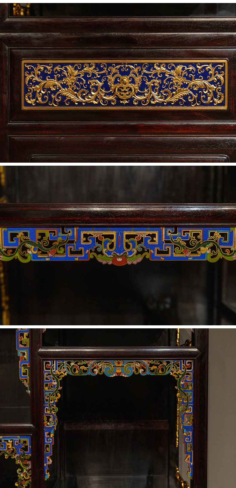 二十世纪 紫檀镶铜胎掐丝珐琅云龙纹博古柜(一对)