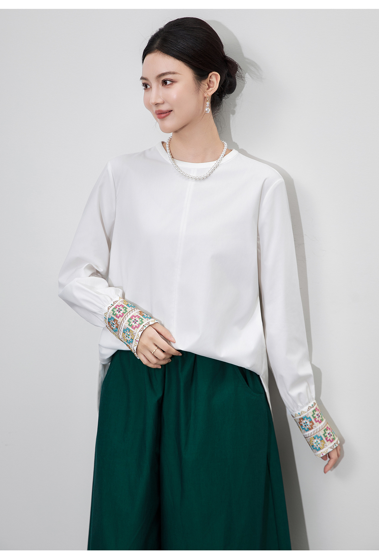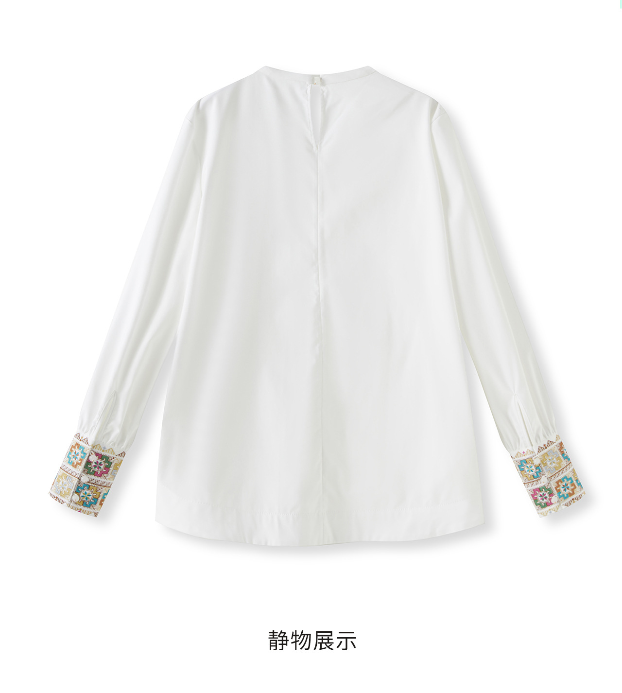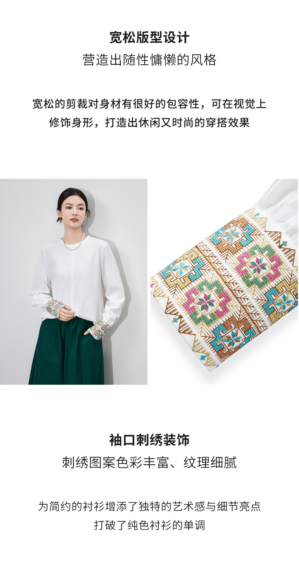「高货wl」全新升级【铂金会员321/天猫429/差价108】(15328)洛诗琳新中式国风袖口刺绣衬衫2025秋季宽松圆领通勤上衣