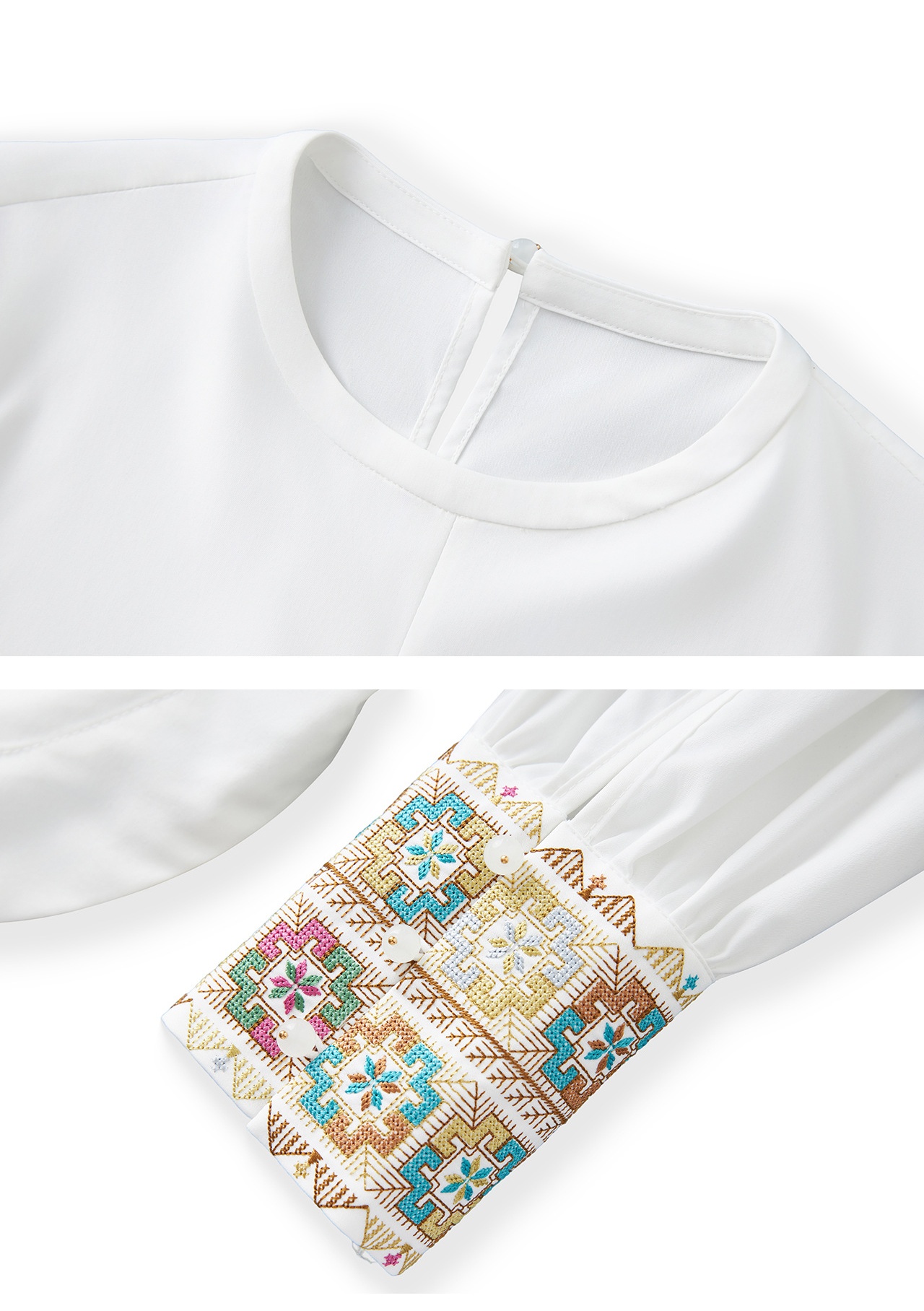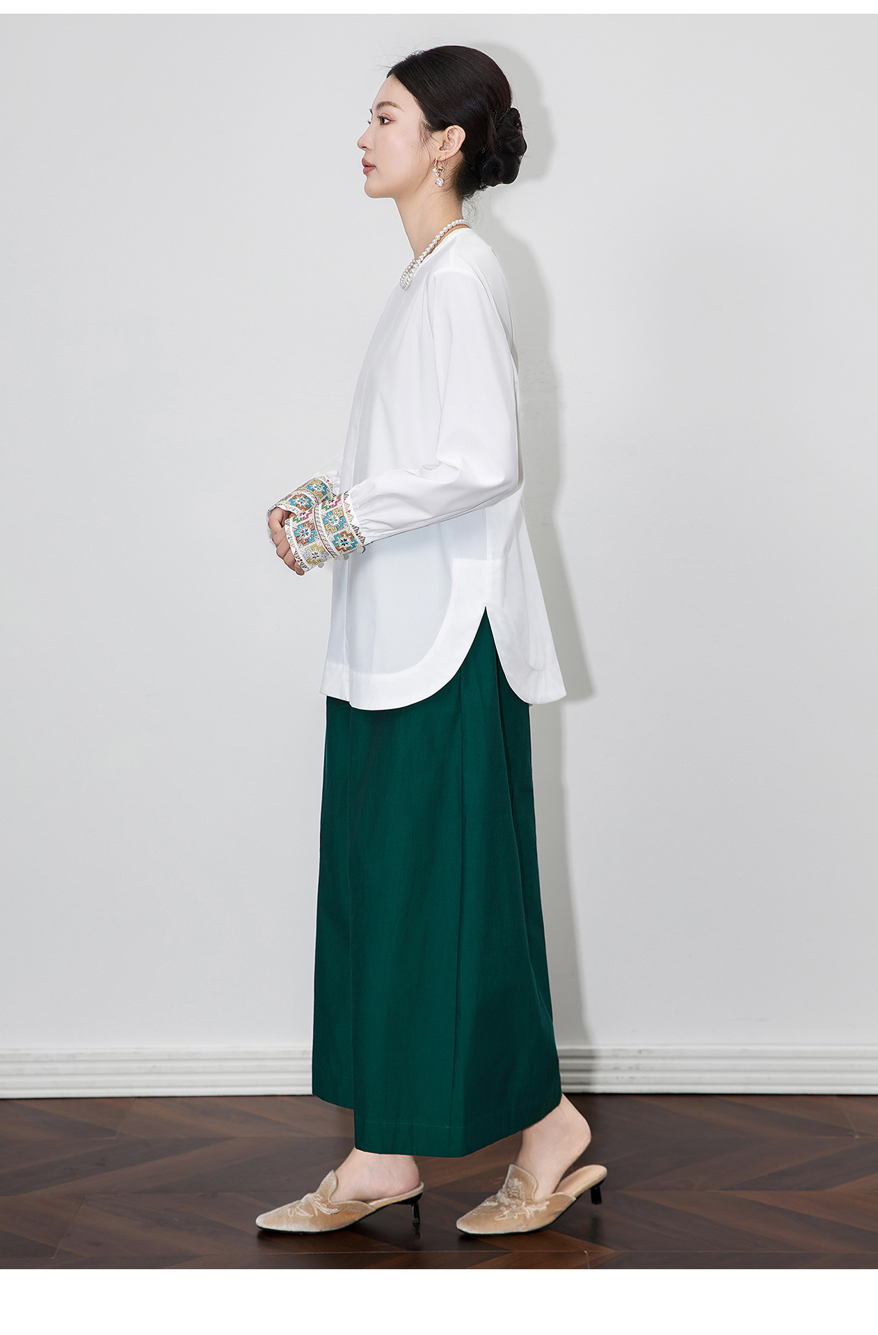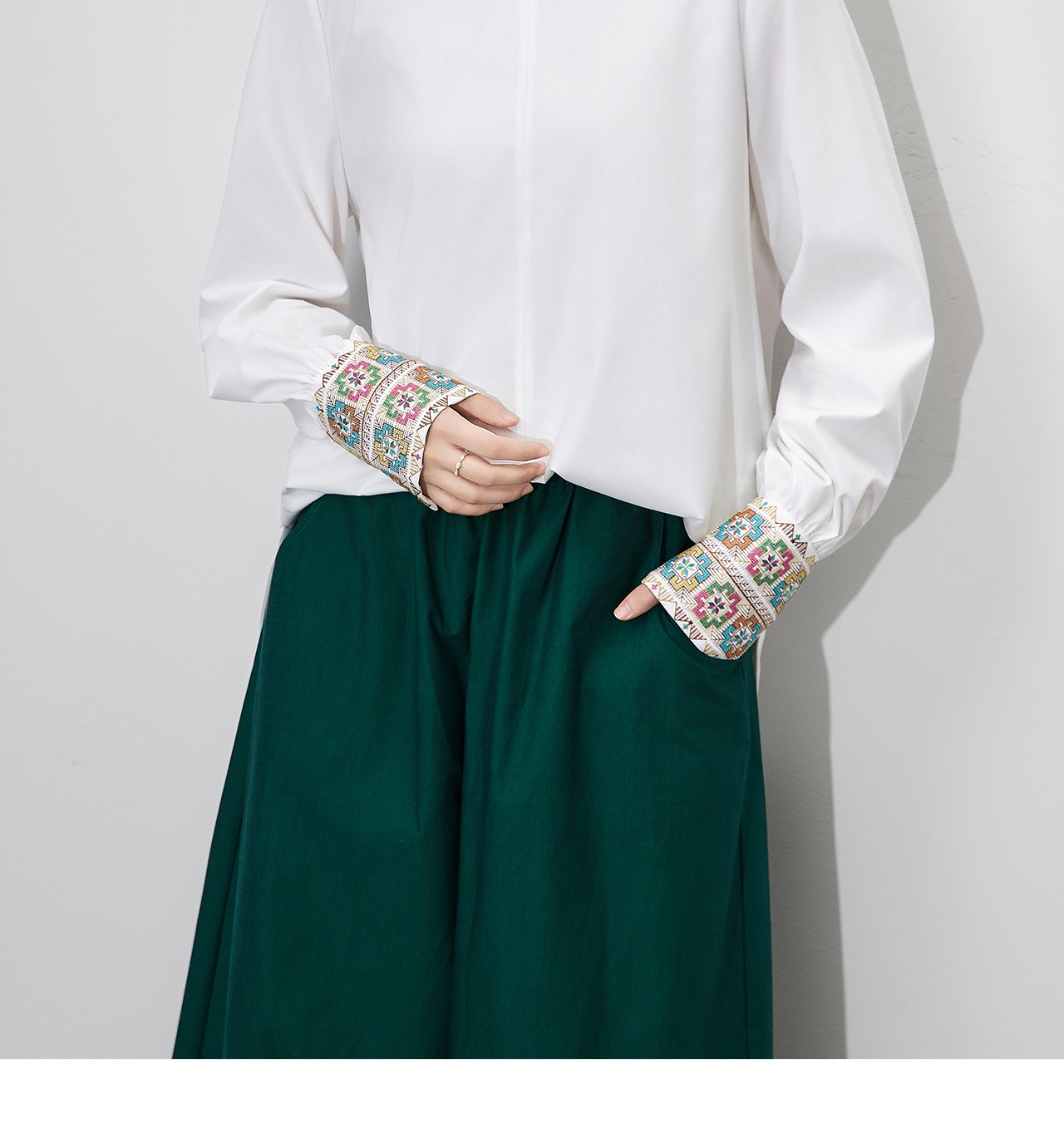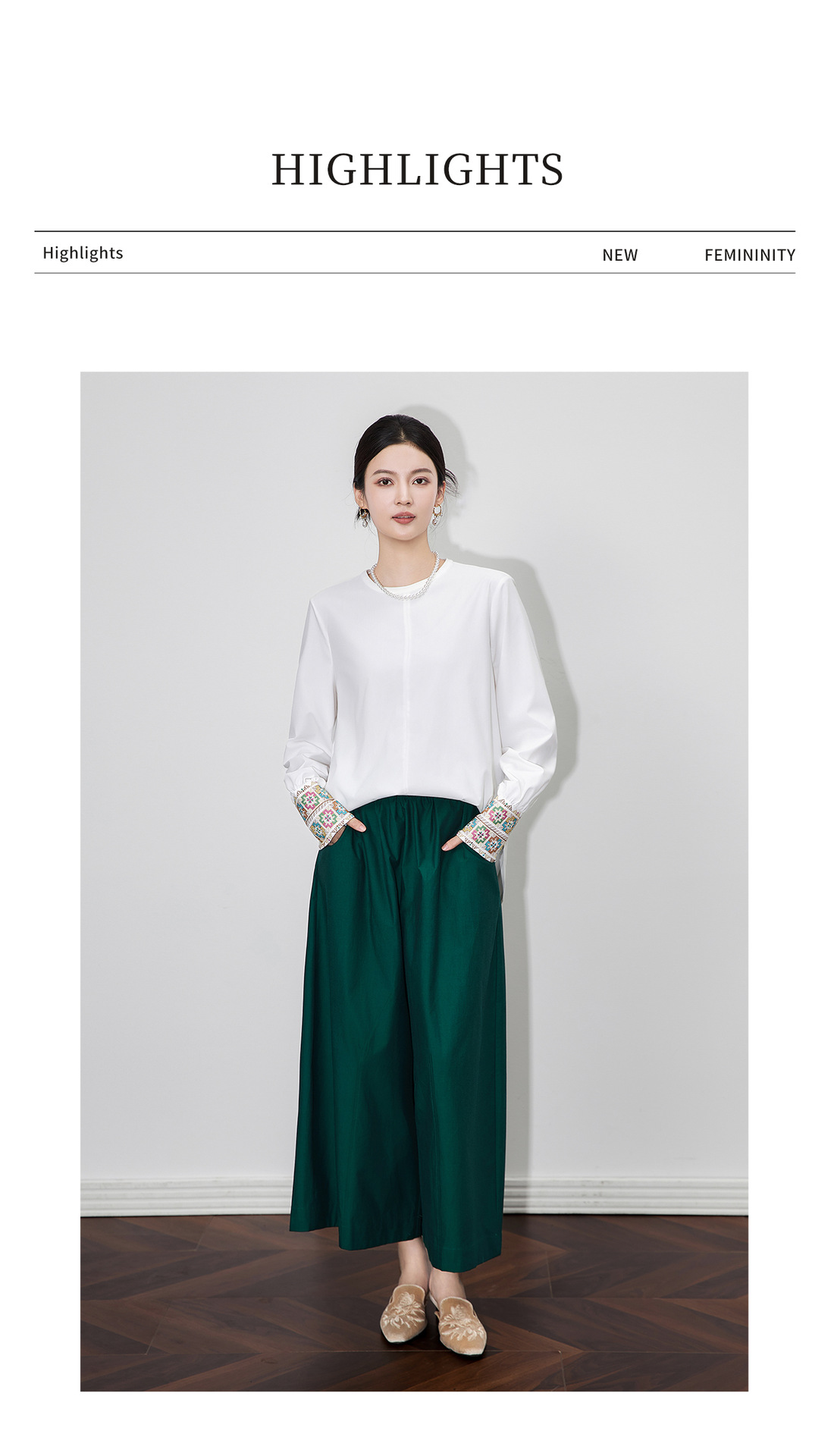 「高货wl」全新升级【铂金会员321/天猫429/差价108】(15328)洛诗琳新中式国风袖口刺绣衬衫2025秋季宽松圆领通勤上衣