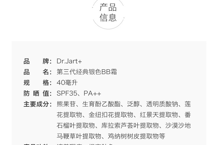 Dr.Jart+蒂佳婷 经典银色BB霜 40ml