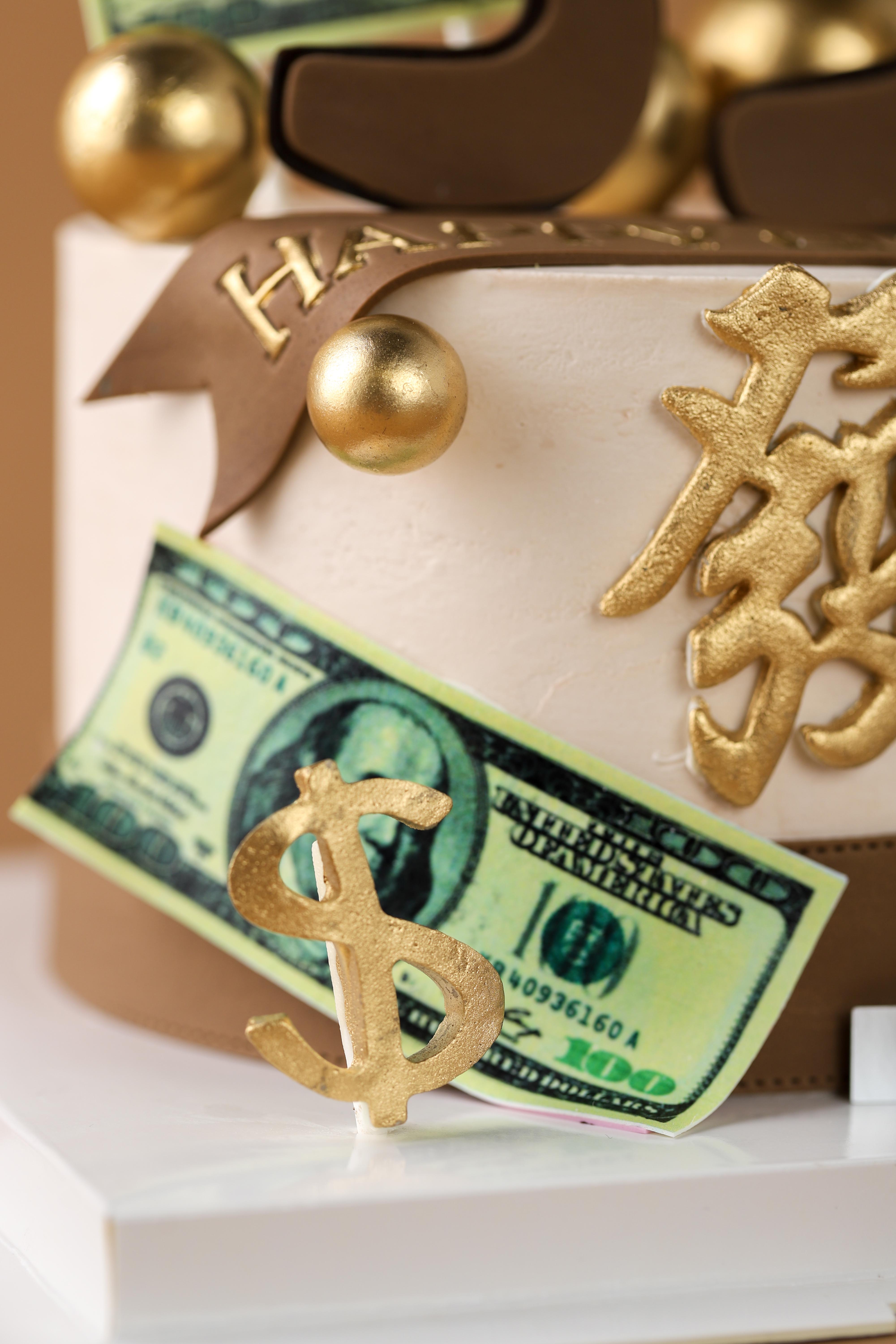 【提前两天预定】男士棕金色“發”蛋糕【C4203】