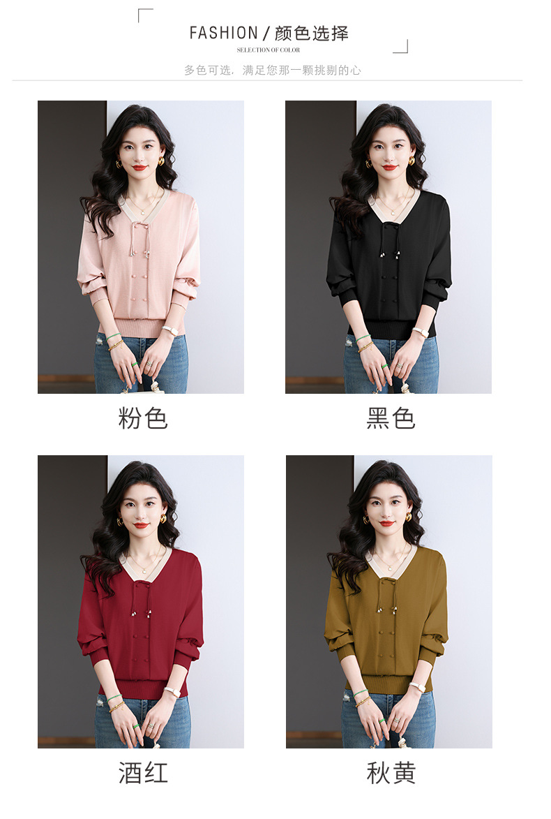 CC-BSM-732小个子针织拼接女士拼色2025春秋季新款宽松遮肉雪纺打底衫上衣服